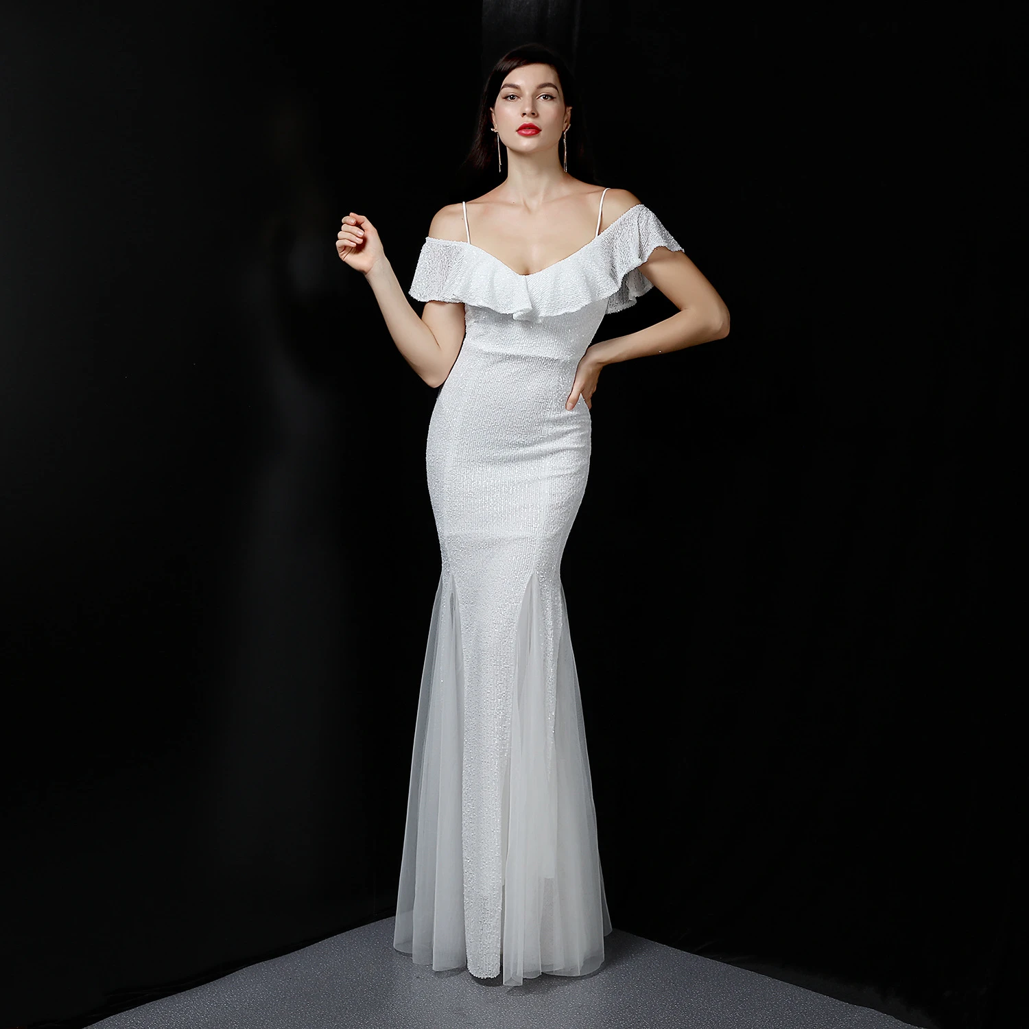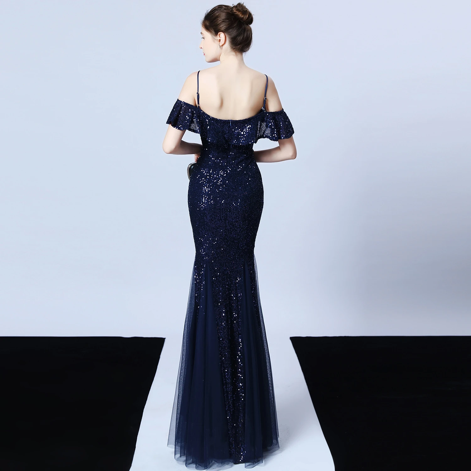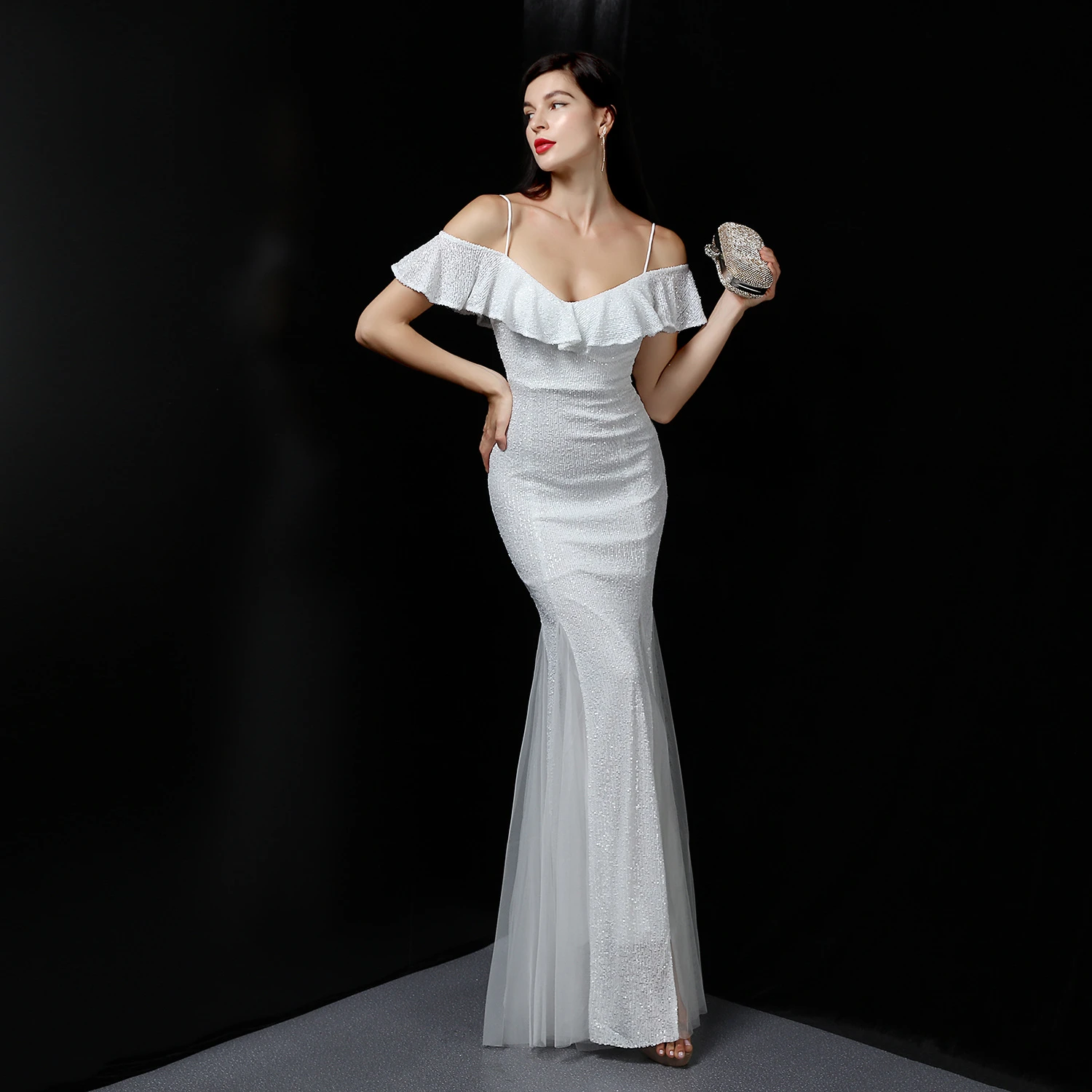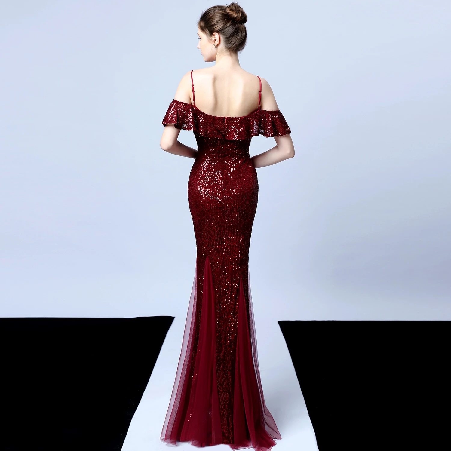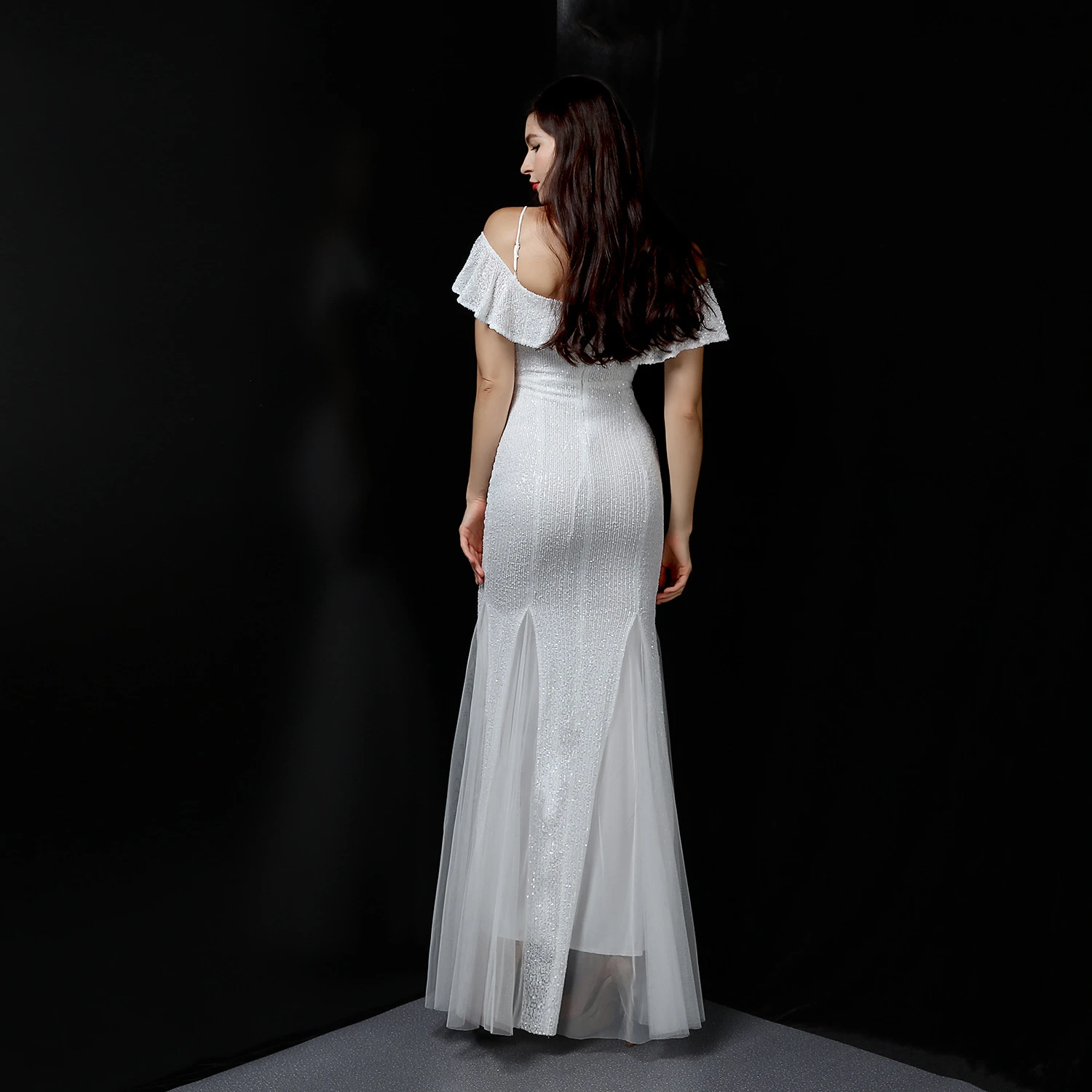 Polyester Thread Tassel Sequin Fishtail Banquet Elegant Temperament Host Car Model Evening Dress Autumn