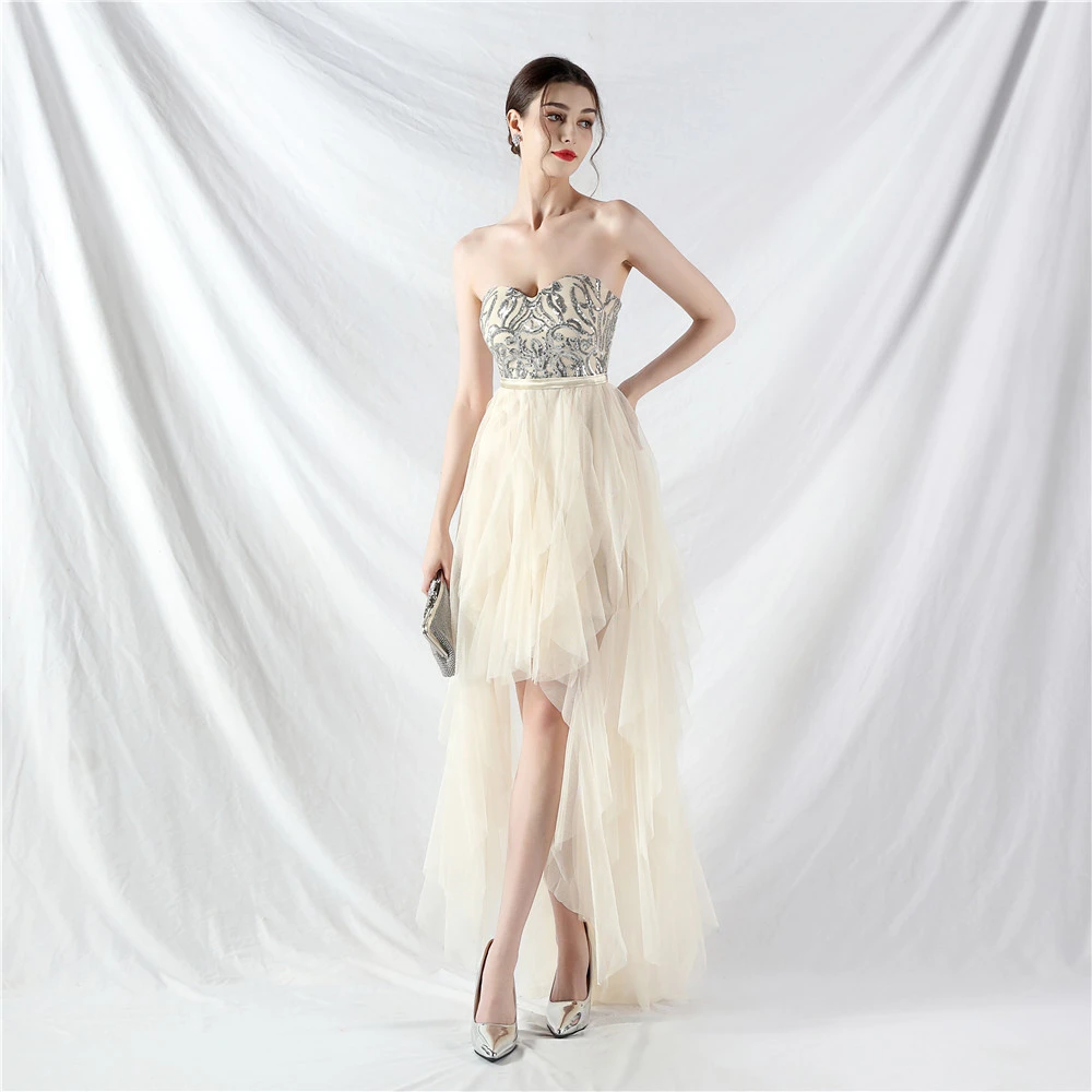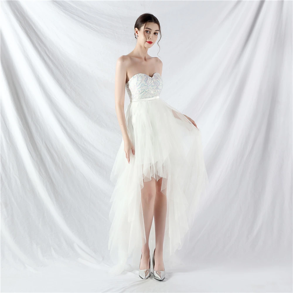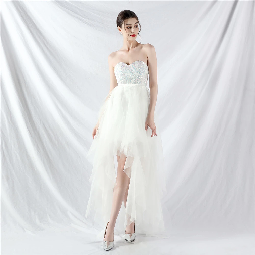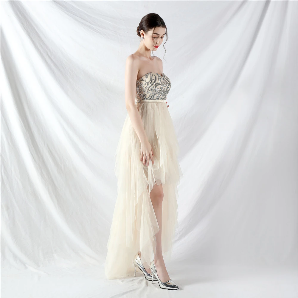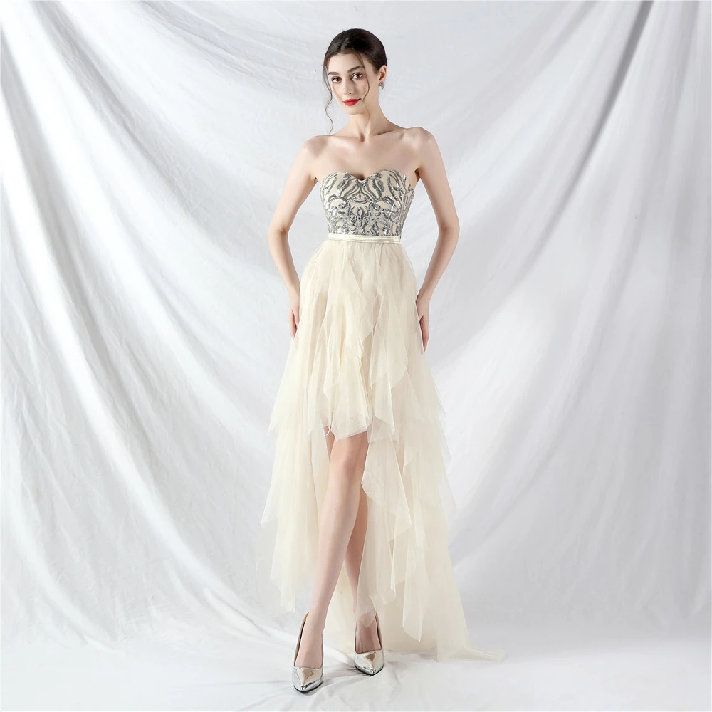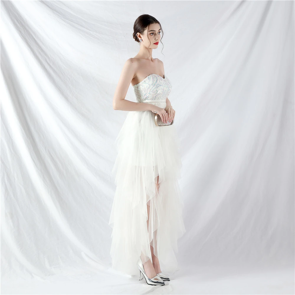 • Hemline/Train: High-low