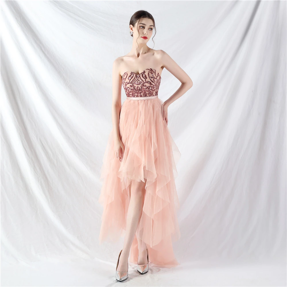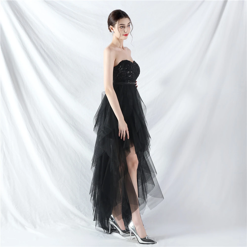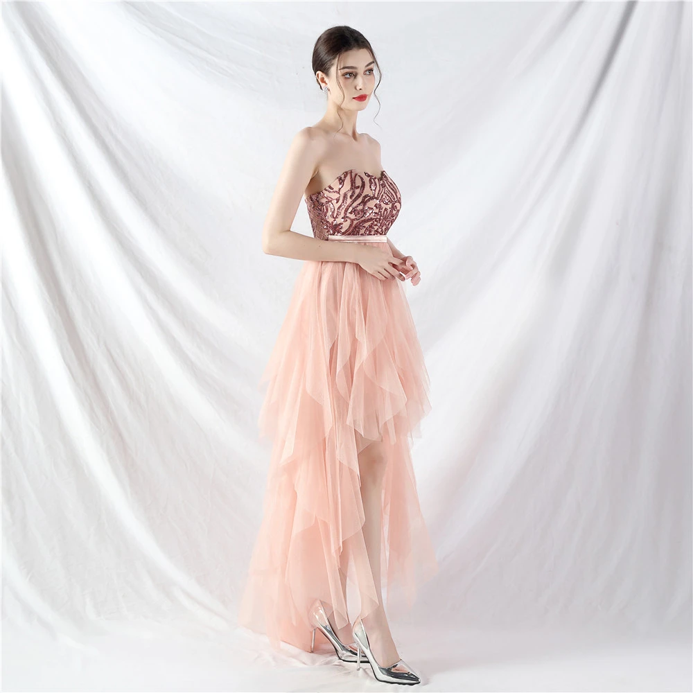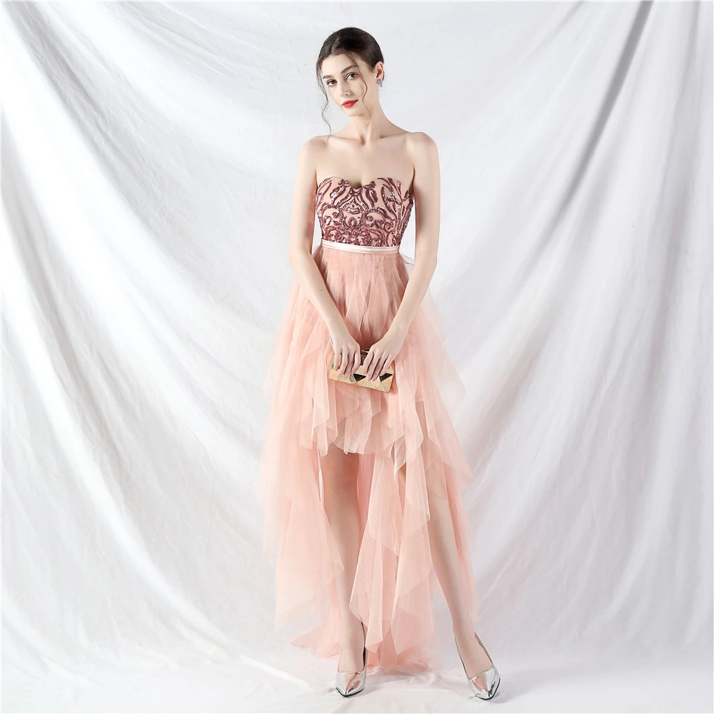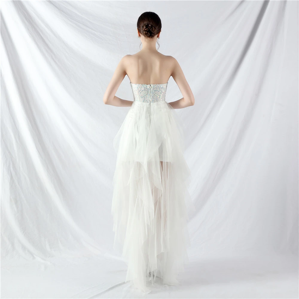 • Hemline/Train: High-low