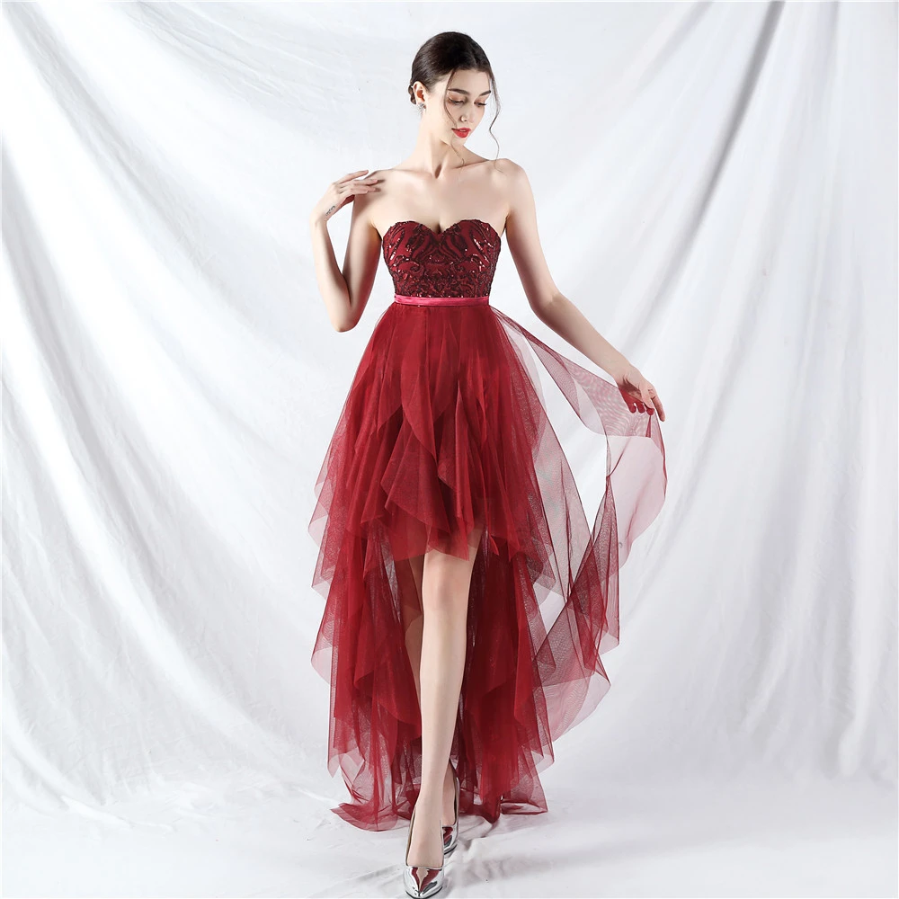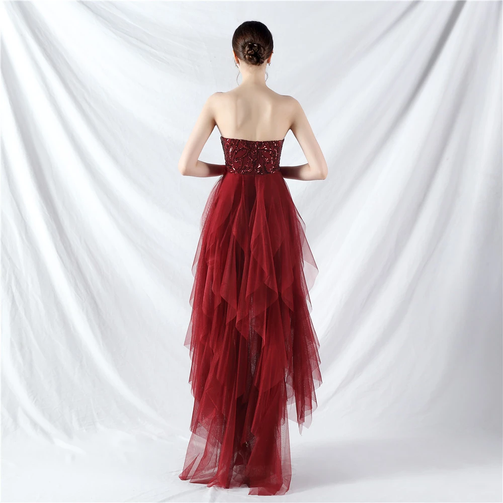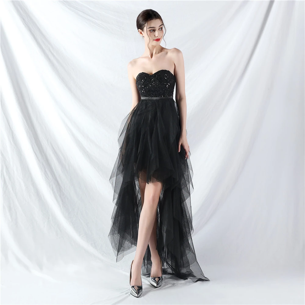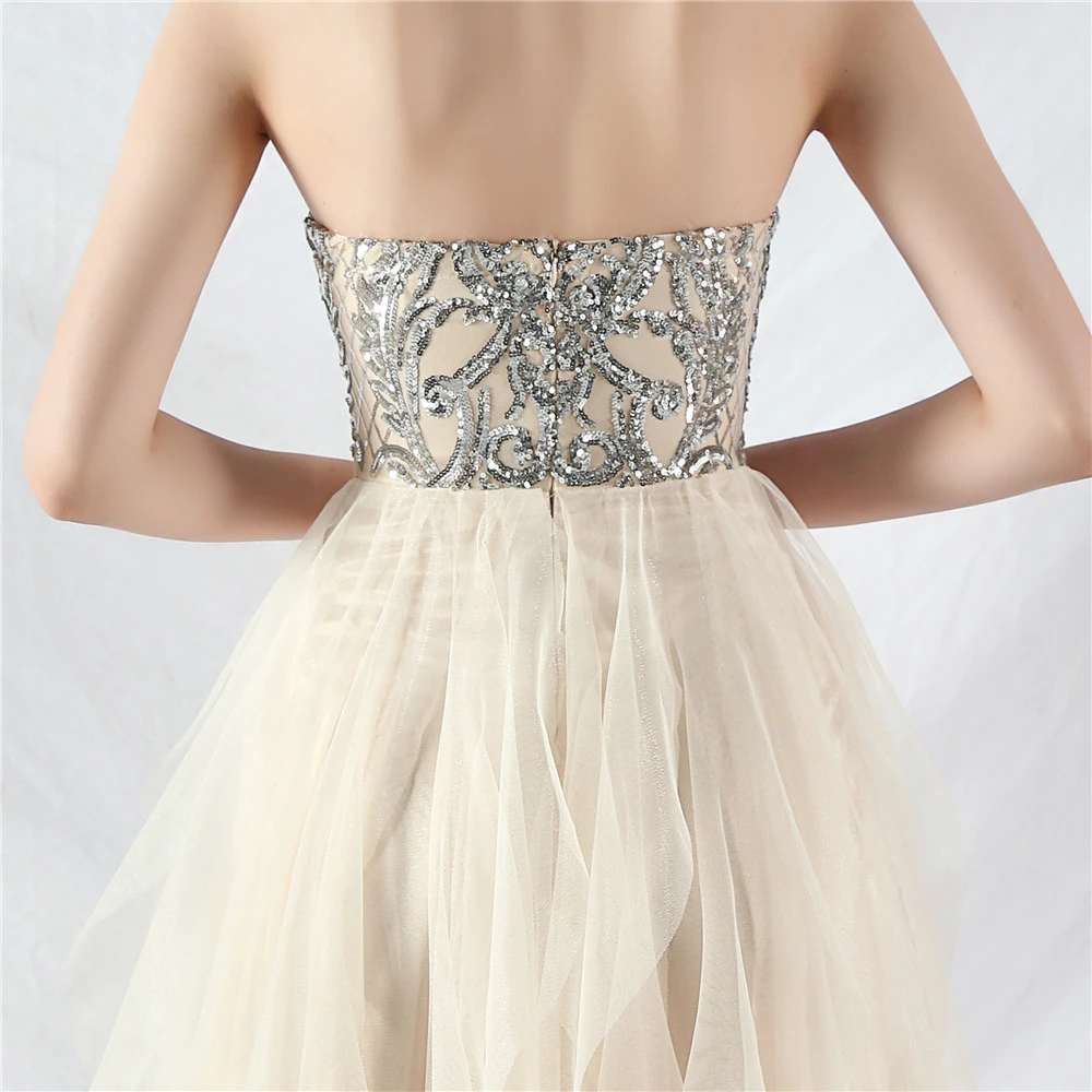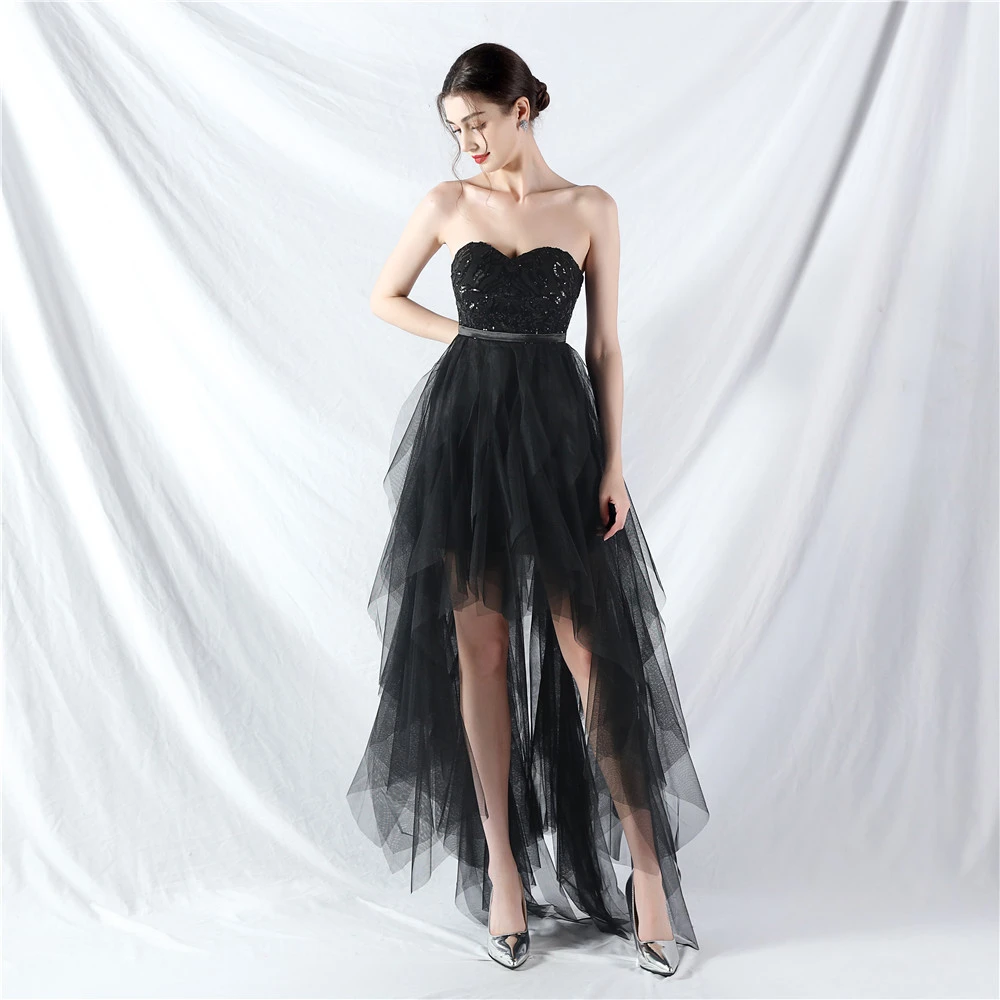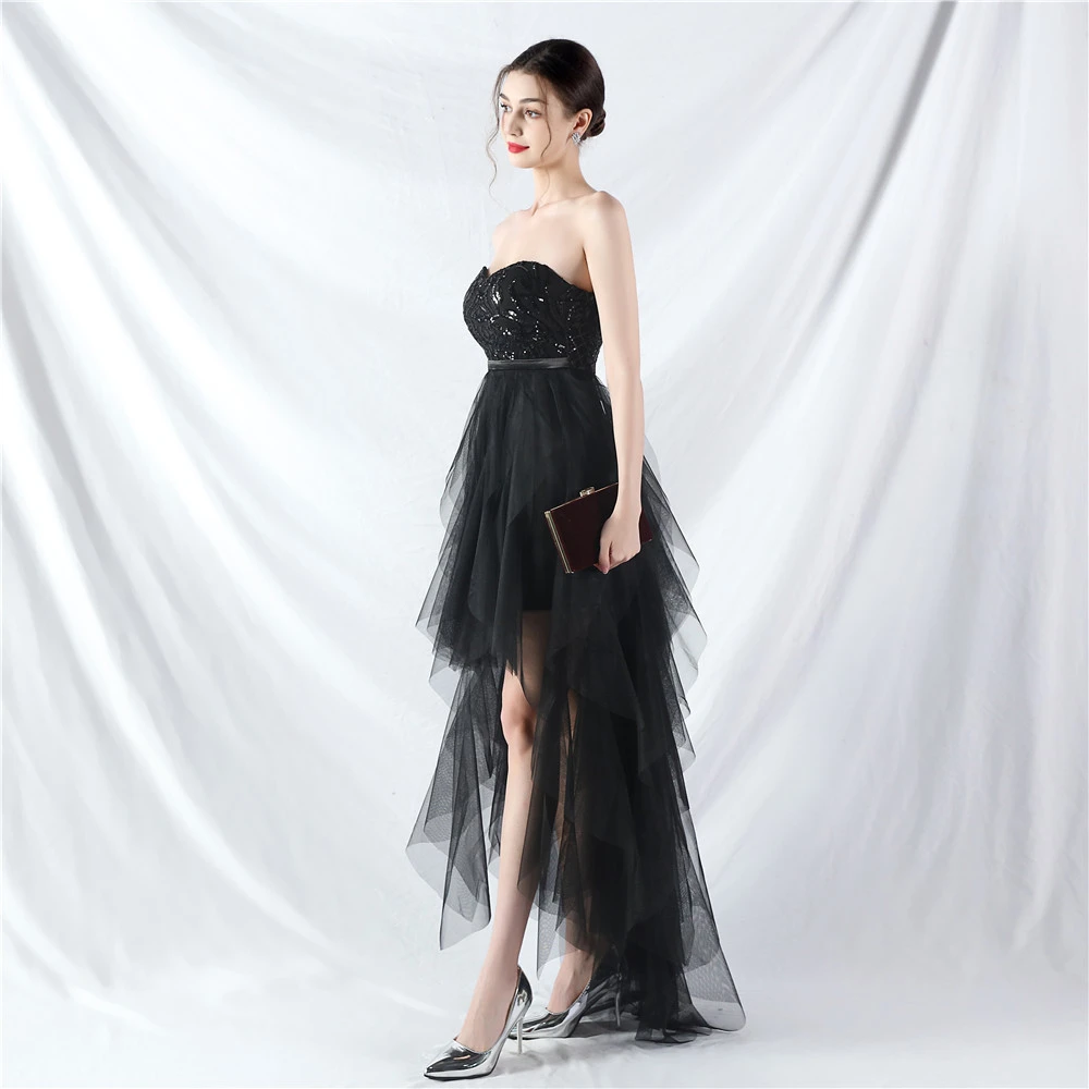 • Hemline/Train: High-low