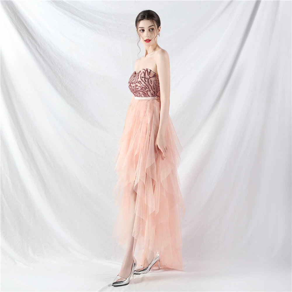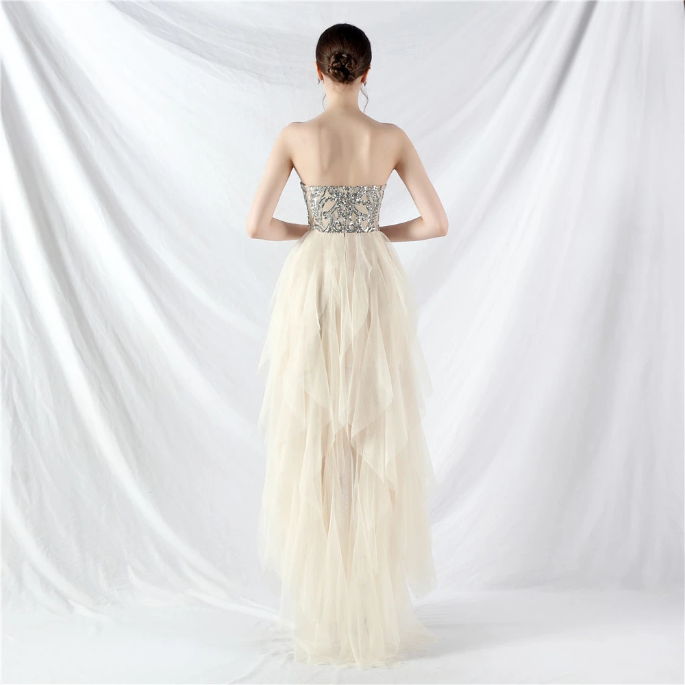 Positioned Flower Beads Spliced ​​Mesh Tube Dress