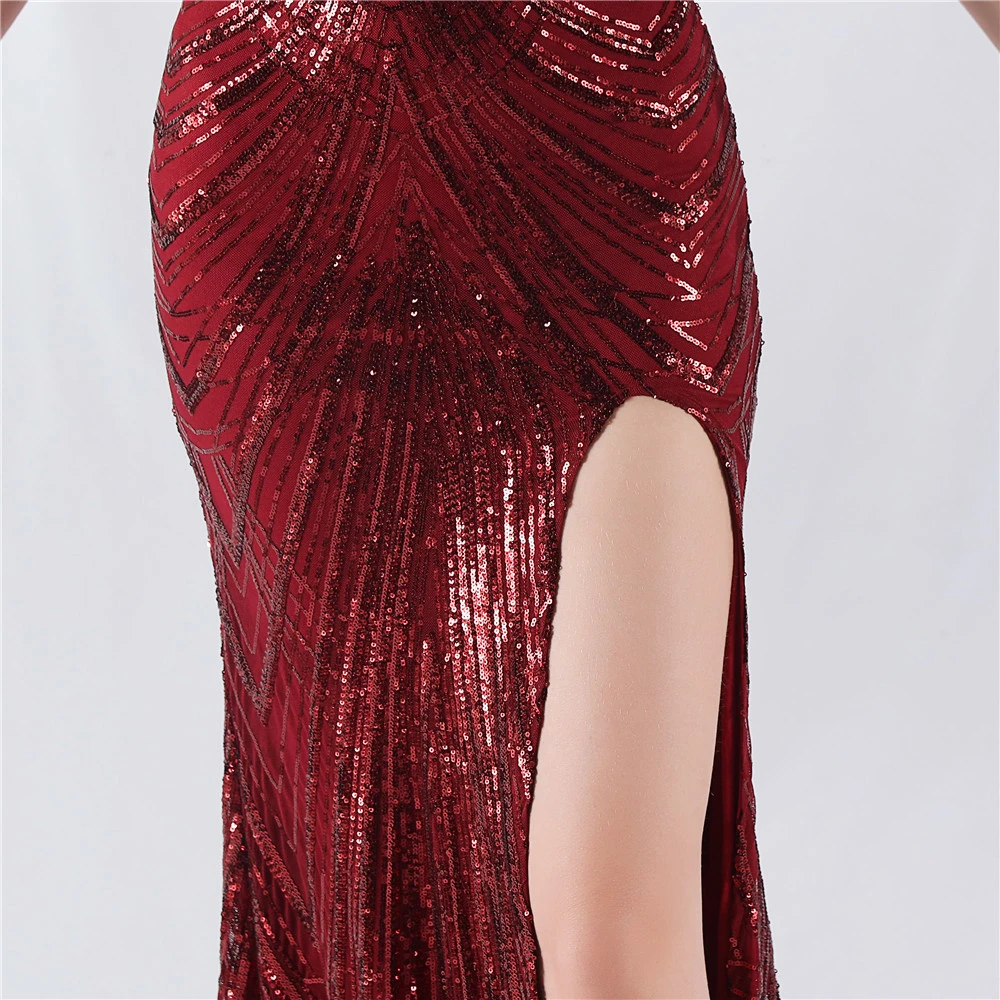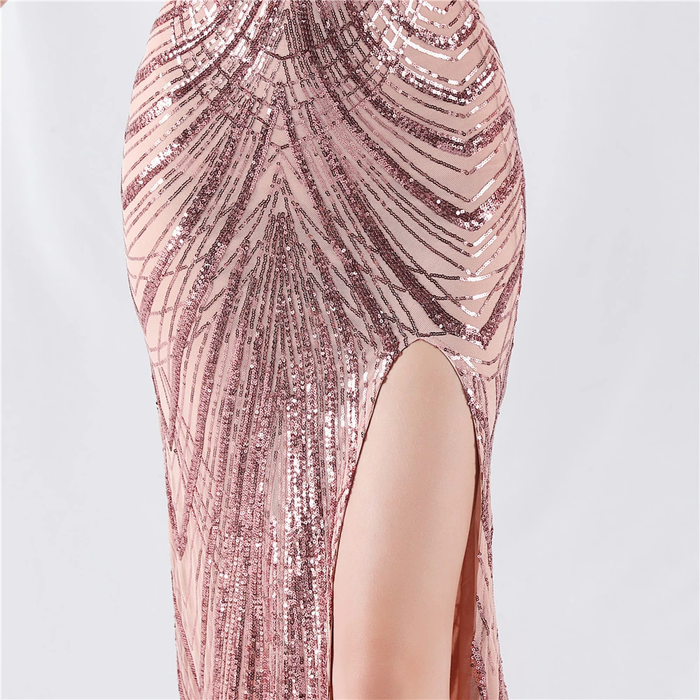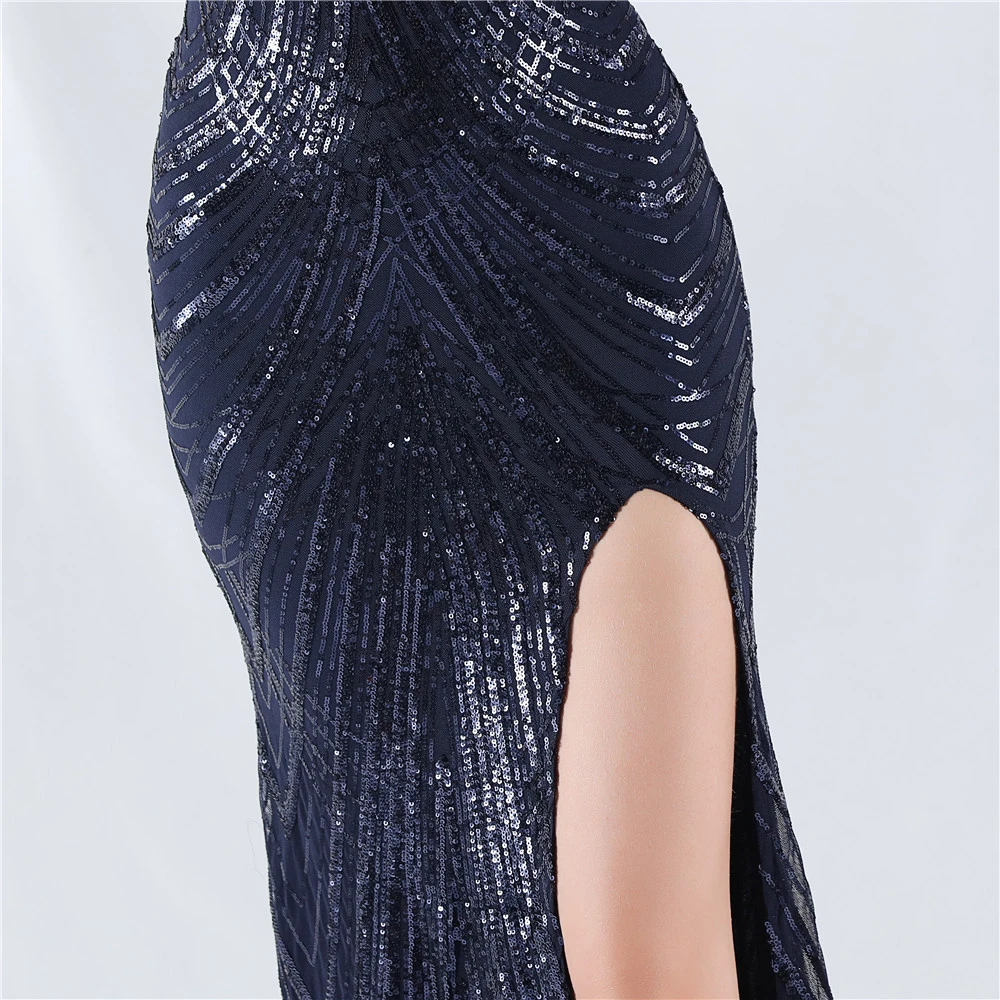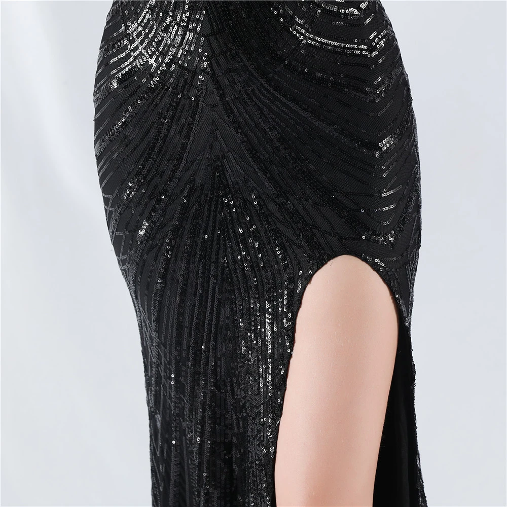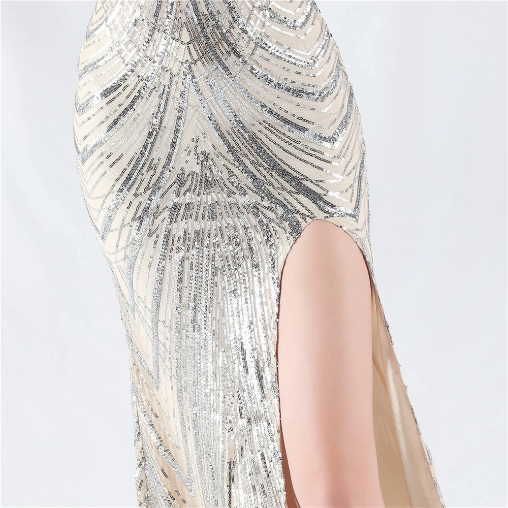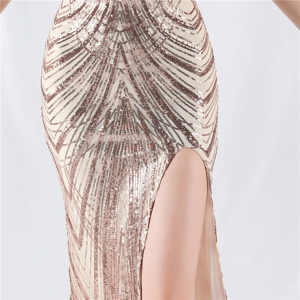 Positioning Flower Beaded Craft Beaded One-Shoulder Oblique Collar High Slit Evening Dress