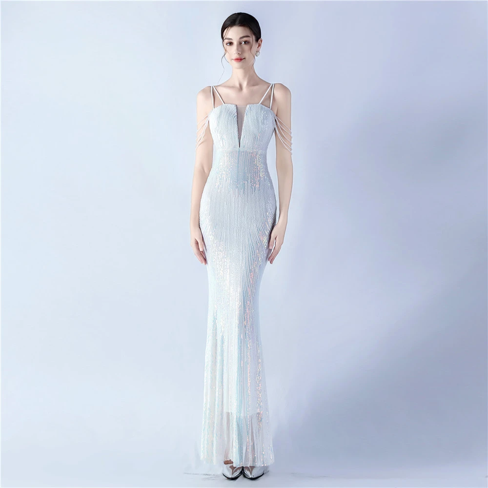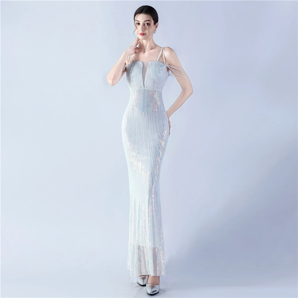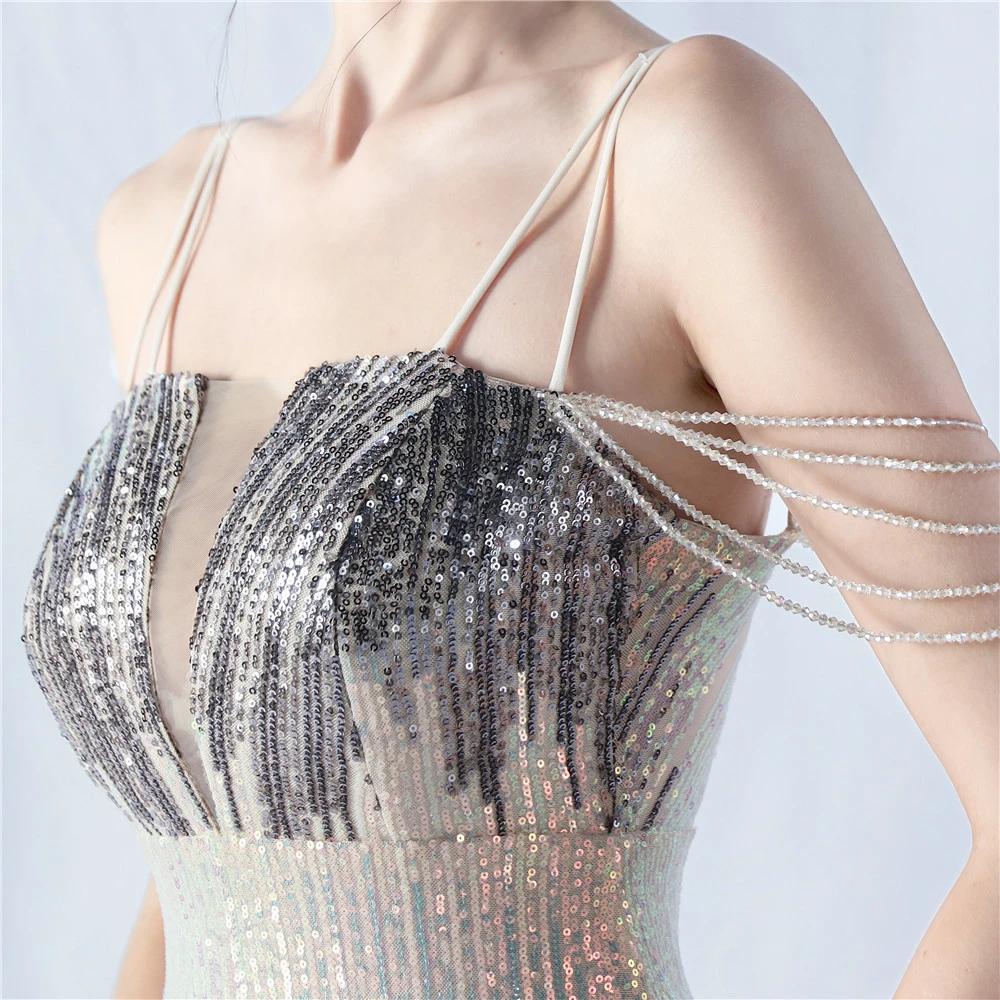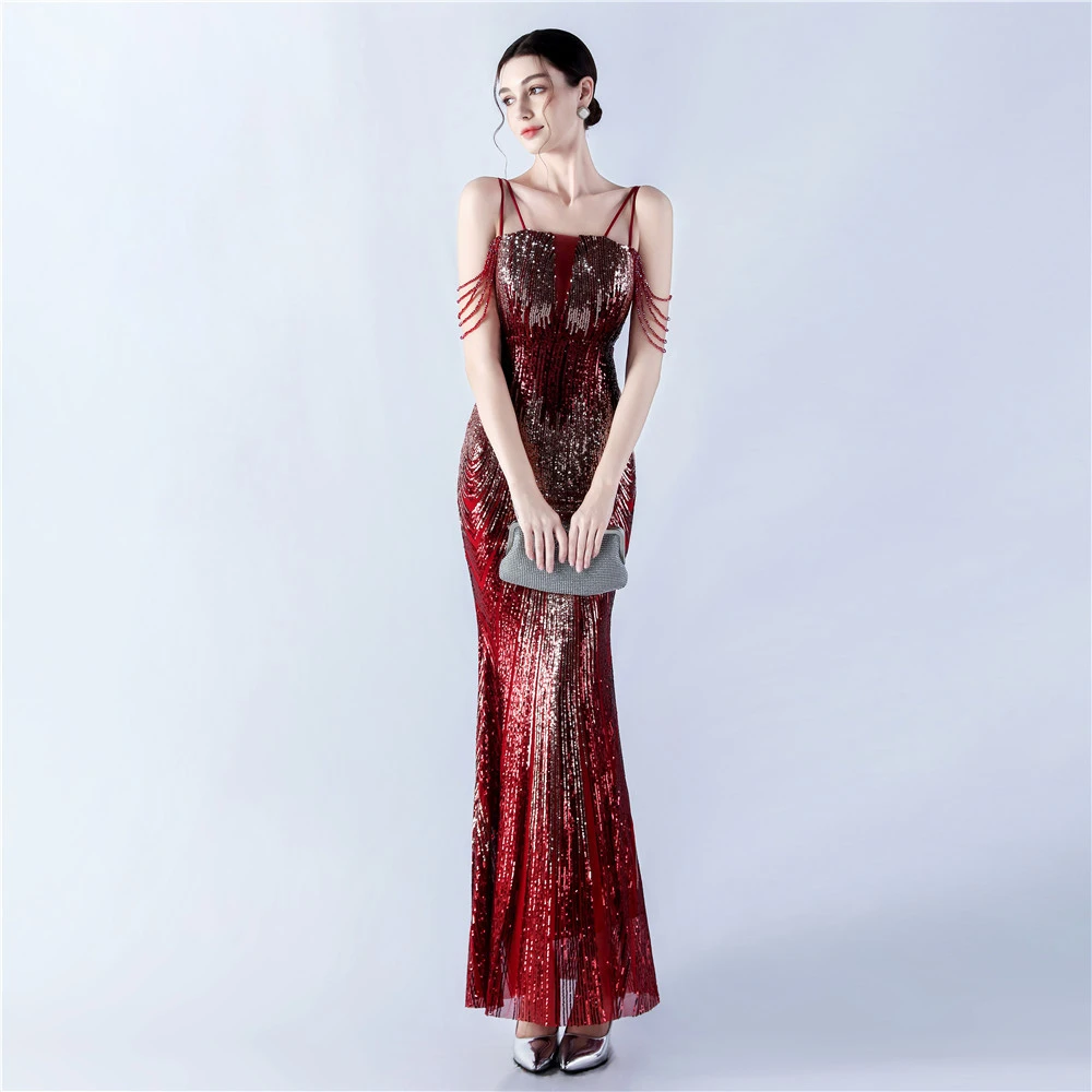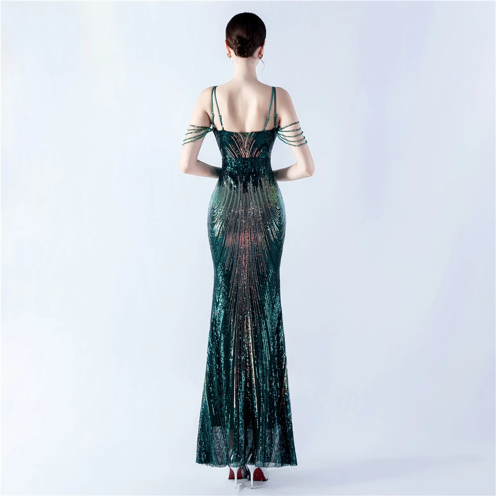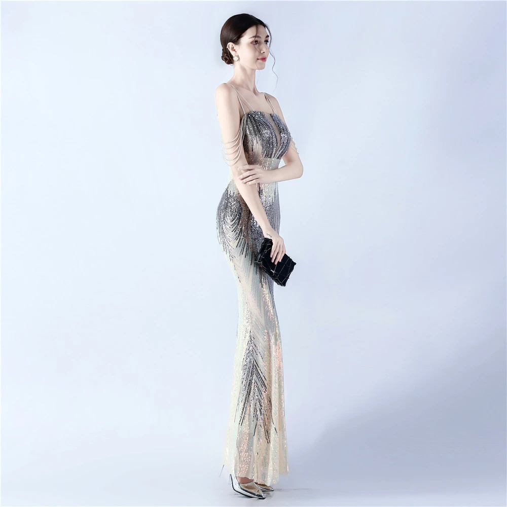 Positioning Flower Beads Beaded Evening Dress Banquet Celebration Performance Host