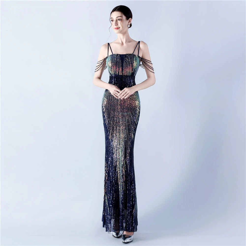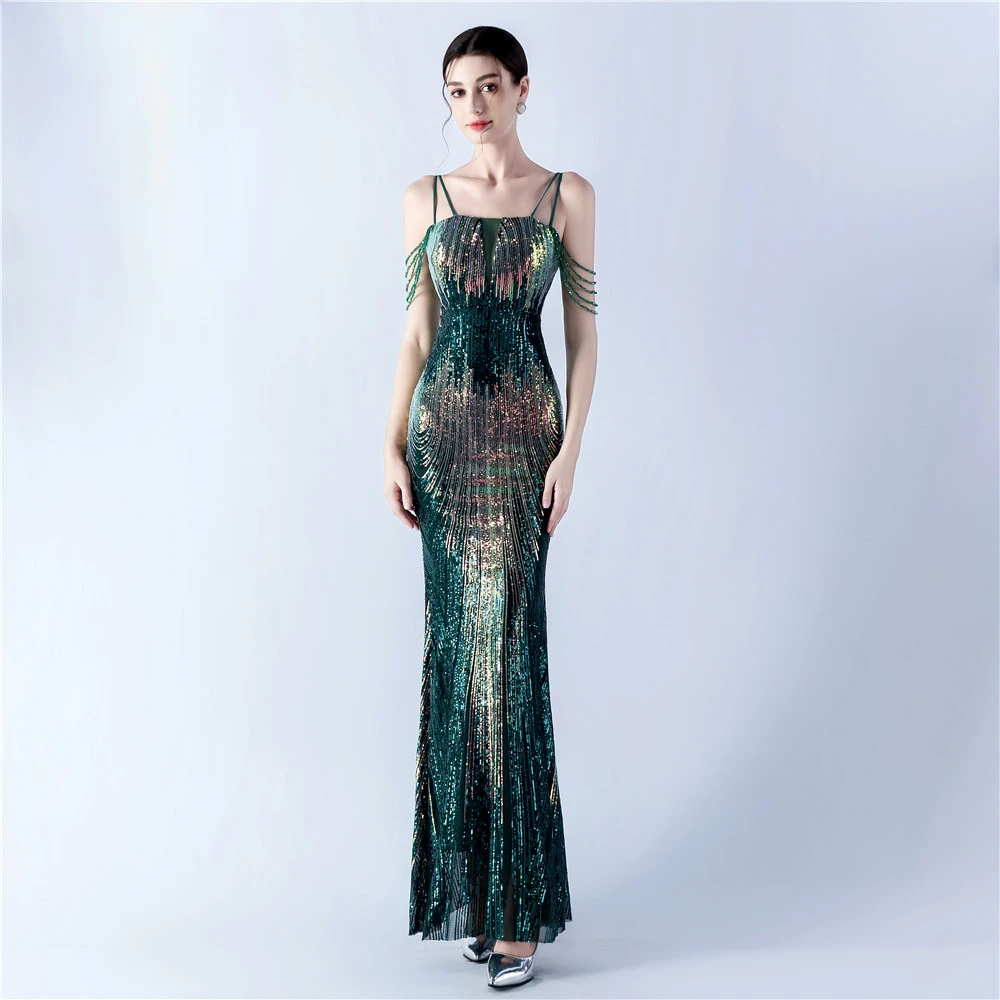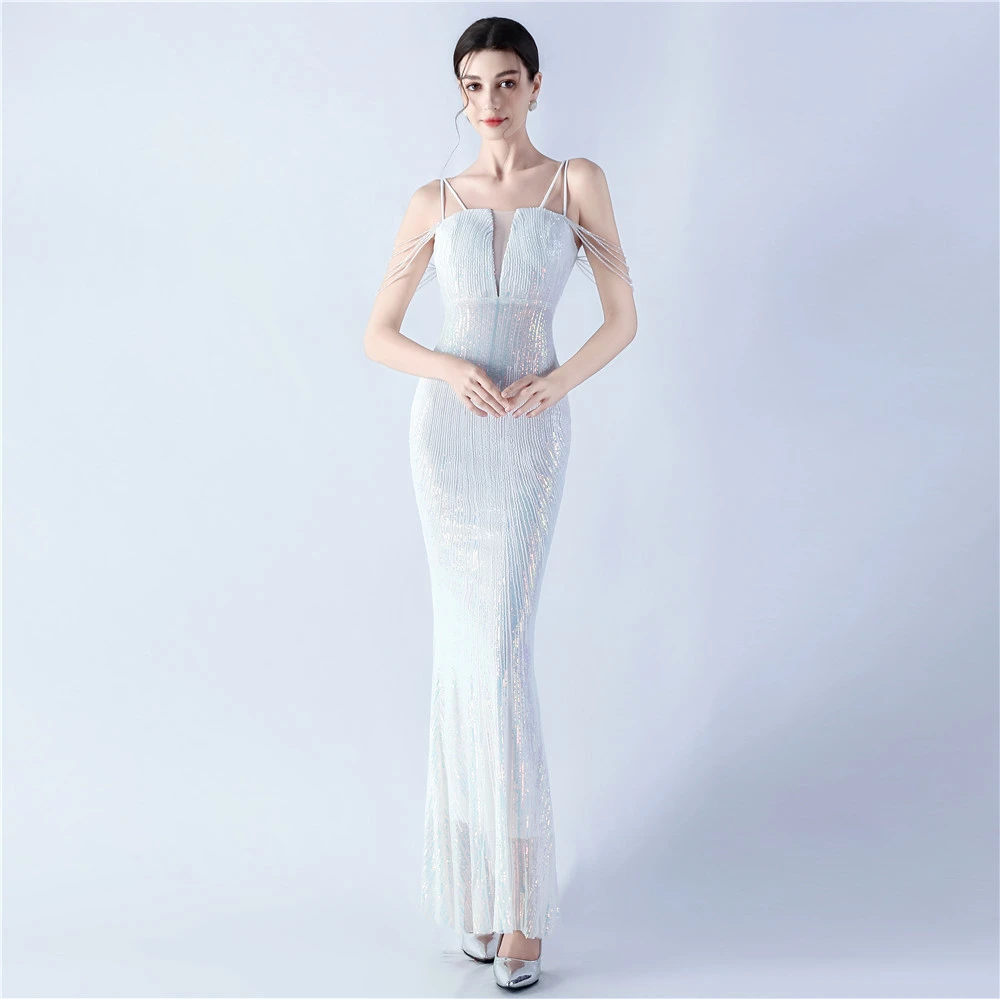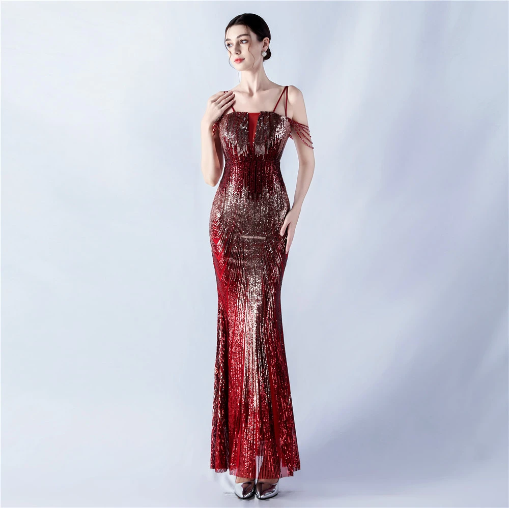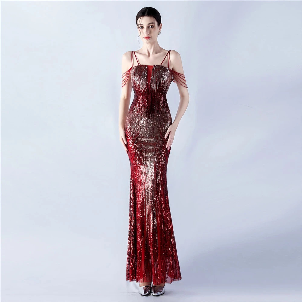 Positioning Flower Beads Beaded Evening Dress Banquet Celebration Performance Host
