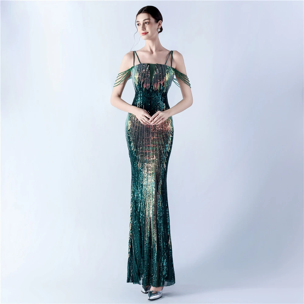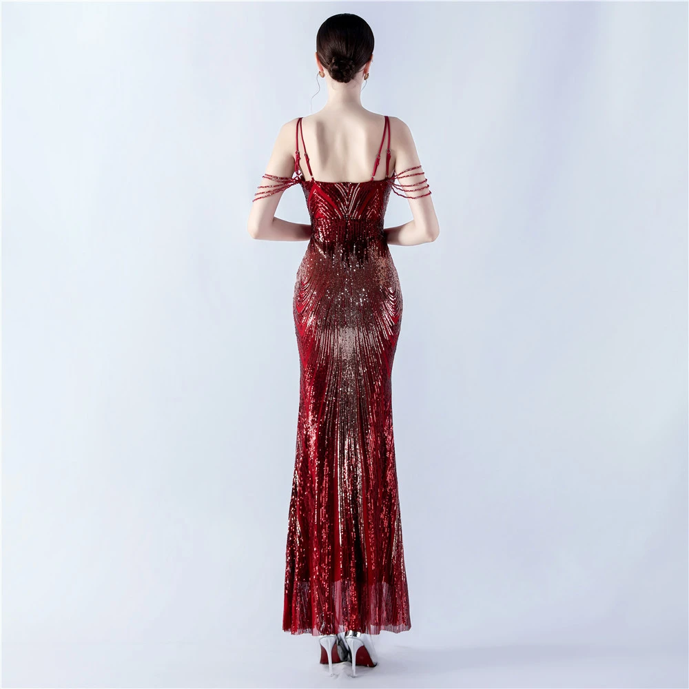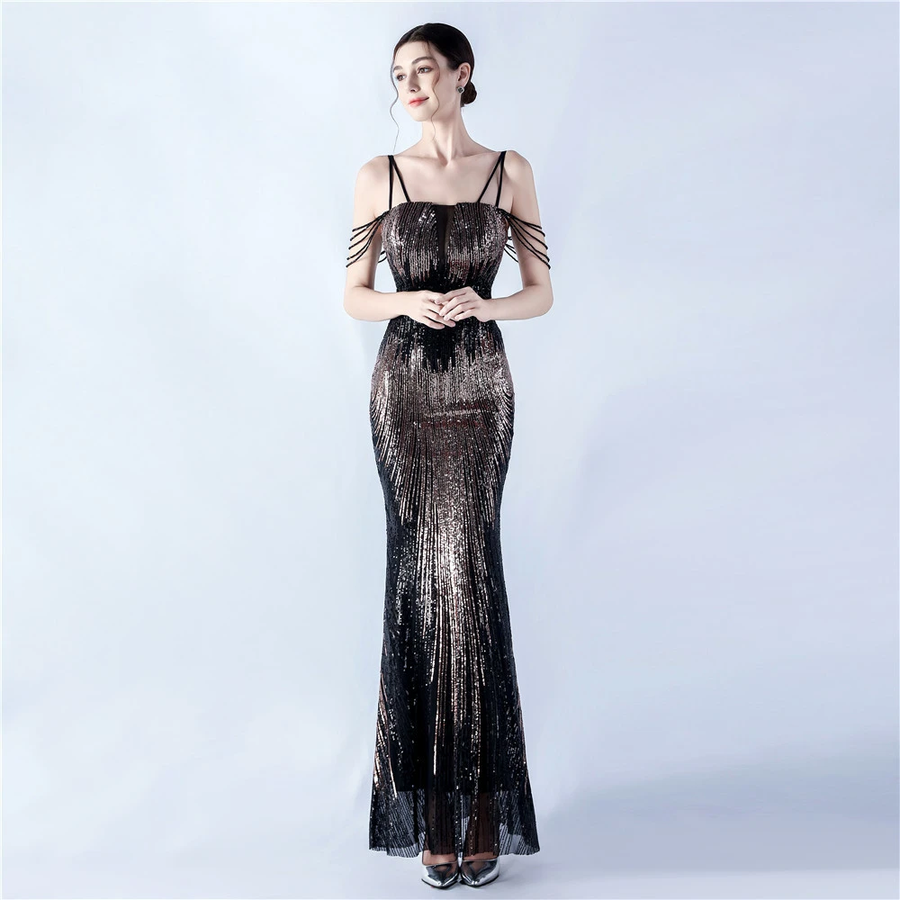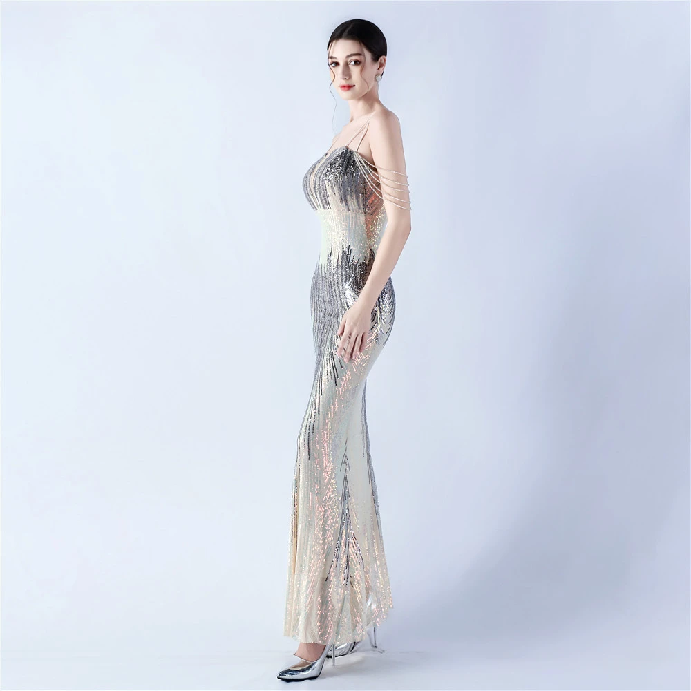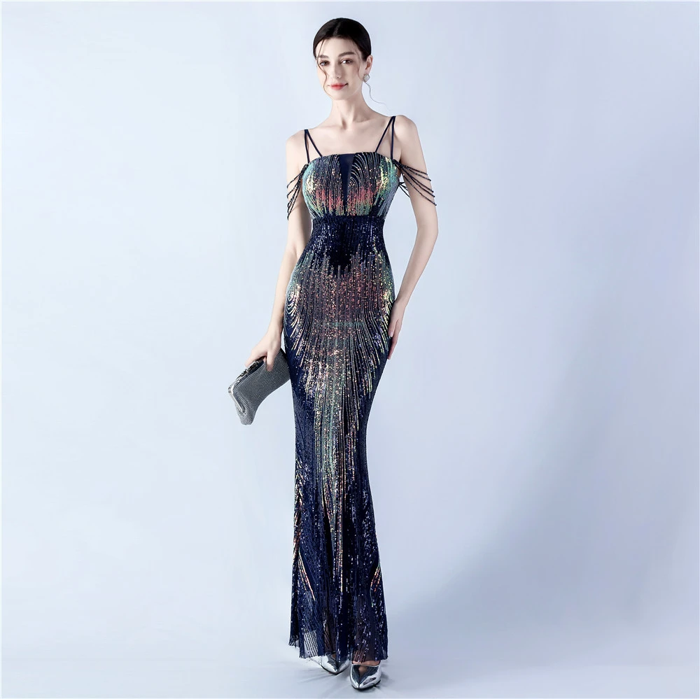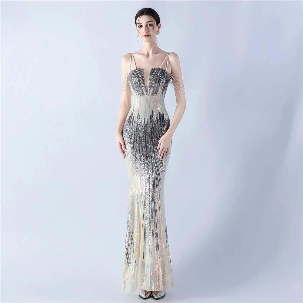 Positioning Flower Beads Beaded Evening Dress Banquet Celebration Performance Host