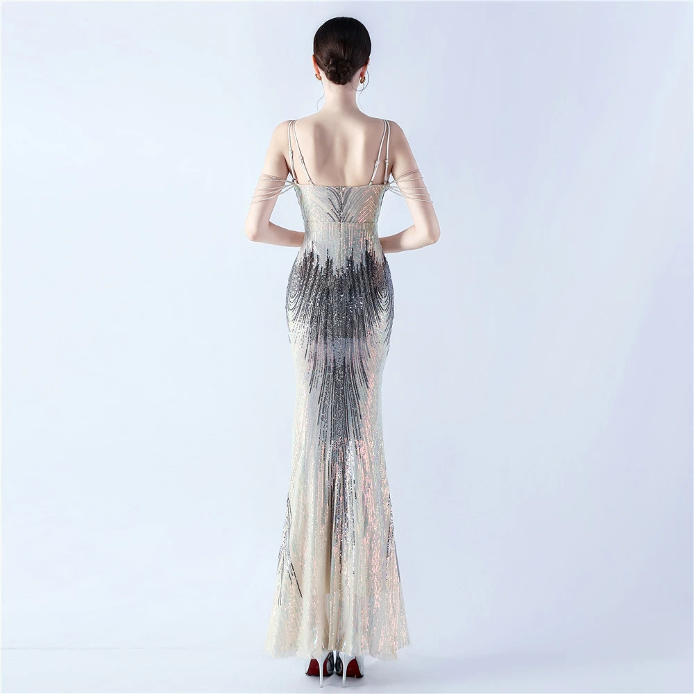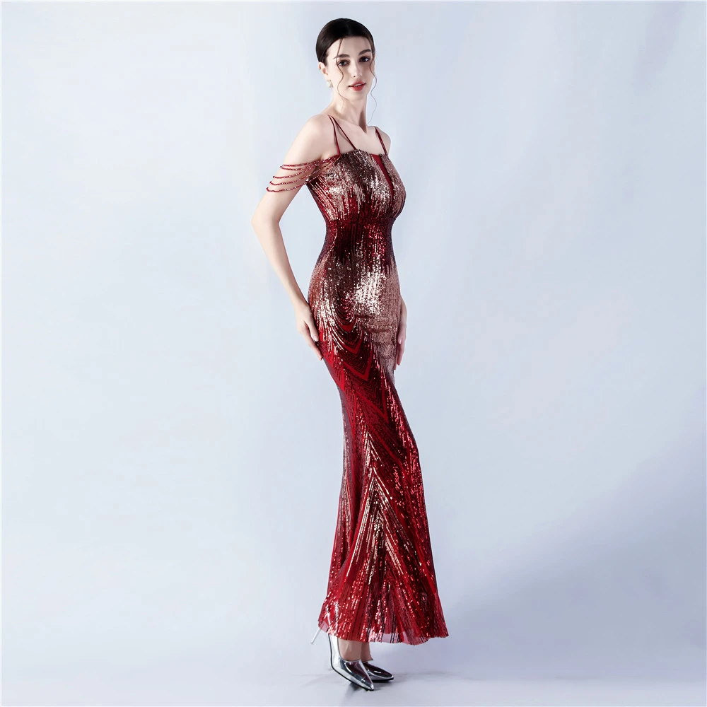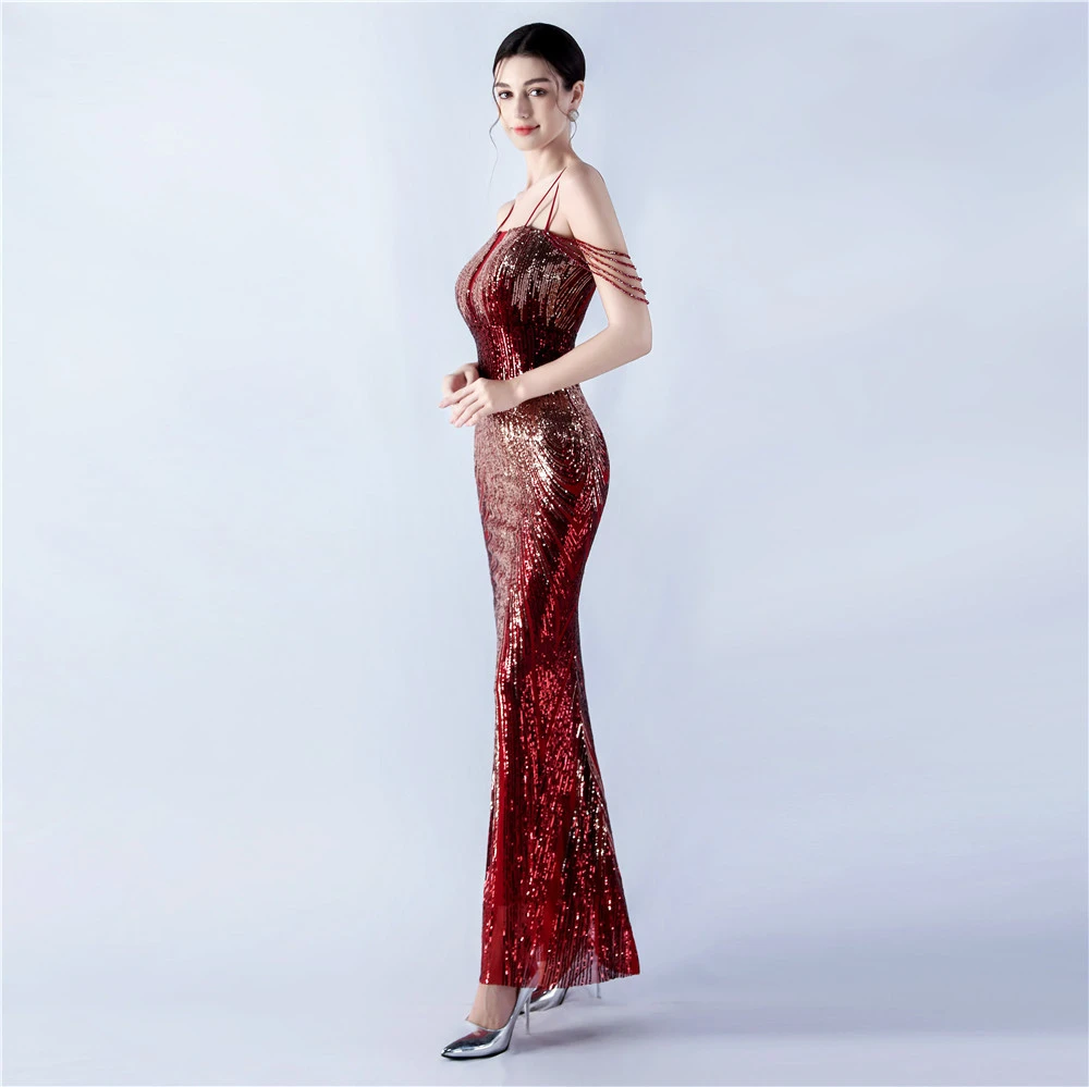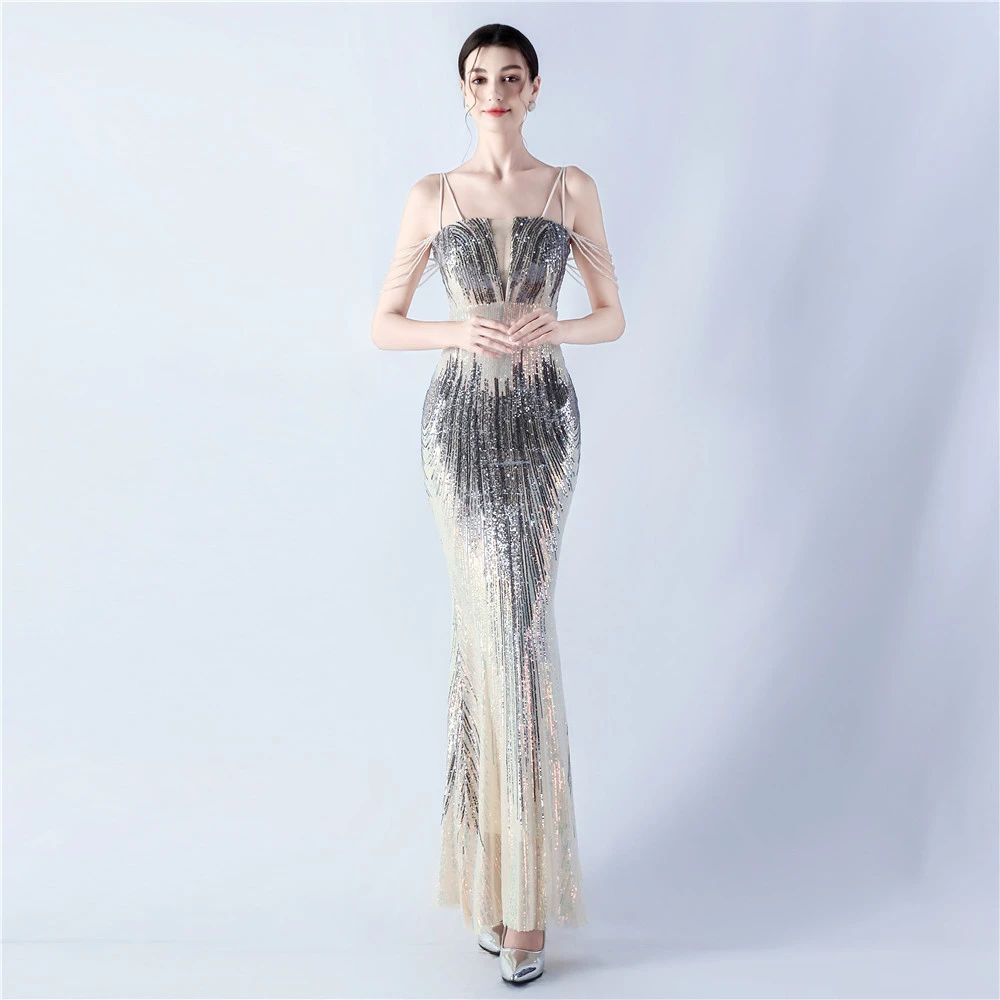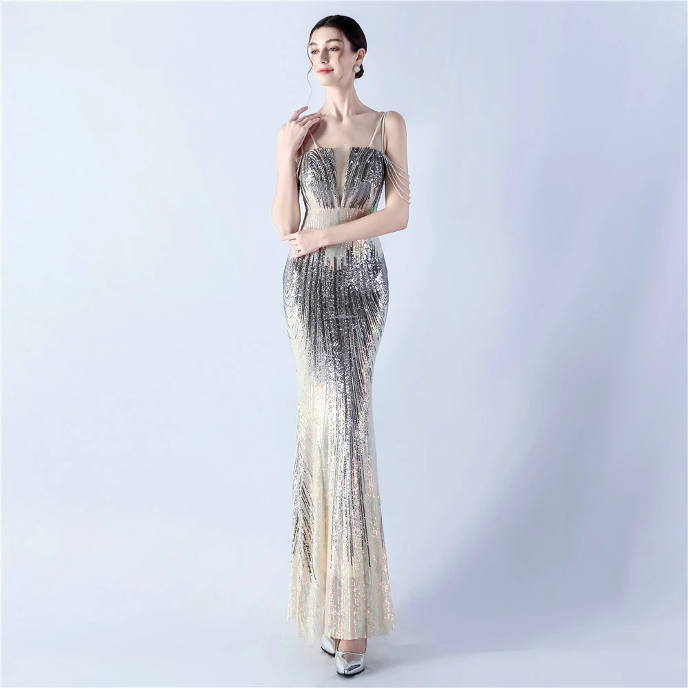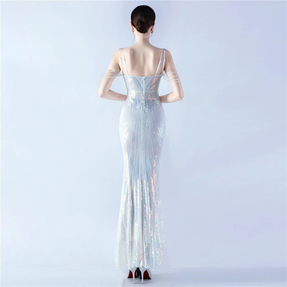 Positioning Flower Beads Beaded Evening Dress Banquet Celebration Performance Host