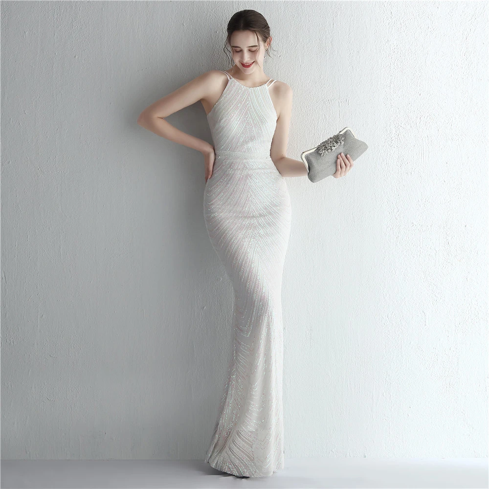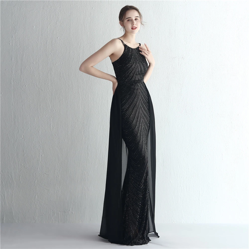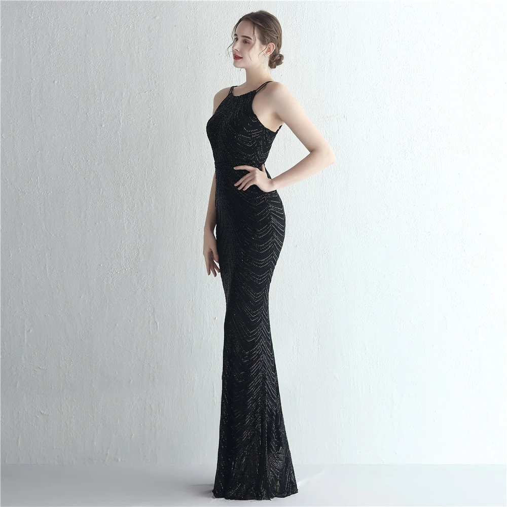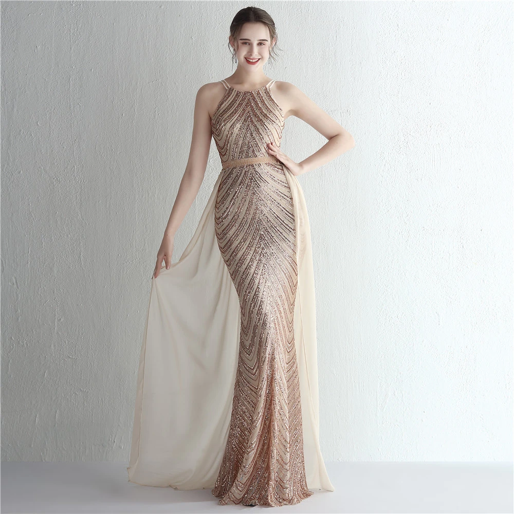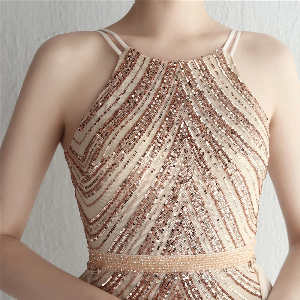 Positioning Flower Sequin Chiffon Skirt Craft Beaded Halter Neck Style Temperament Cold Celebrity Banquet Long Sequin