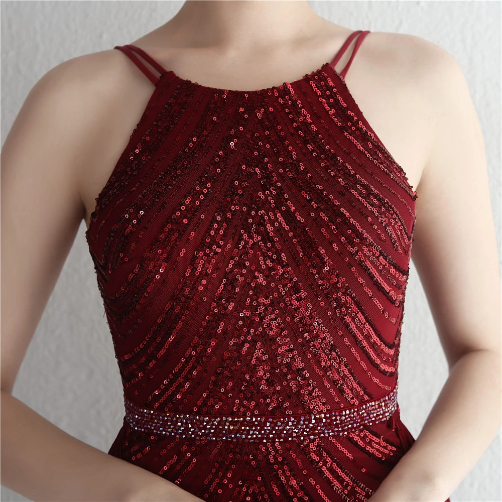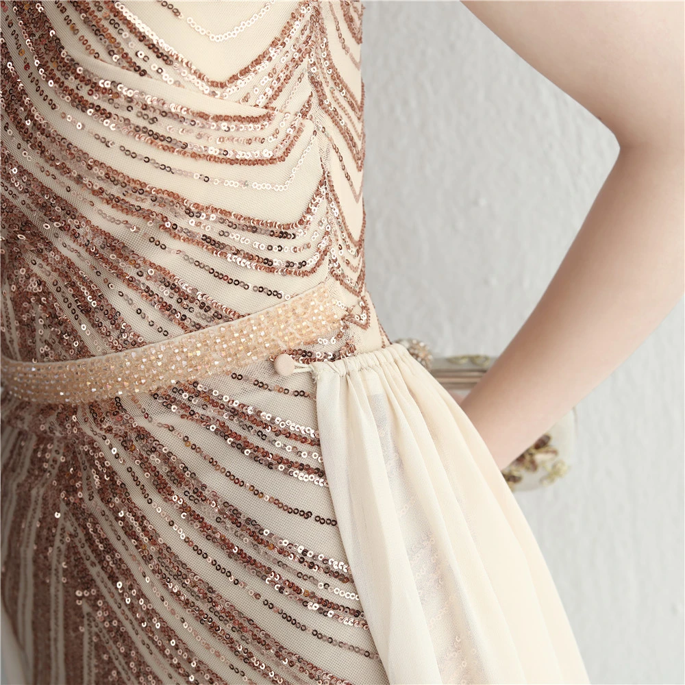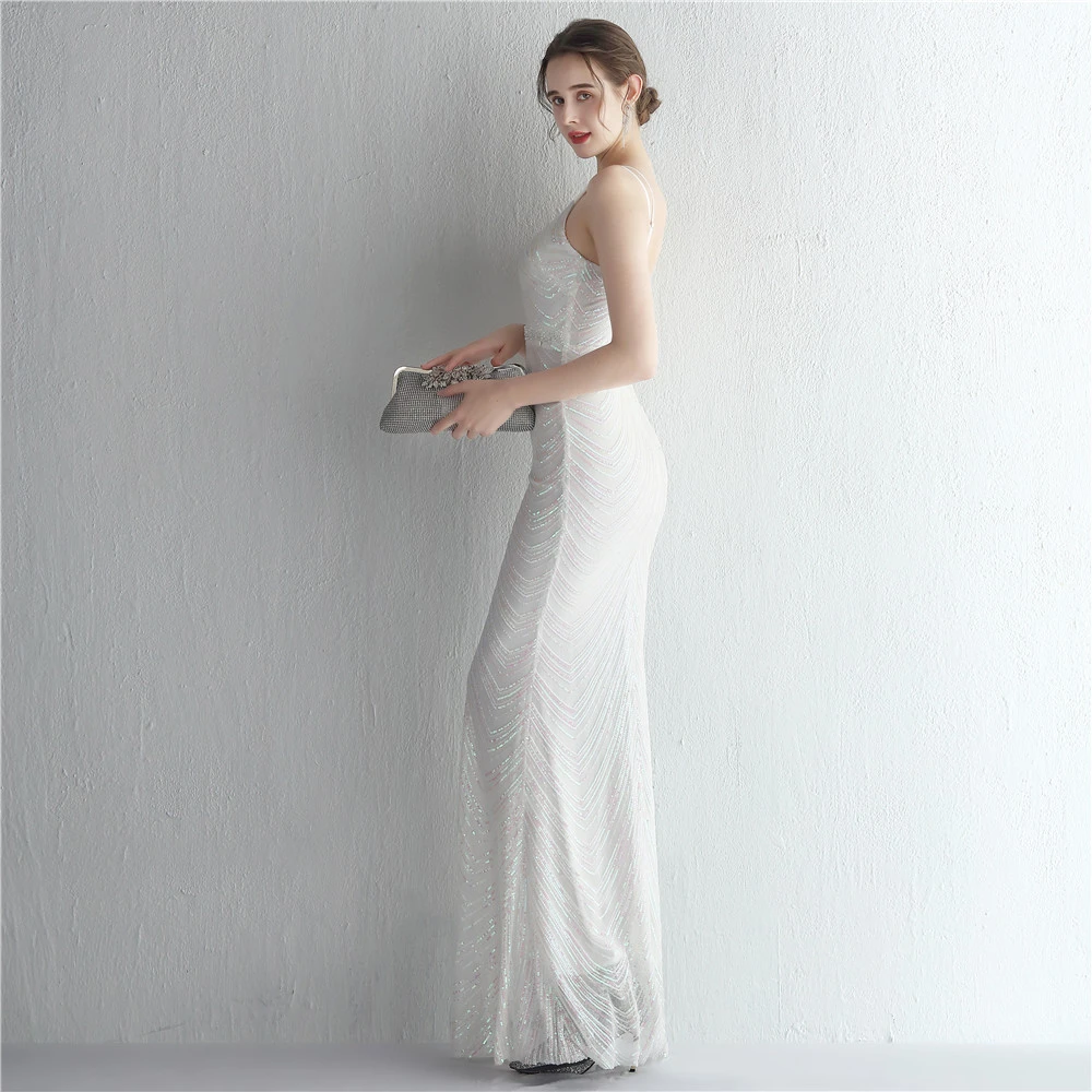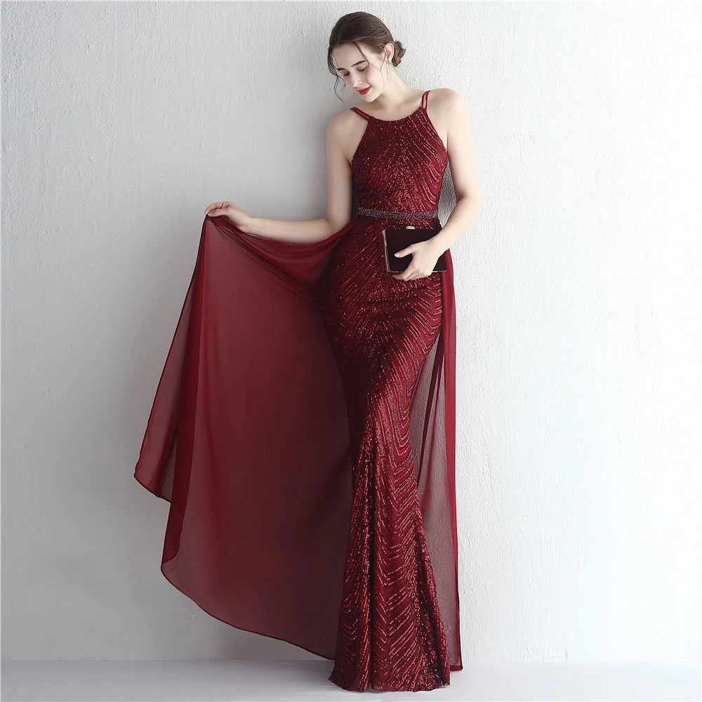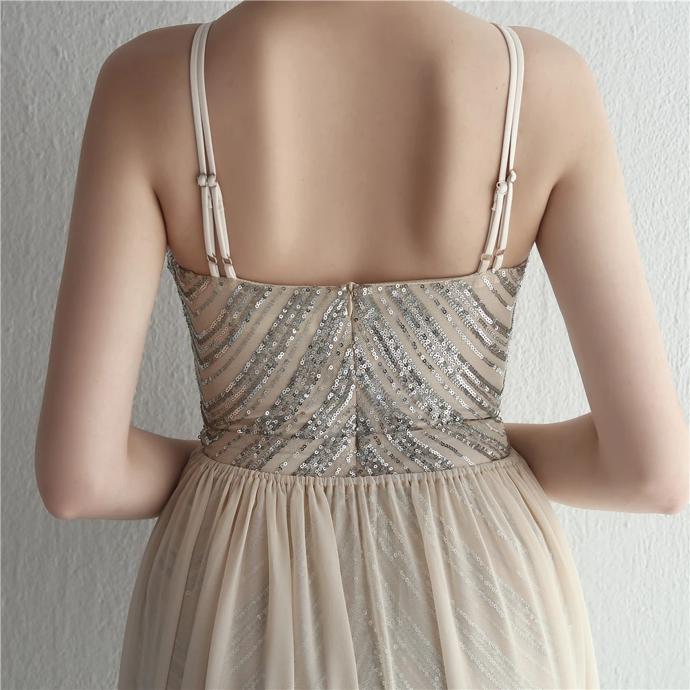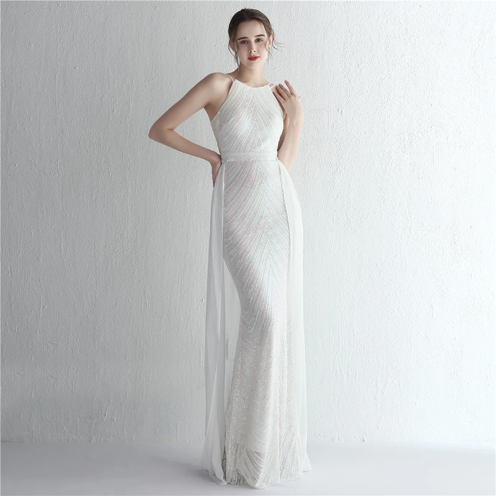 Positioning Flower Sequin Chiffon Skirt Craft Beaded Halter Neck Style Temperament Cold Celebrity Banquet Long Sequin