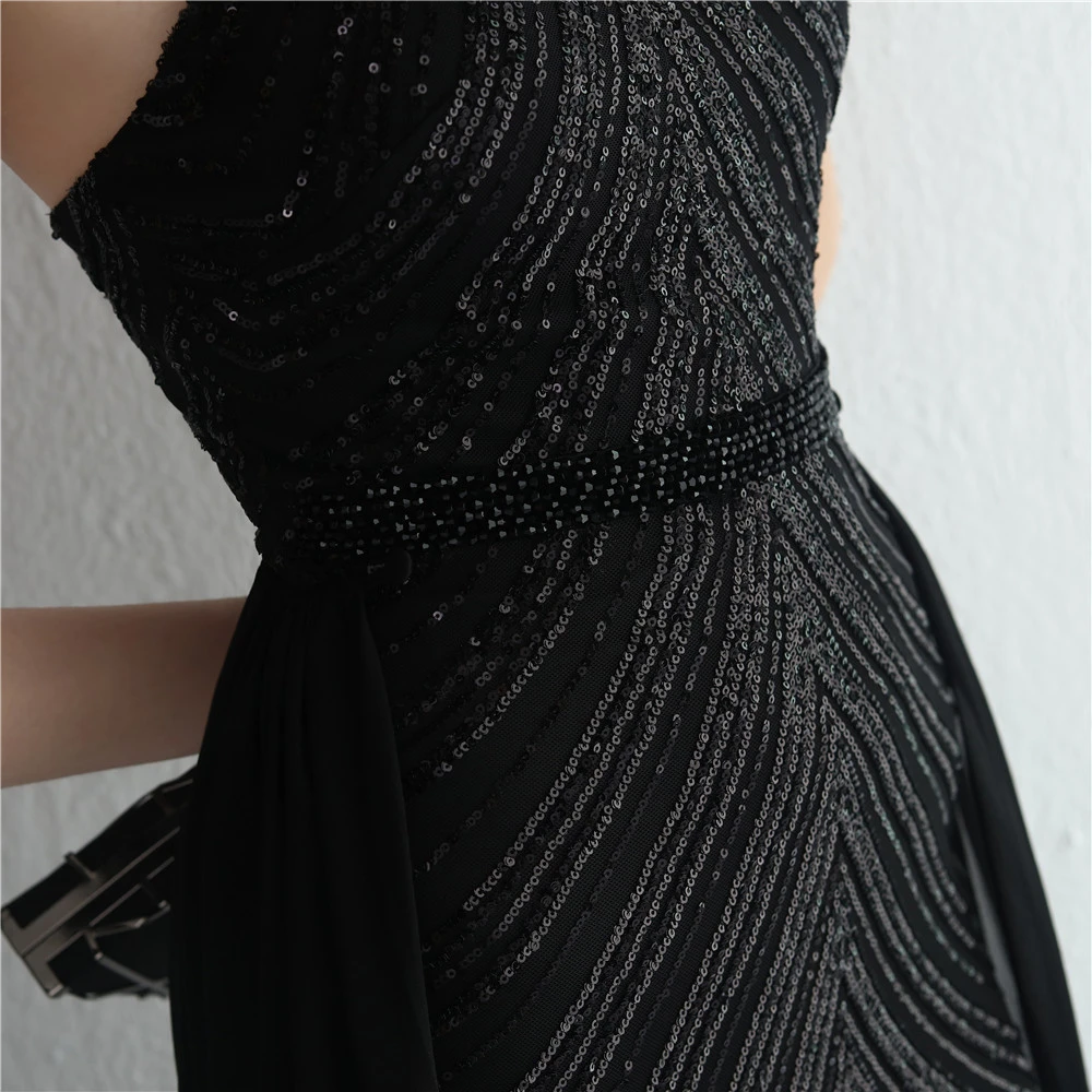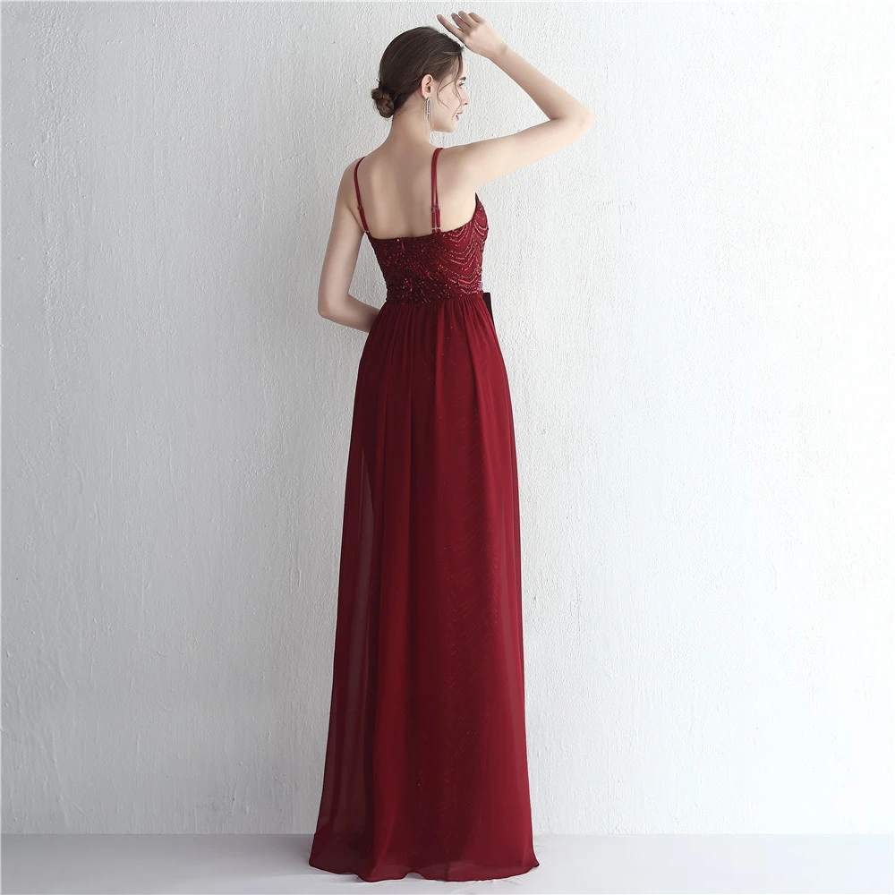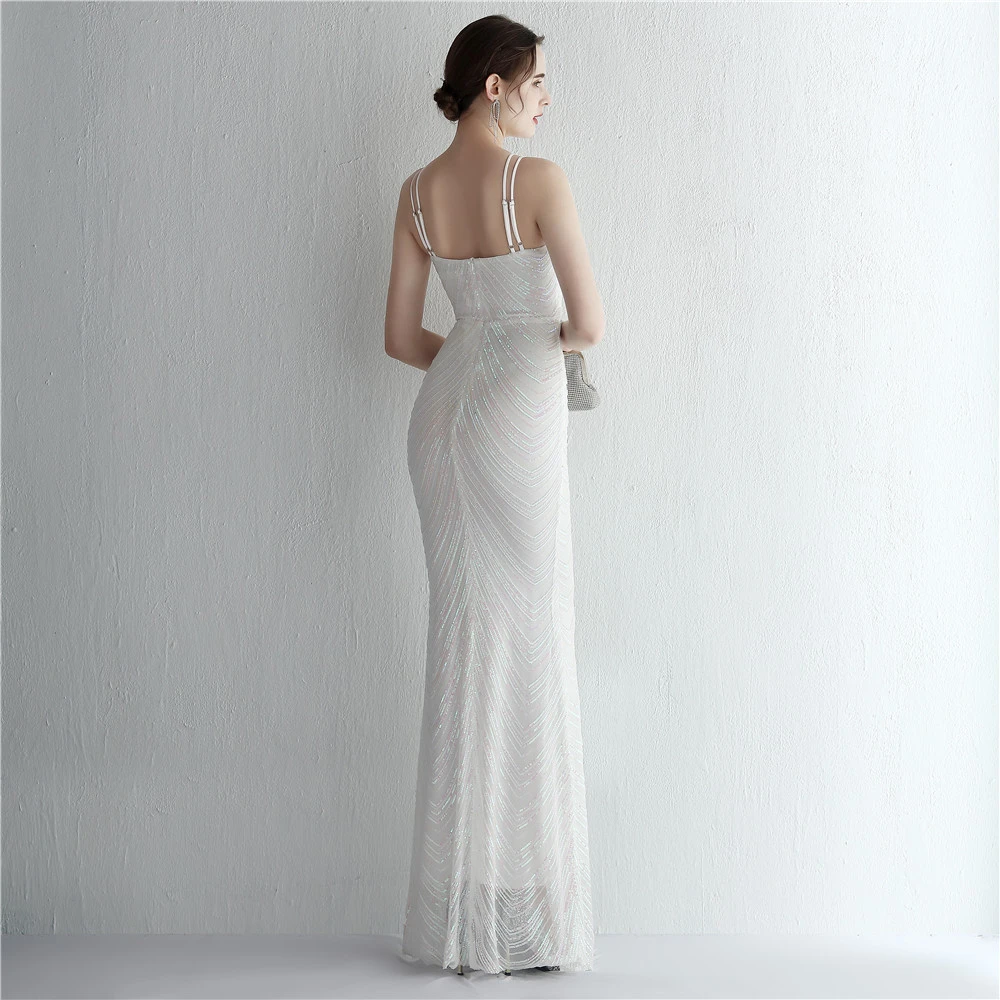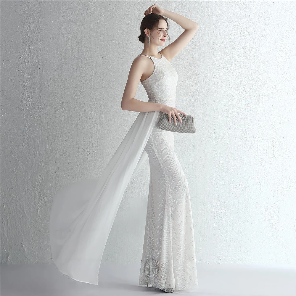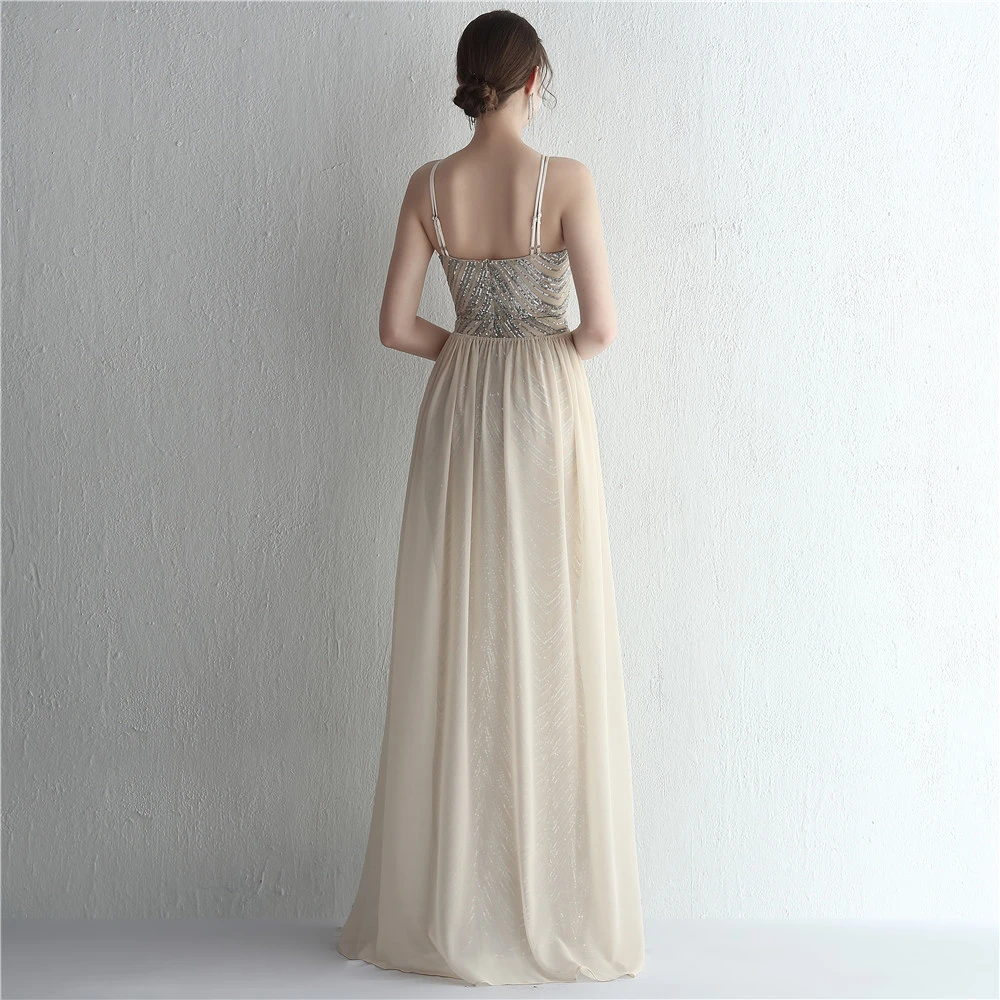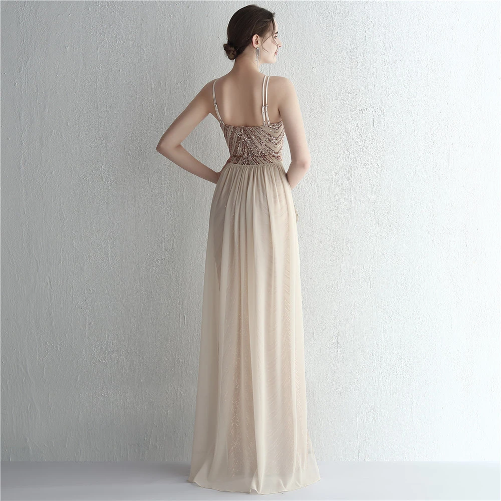 Positioning Flower Sequin Chiffon Skirt Craft Beaded Halter Neck Style Temperament Cold Celebrity Banquet Long Sequin