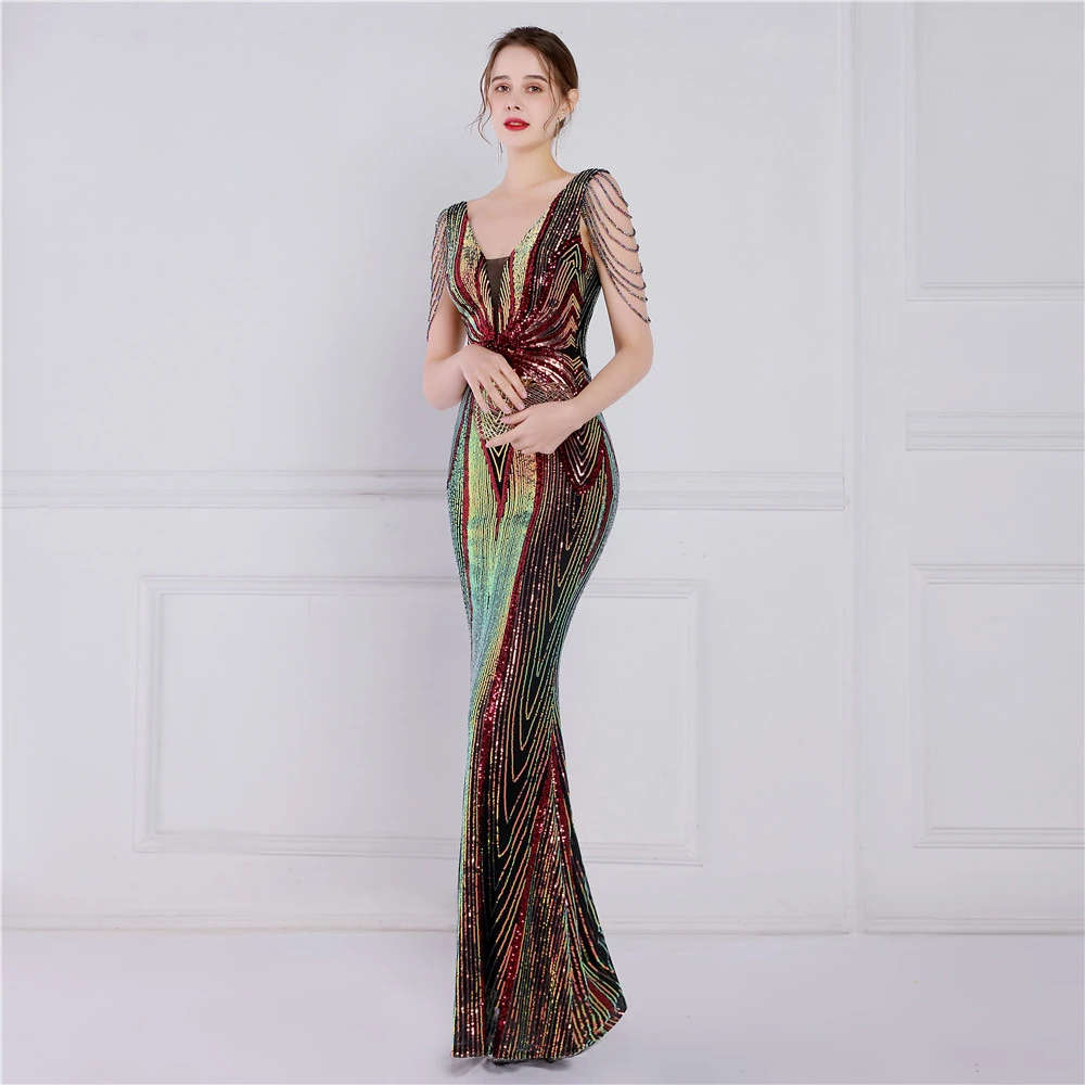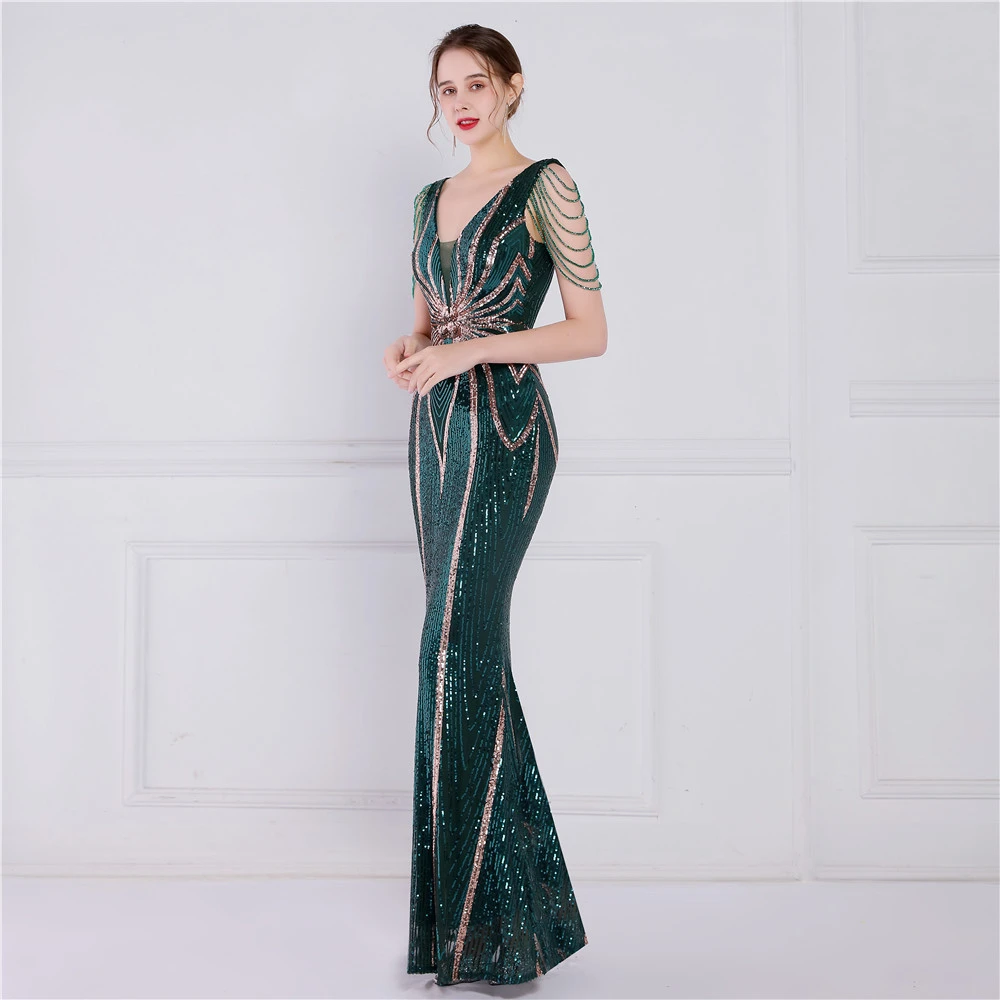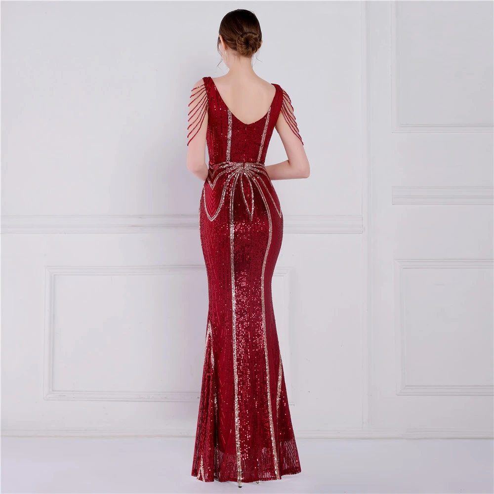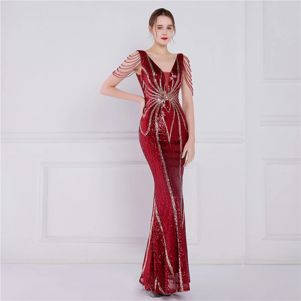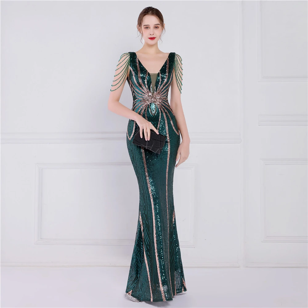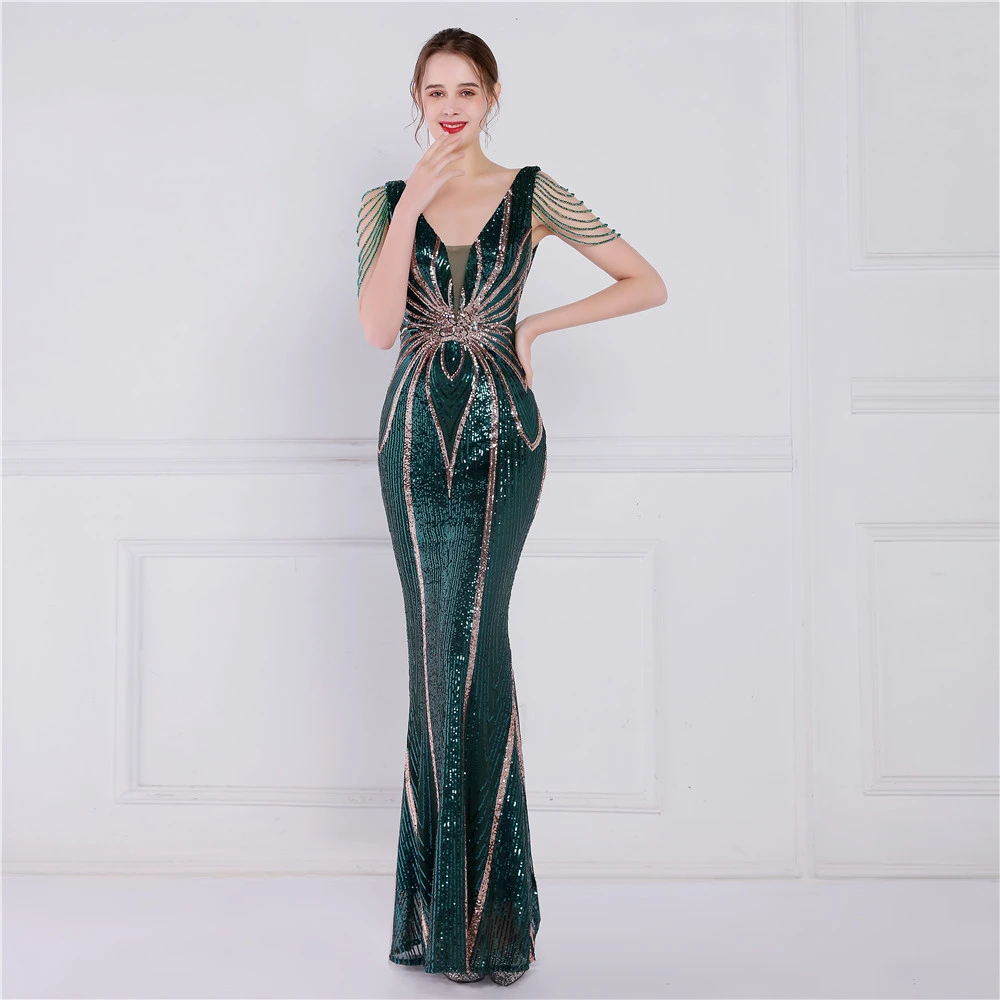 Positioning Flower Sequin Crafts Beaded Banquet Elegant Long Short-Sleeved Sequin Aura Queen Fish Tail Skirt