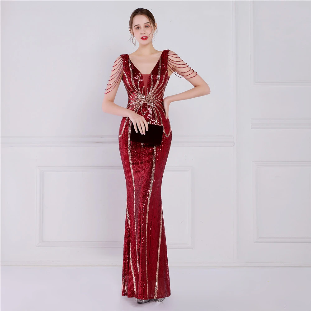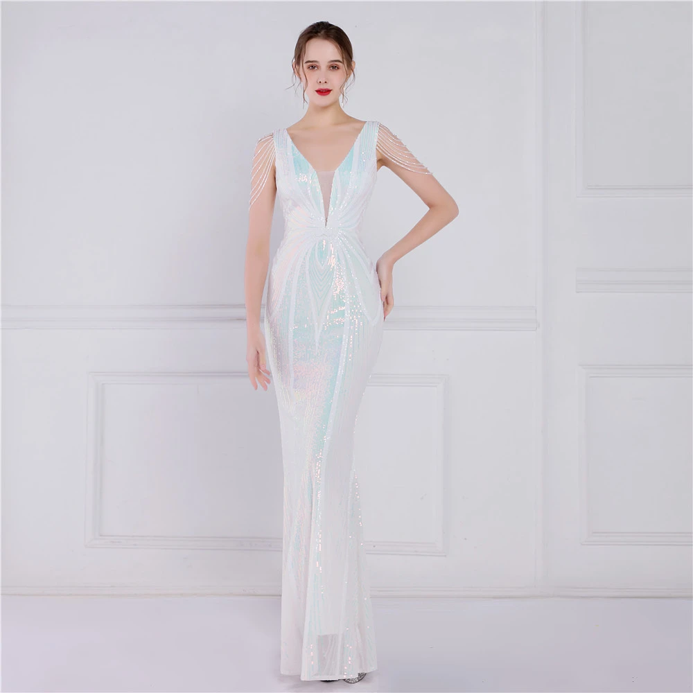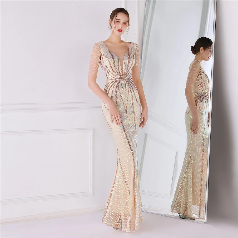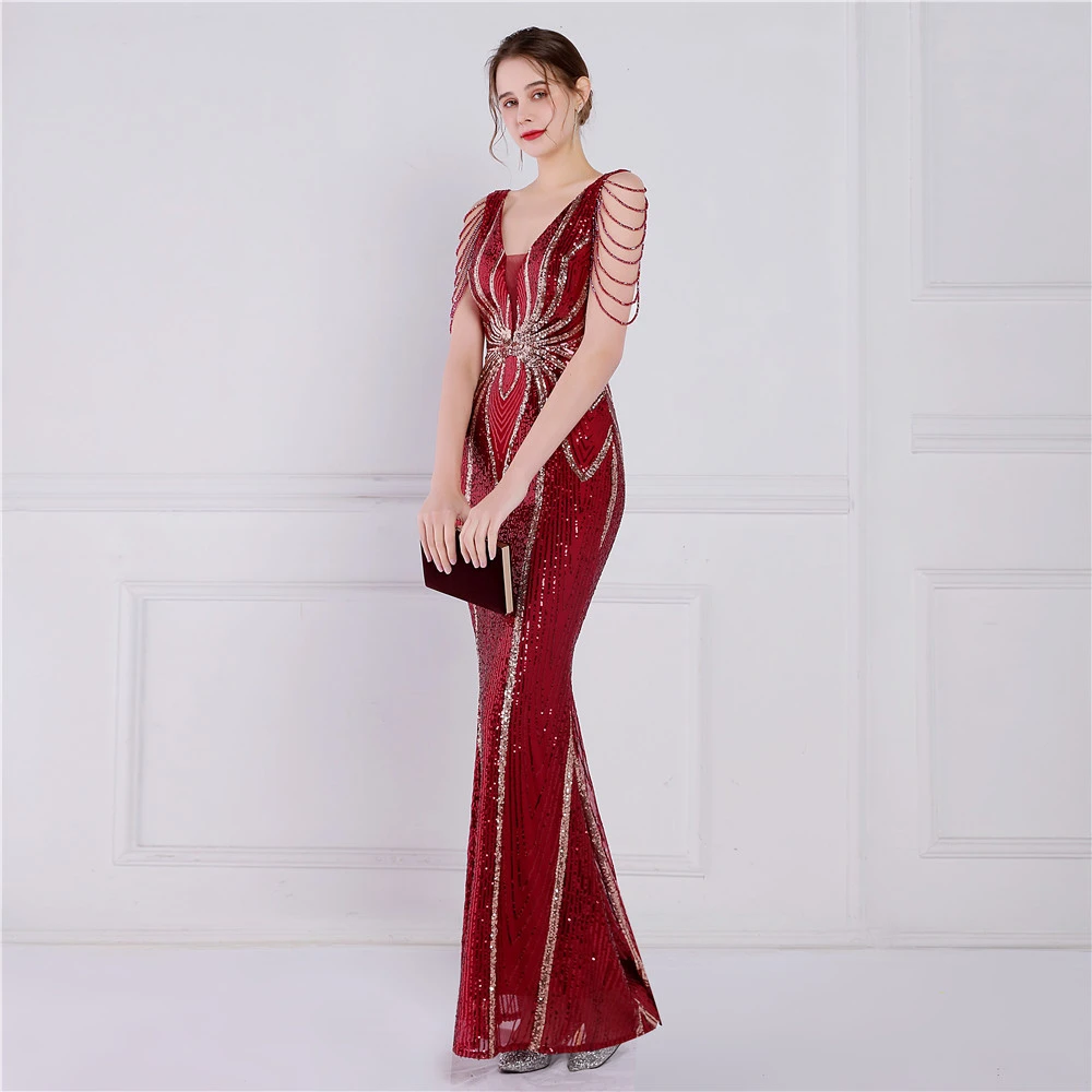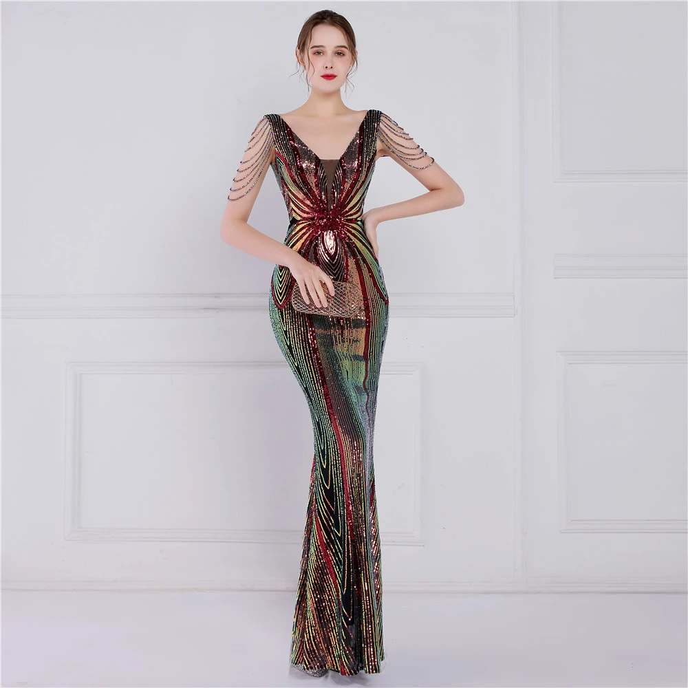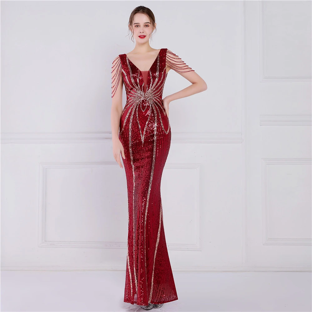 Positioning Flower Sequin Crafts Beaded Banquet Elegant Long Short-Sleeved Sequin Aura Queen Fish Tail Skirt