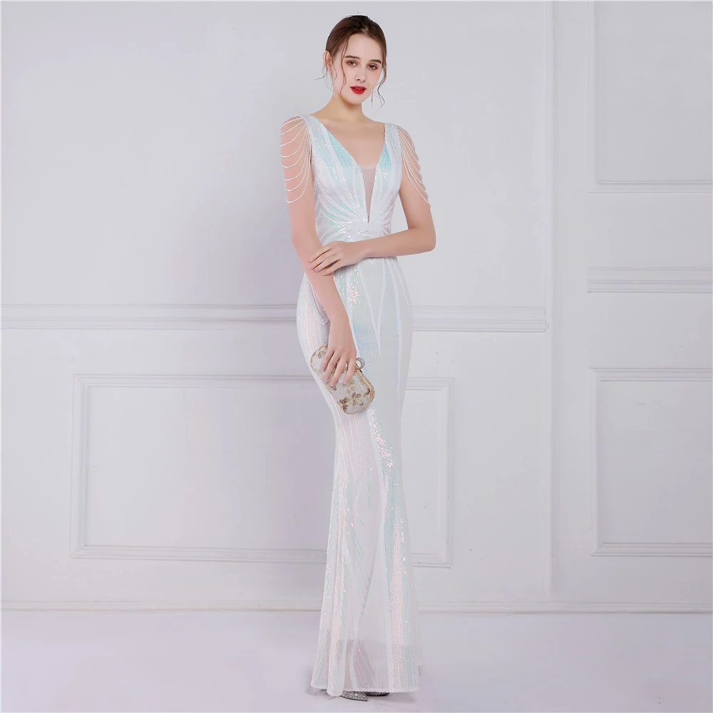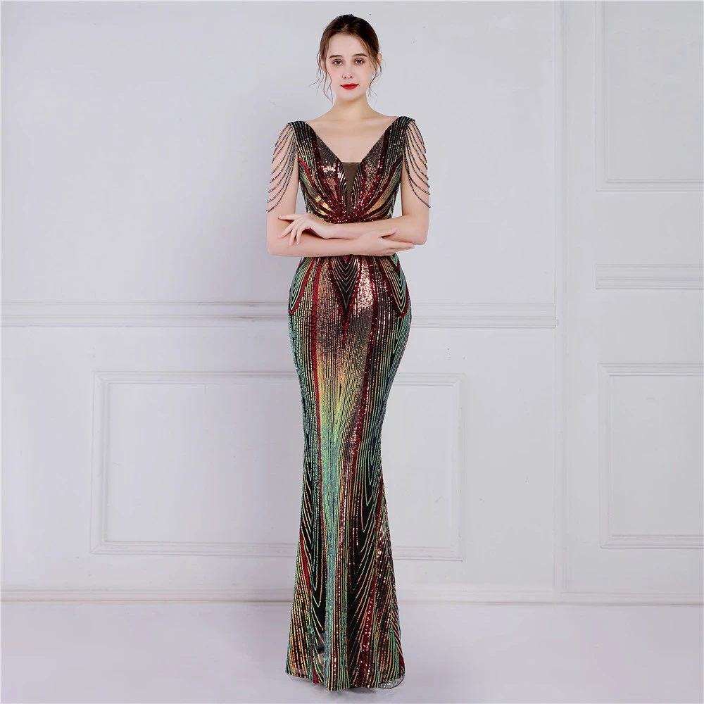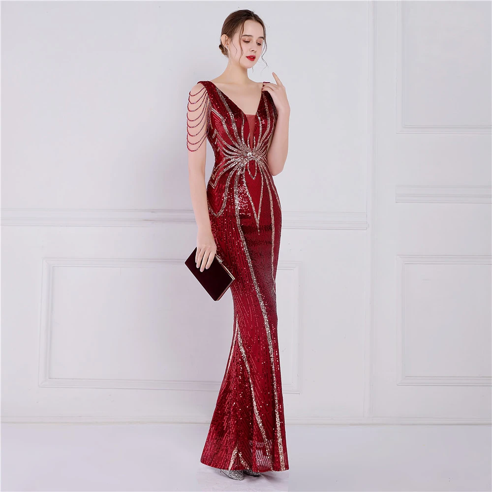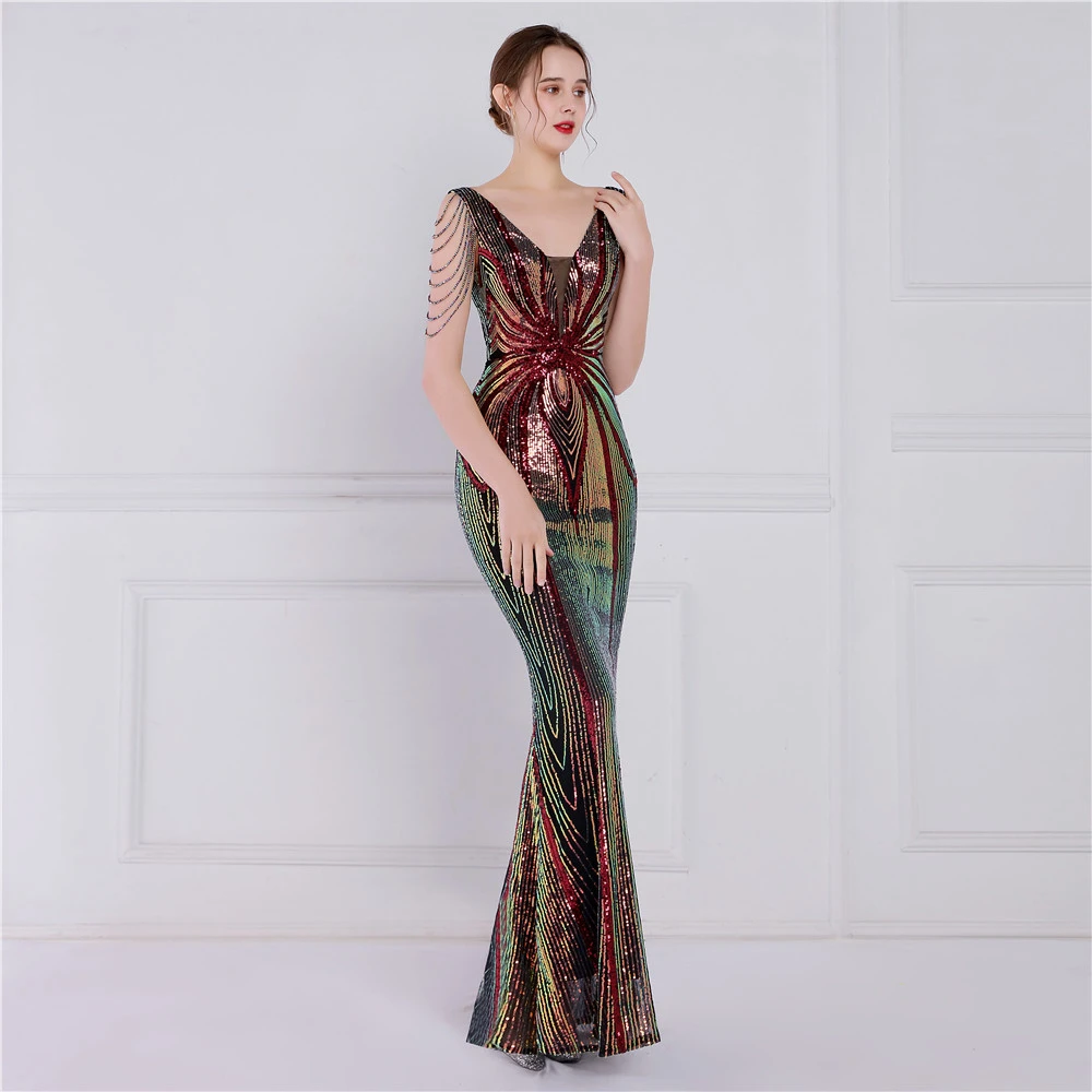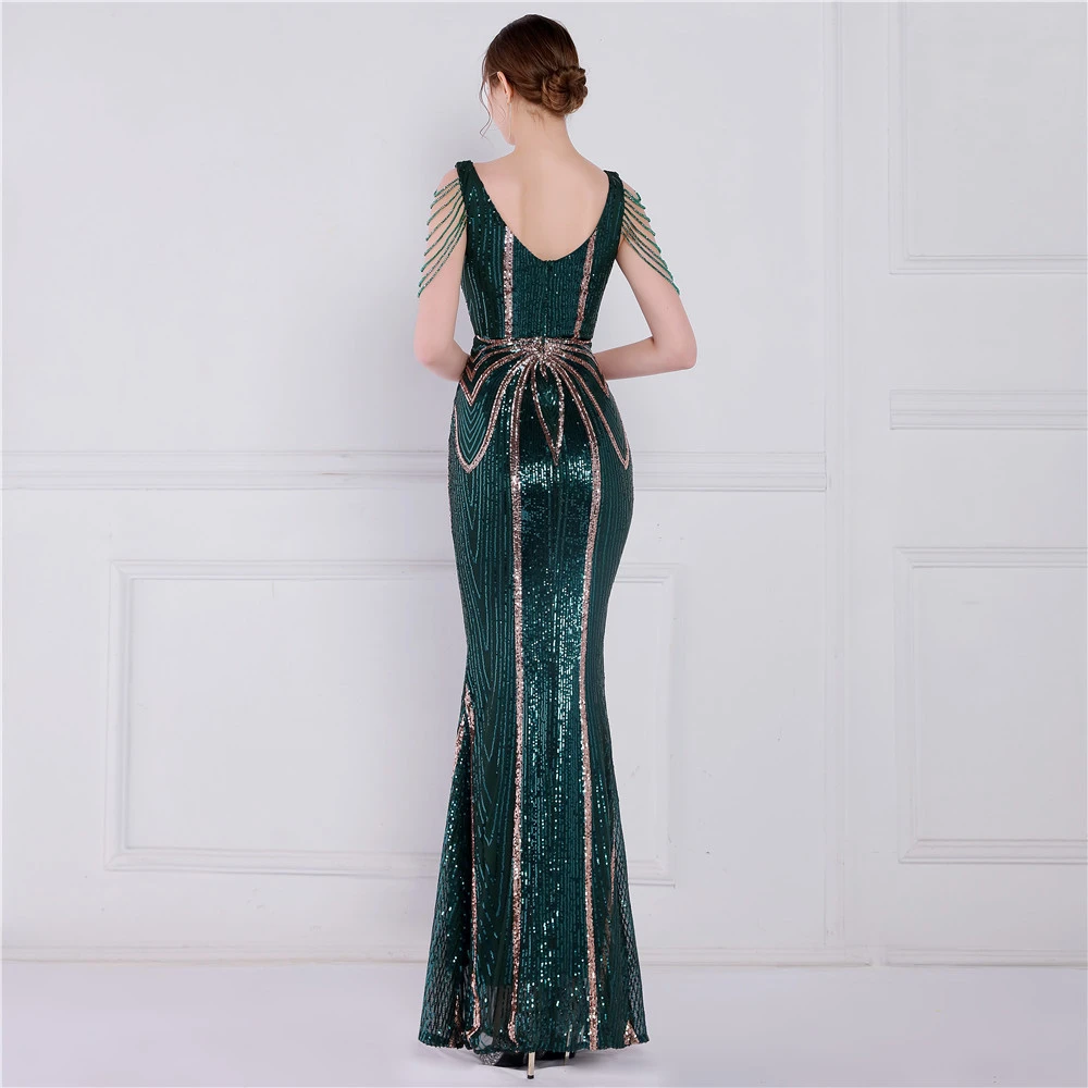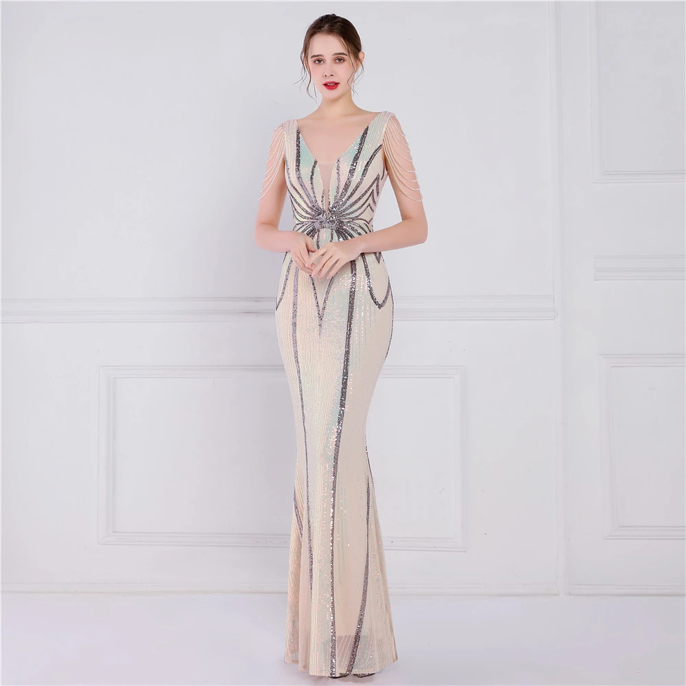 Positioning Flower Sequin Crafts Beaded Banquet Elegant Long Short-Sleeved Sequin Aura Queen Fish Tail Skirt