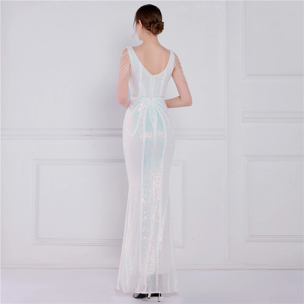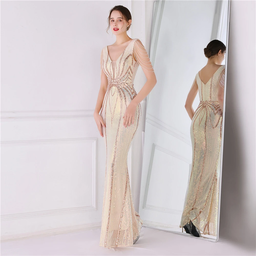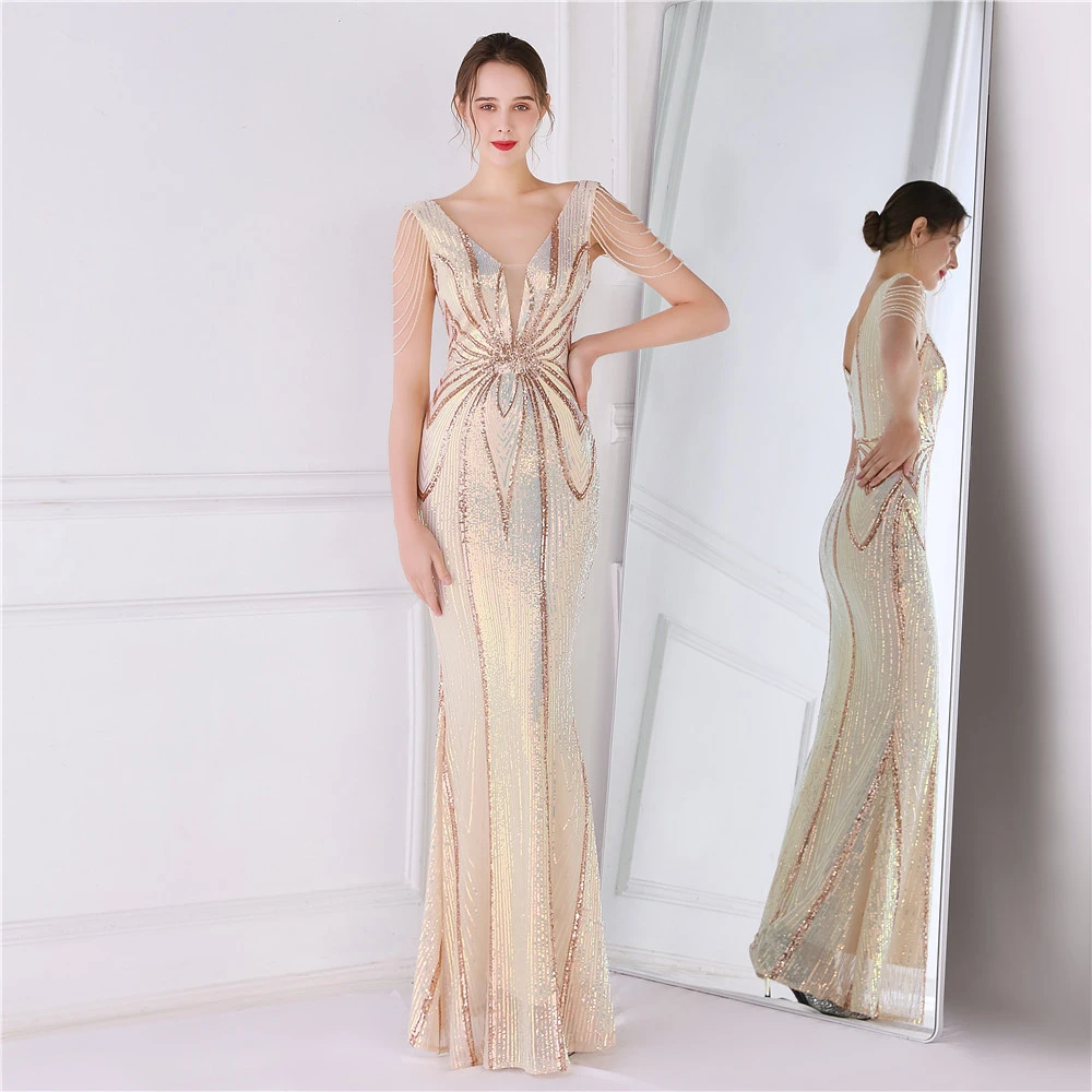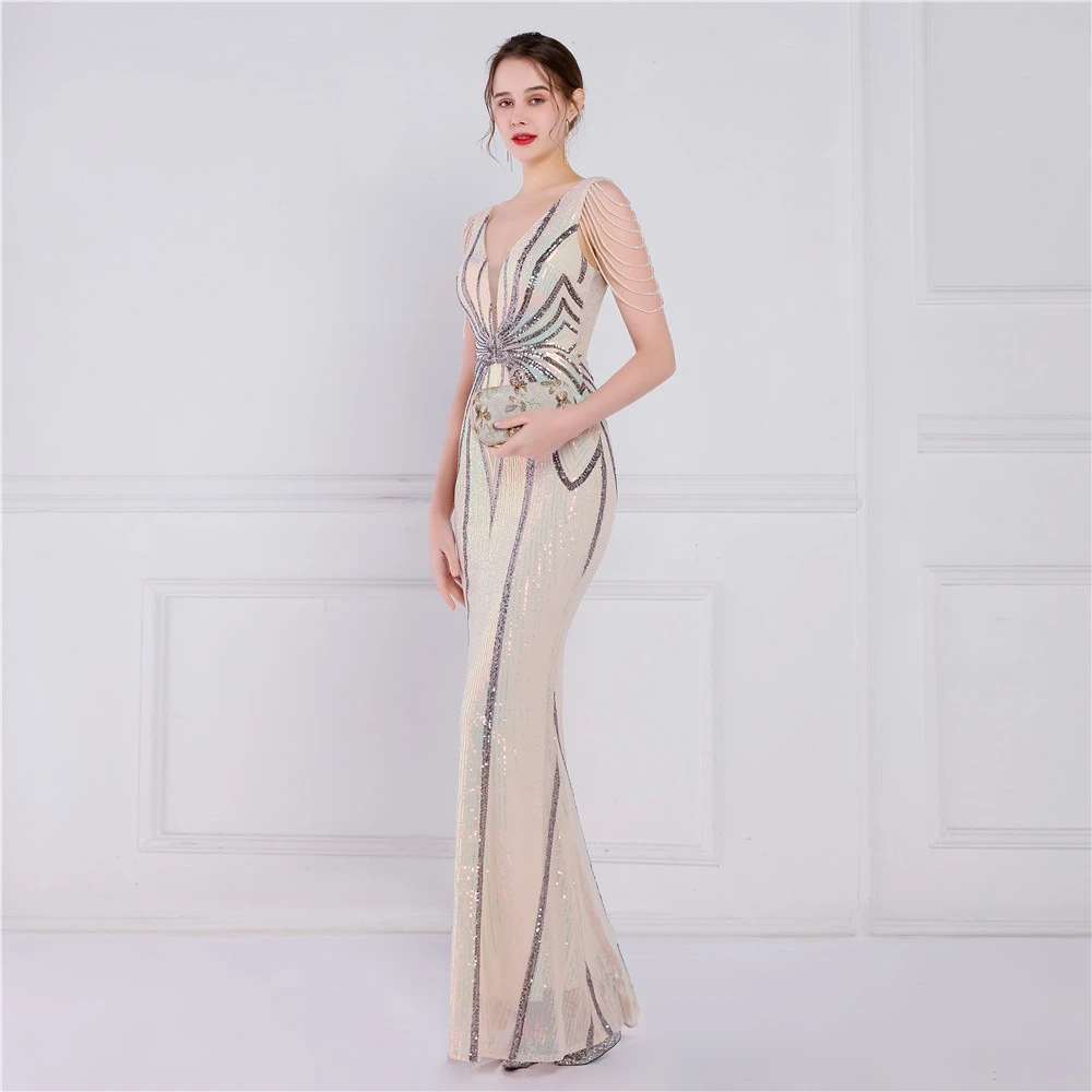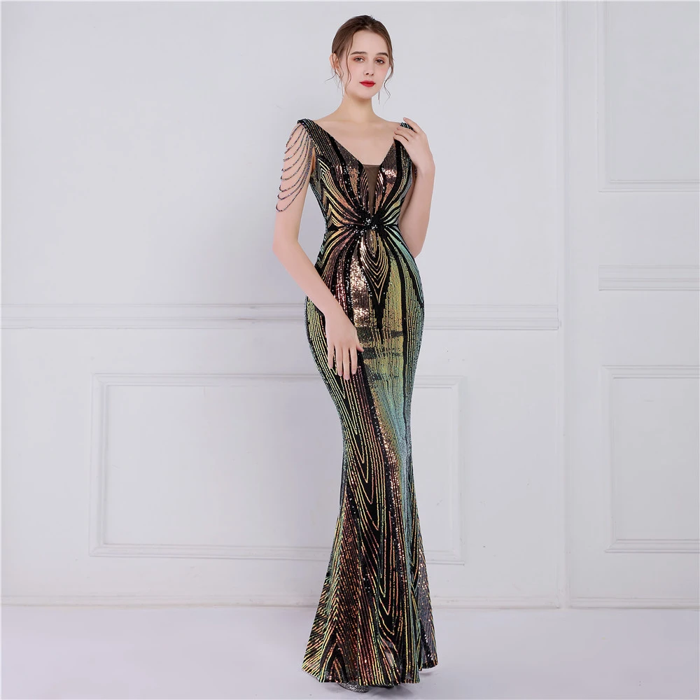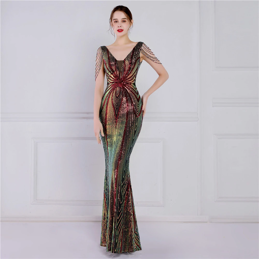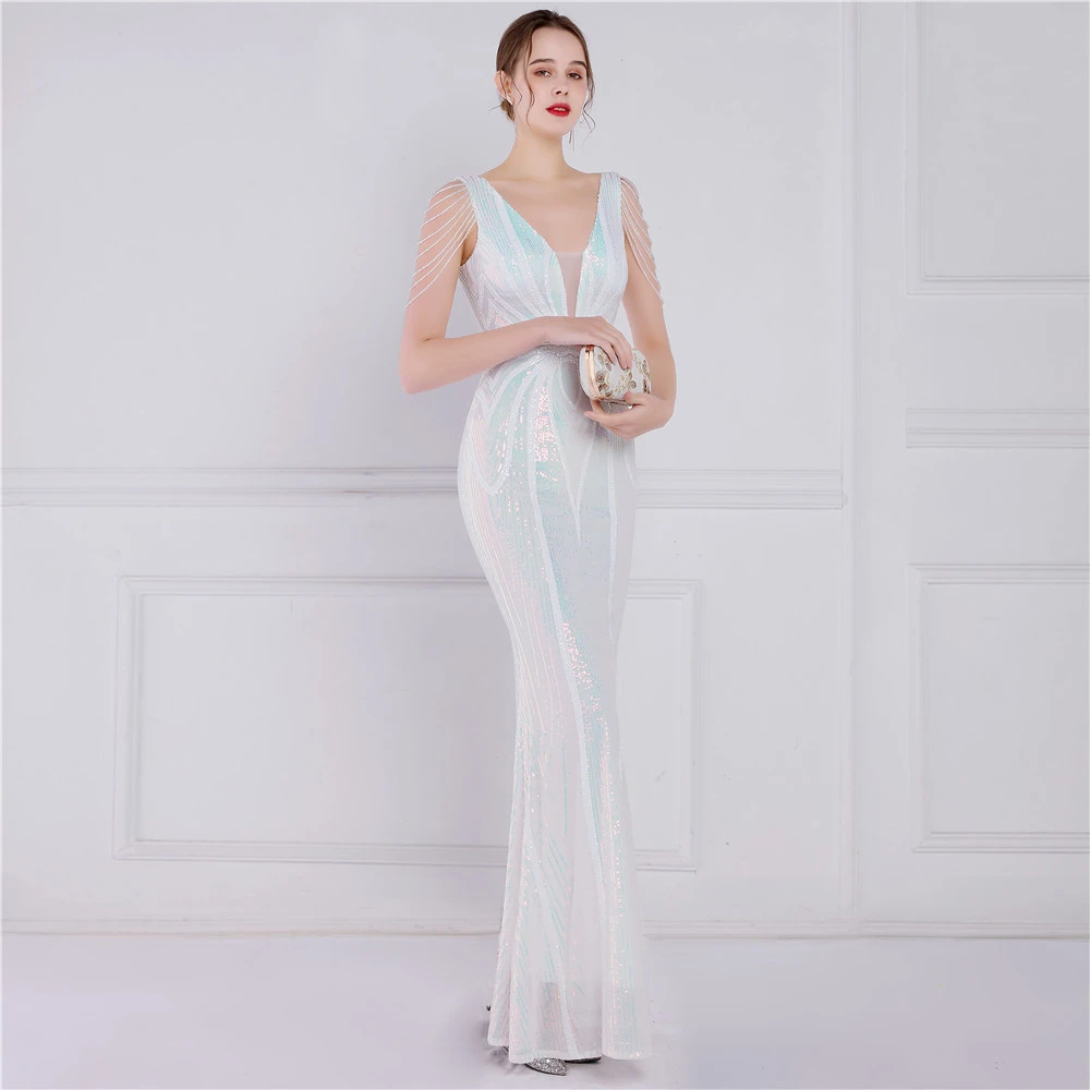 Positioning Flower Sequin Crafts Beaded Banquet Elegant Long Short-Sleeved Sequin Aura Queen Fish Tail Skirt