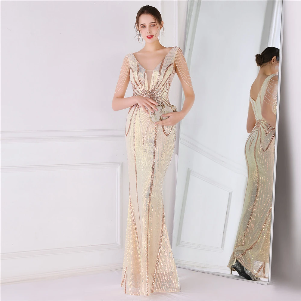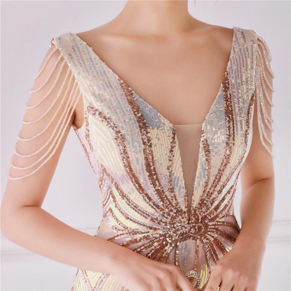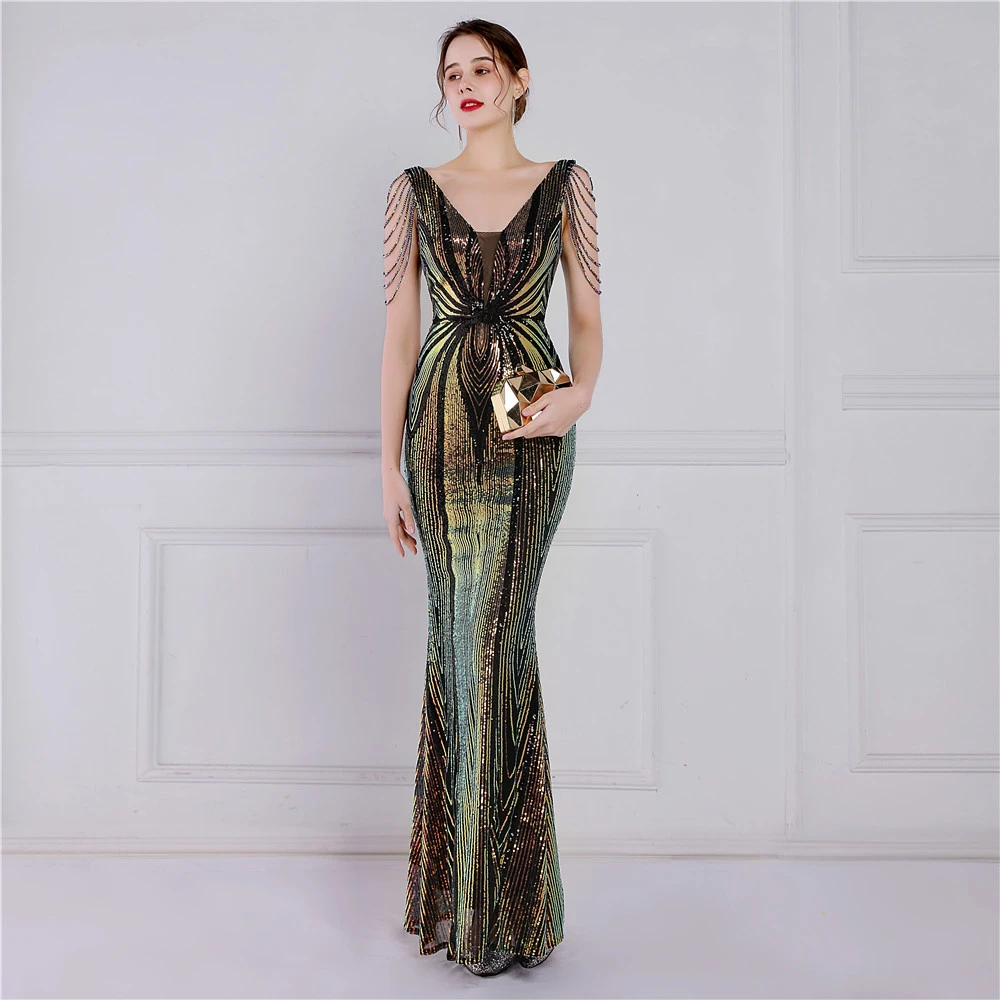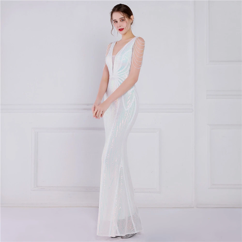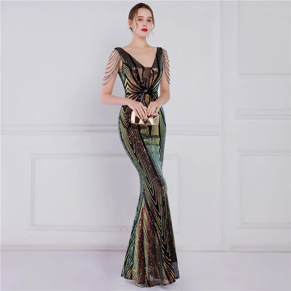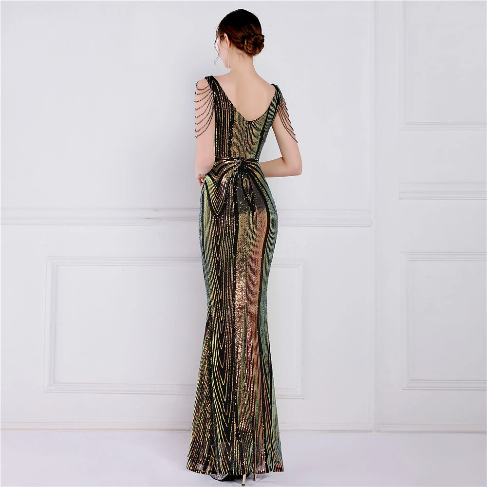 Positioning Flower Sequin Crafts Beaded Banquet Elegant Long Short-Sleeved Sequin Aura Queen Fish Tail Skirt