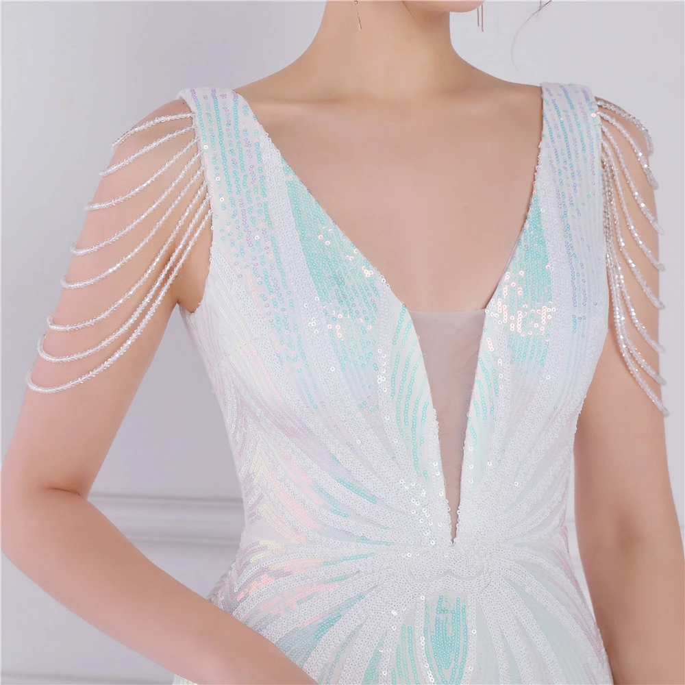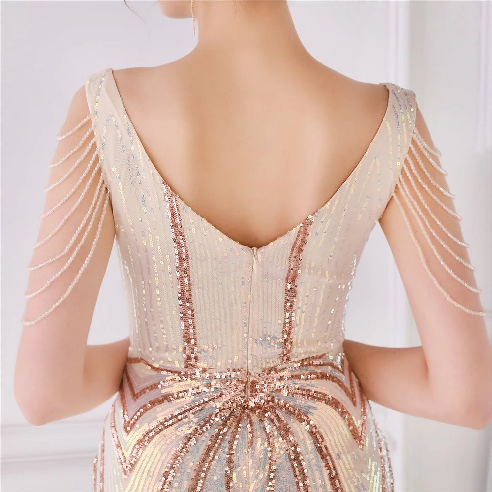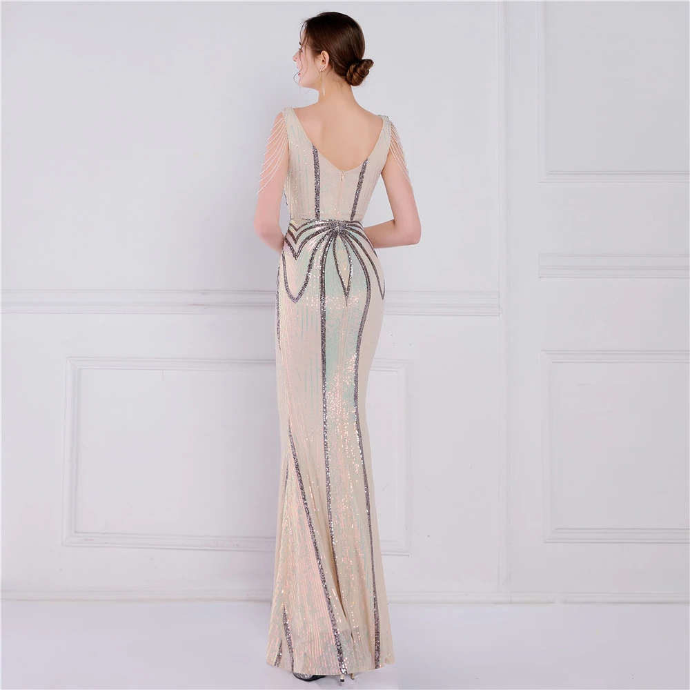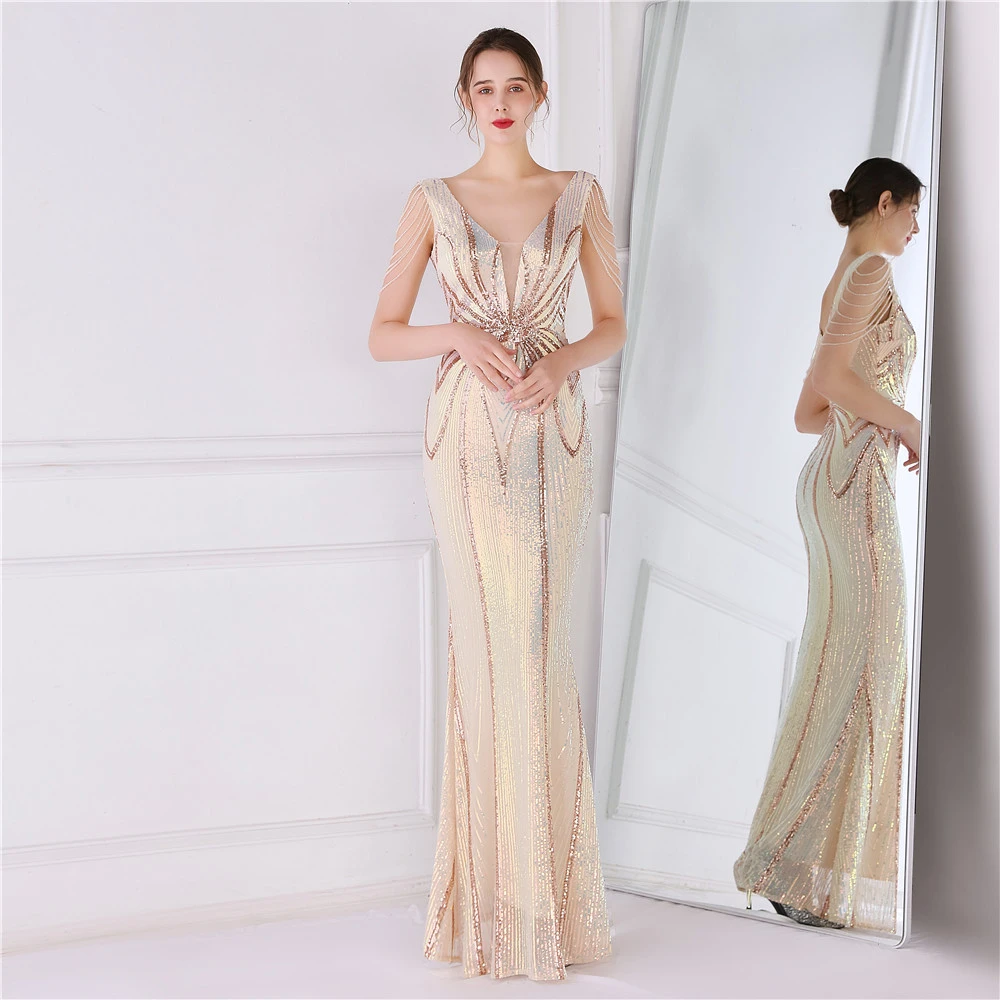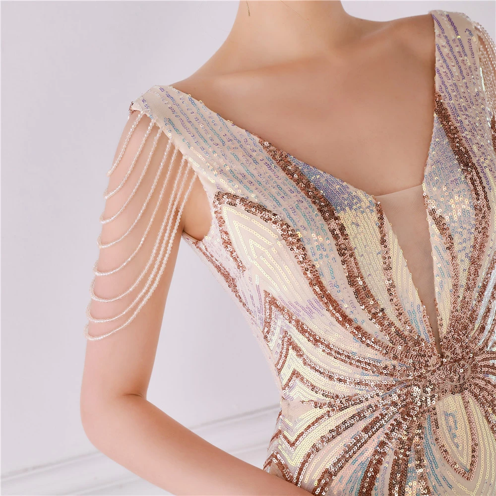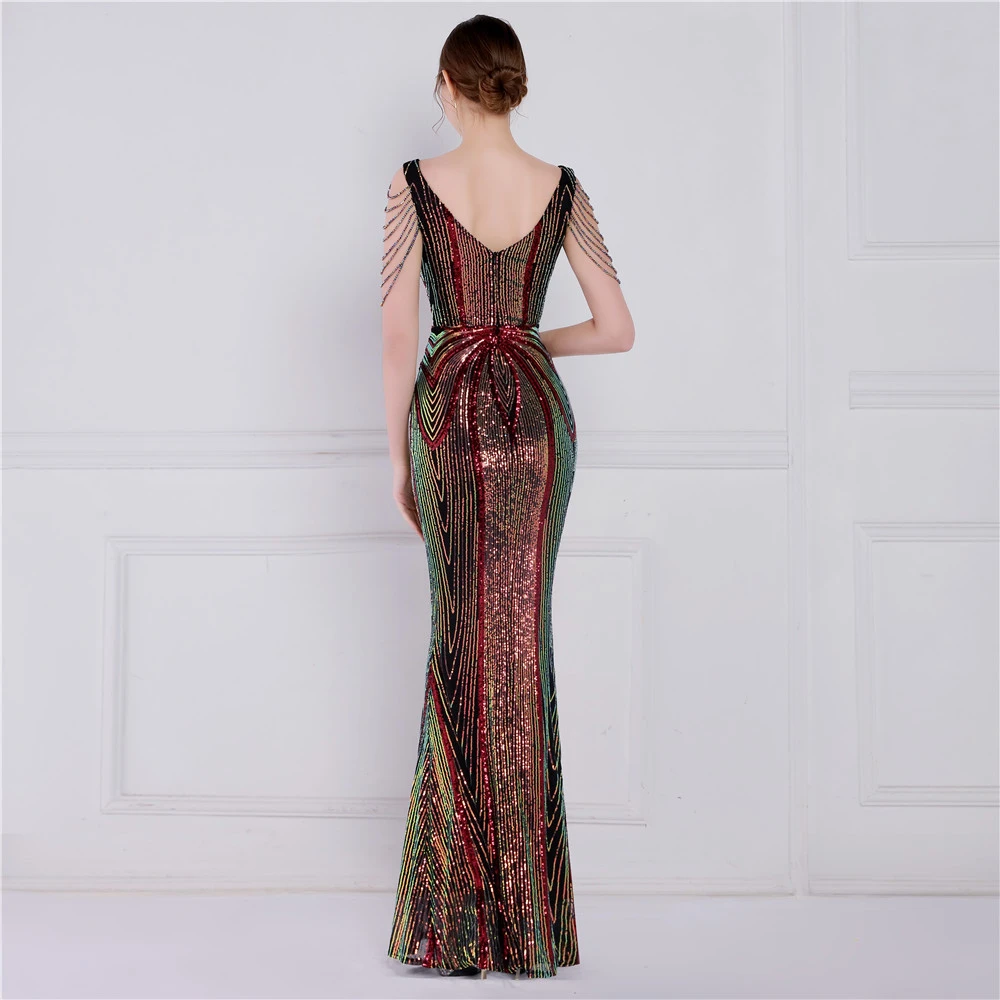 Positioning Flower Sequin Crafts Beaded Banquet Elegant Long Short-Sleeved Sequin Aura Queen Fish Tail Skirt
