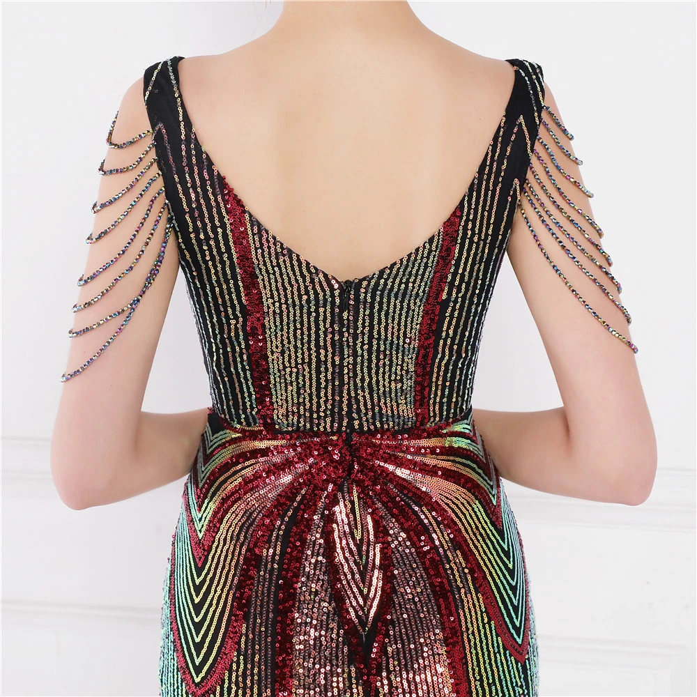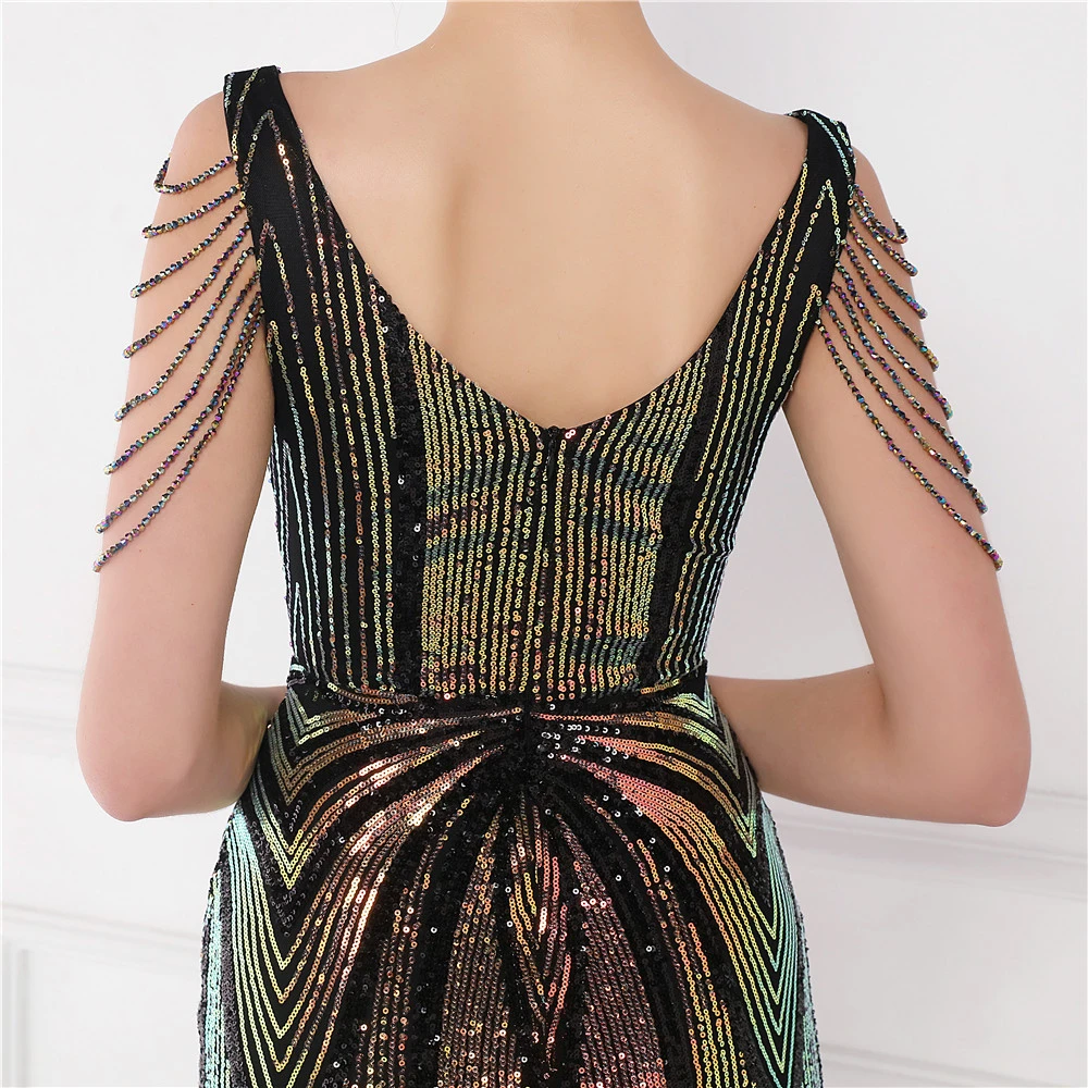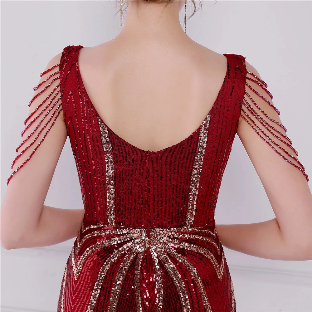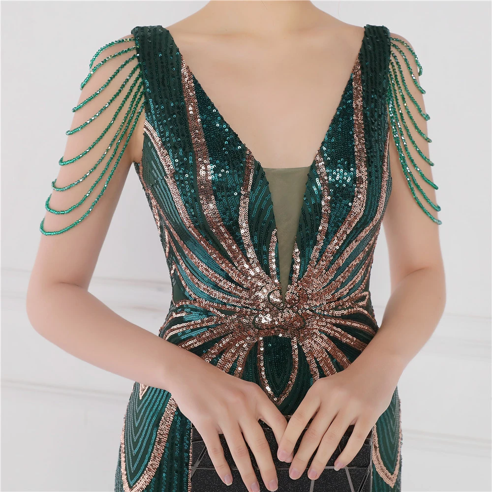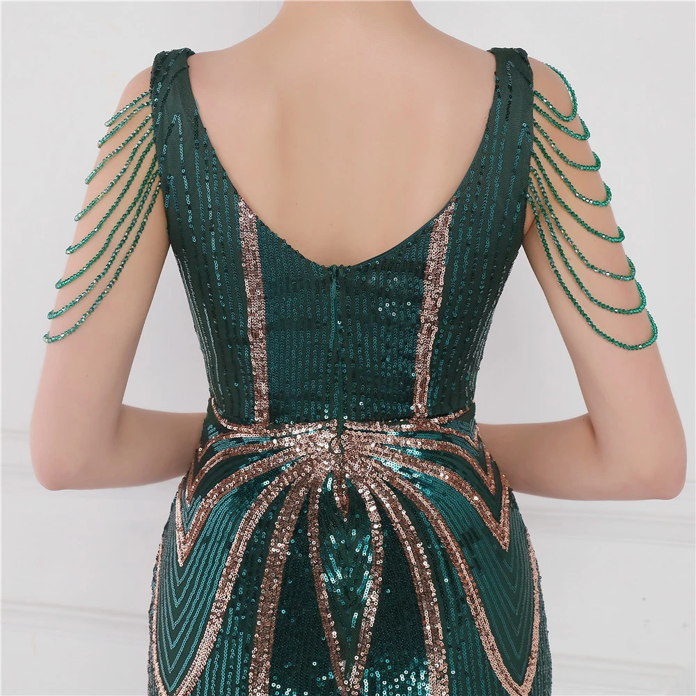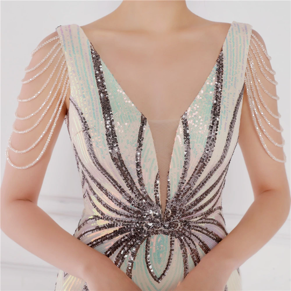 Positioning Flower Sequin Crafts Beaded Banquet Elegant Long Short-Sleeved Sequin Aura Queen Fish Tail Skirt