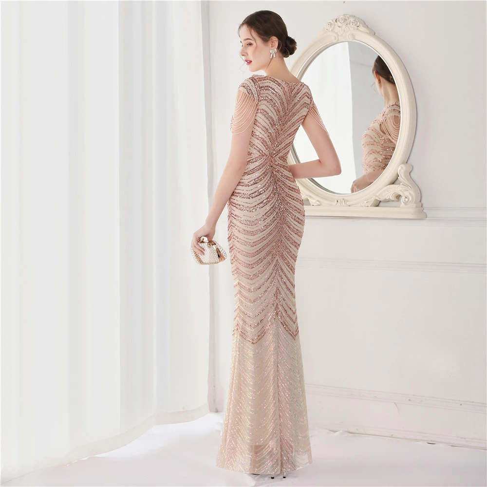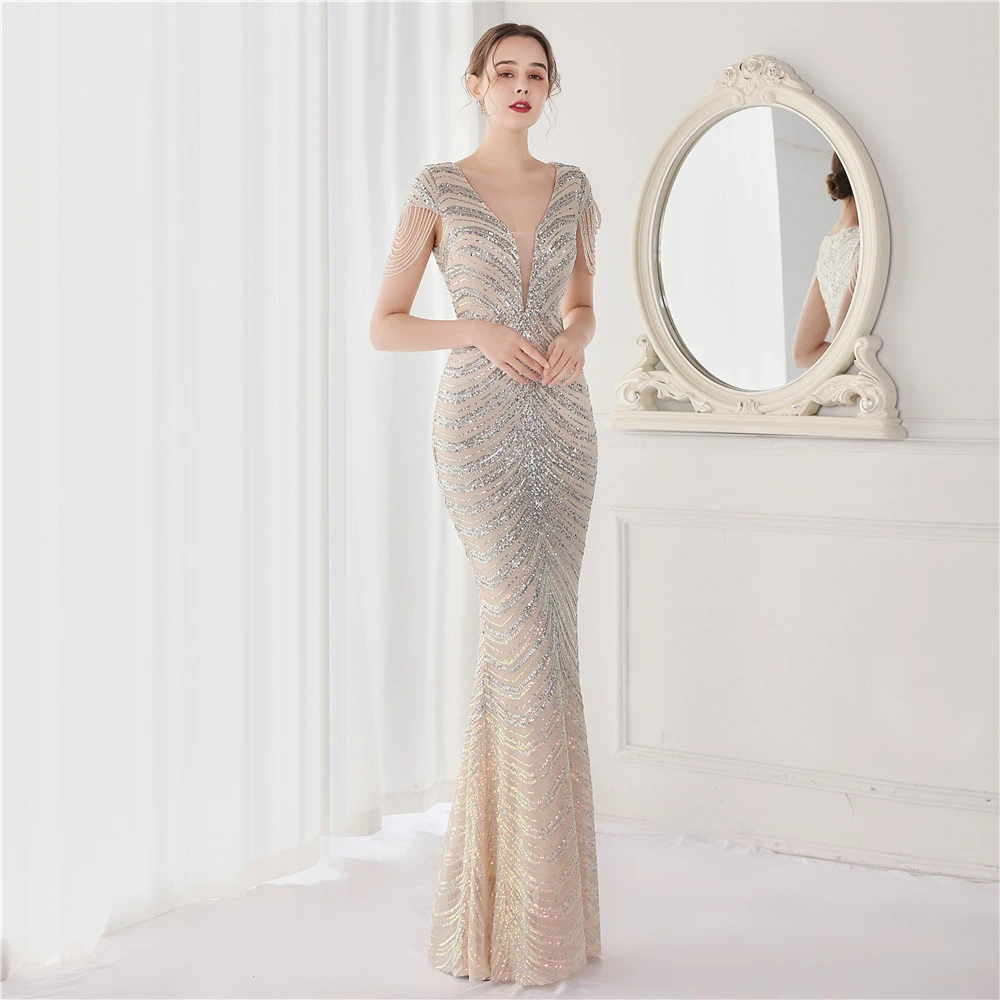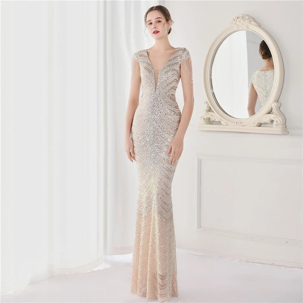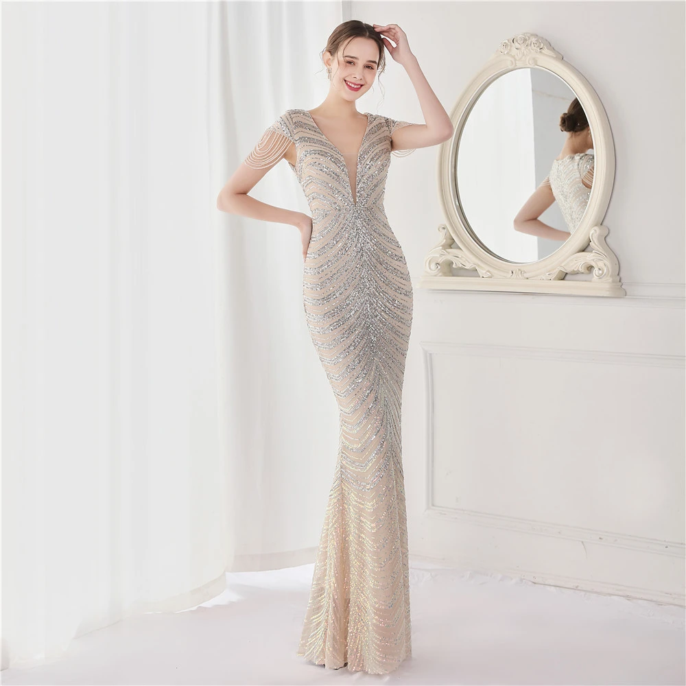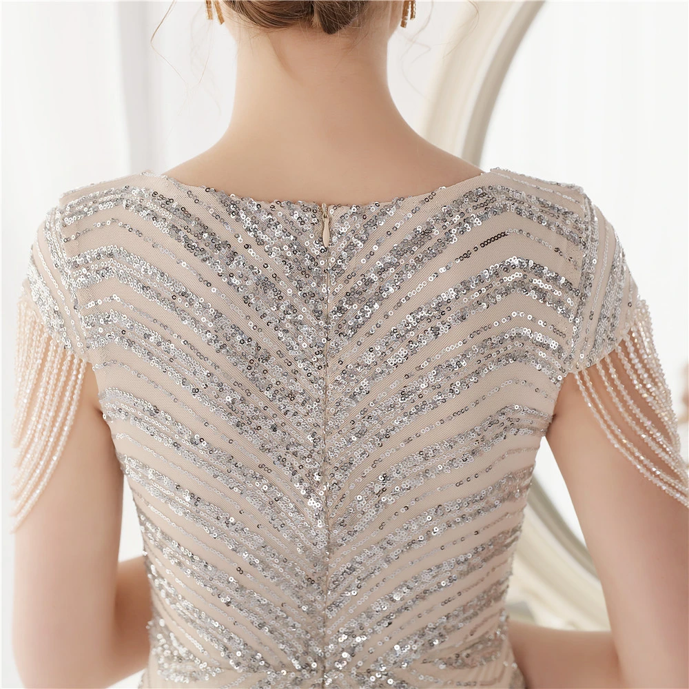 Positioning Flower Sequin Craftsmanship Beaded Party Evening Dress Sexy Long Toast Dress For Bride
