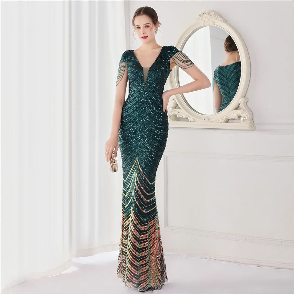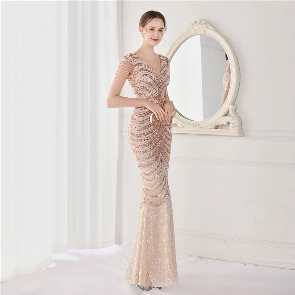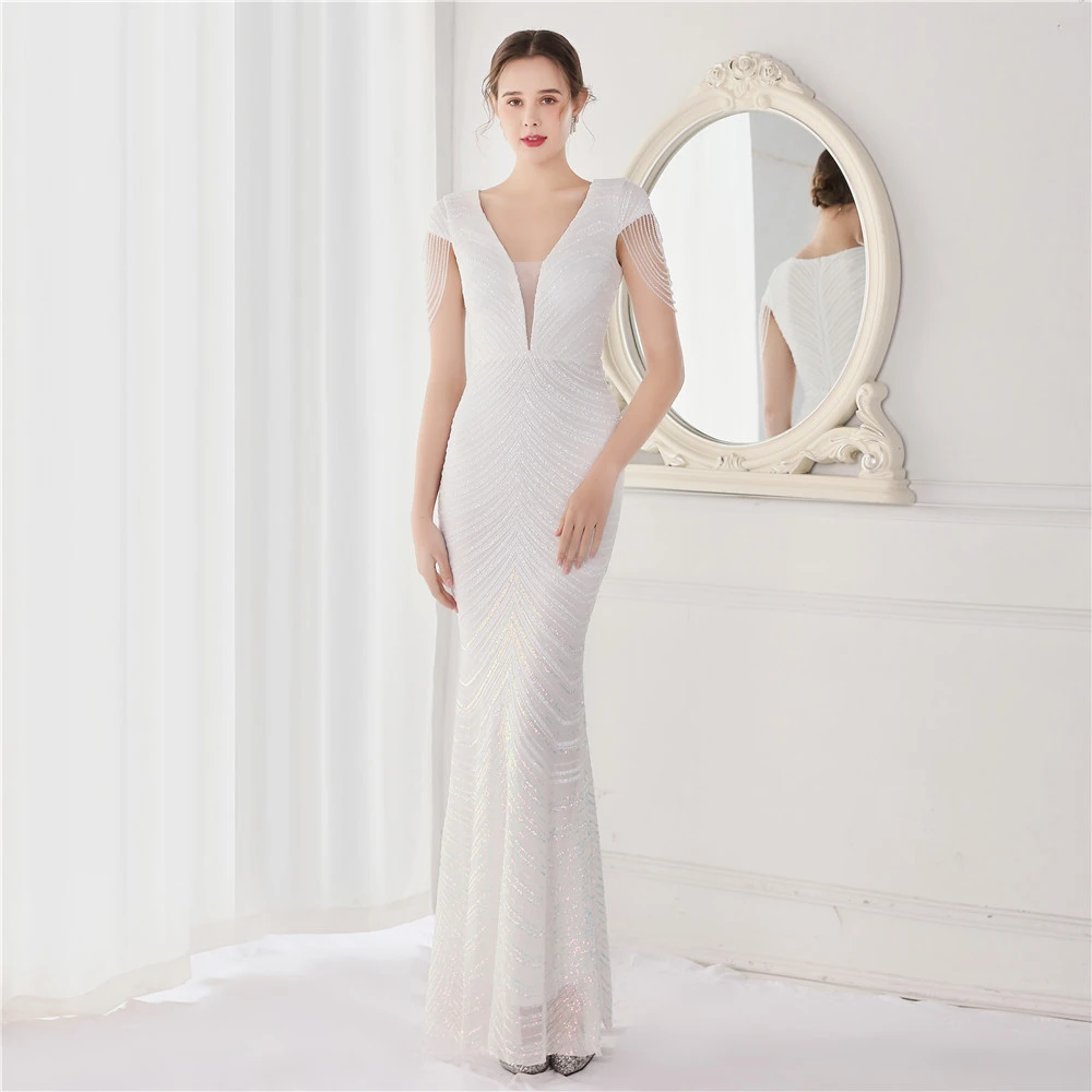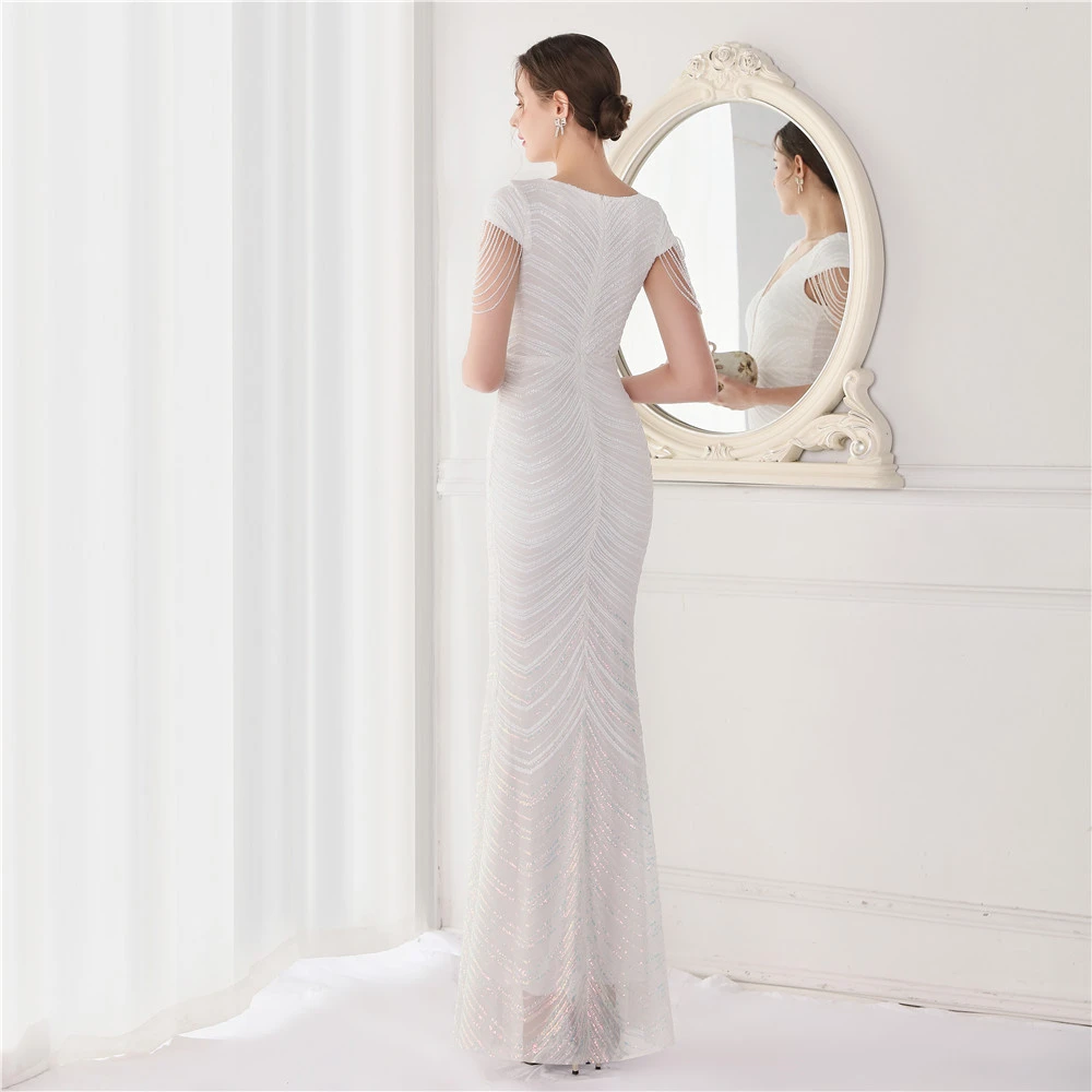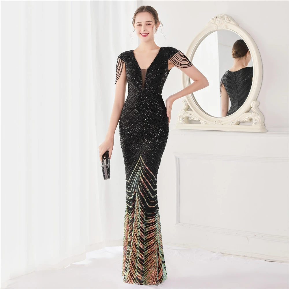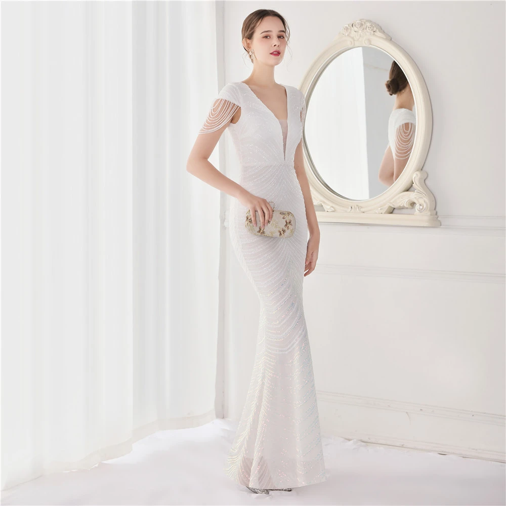 Positioning Flower Sequin Craftsmanship Beaded Party Evening Dress Sexy Long Toast Dress For Bride