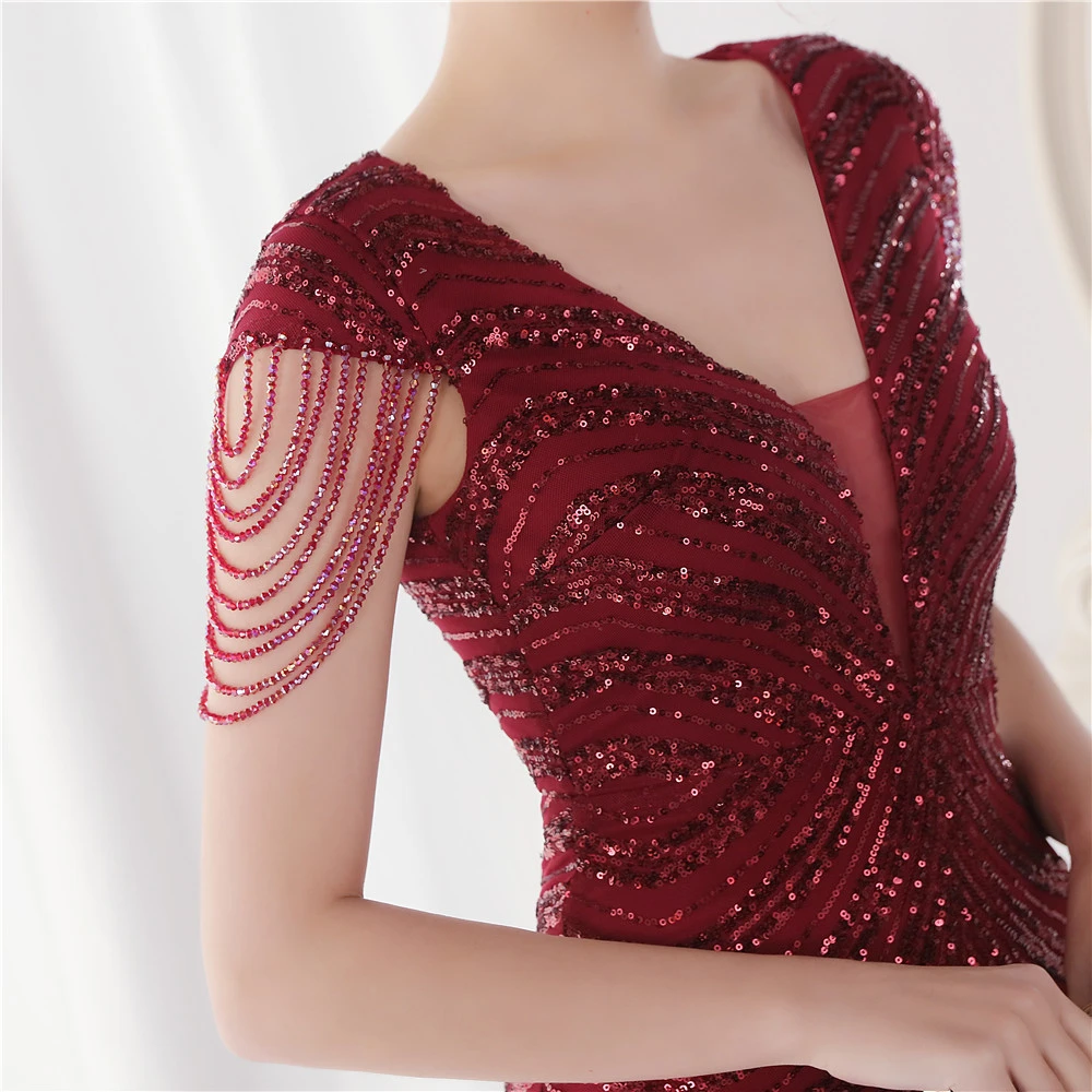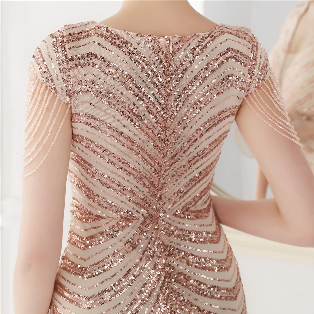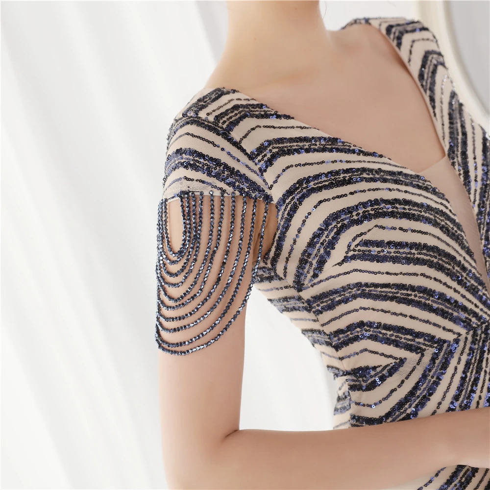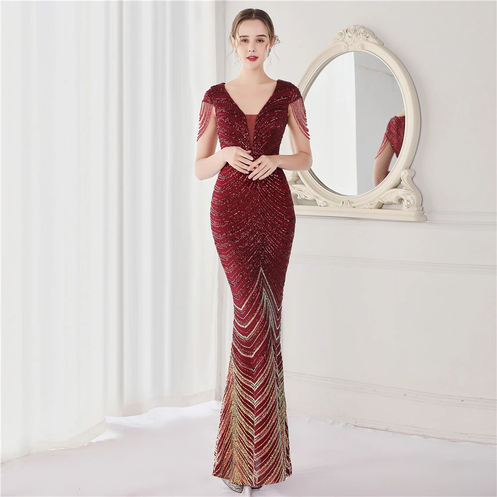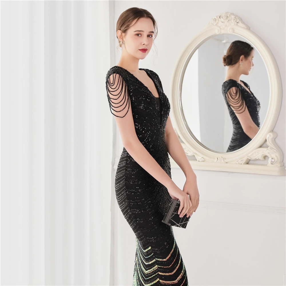 Positioning Flower Sequin Craftsmanship Beaded Party Evening Dress Sexy Long Toast Dress For Bride