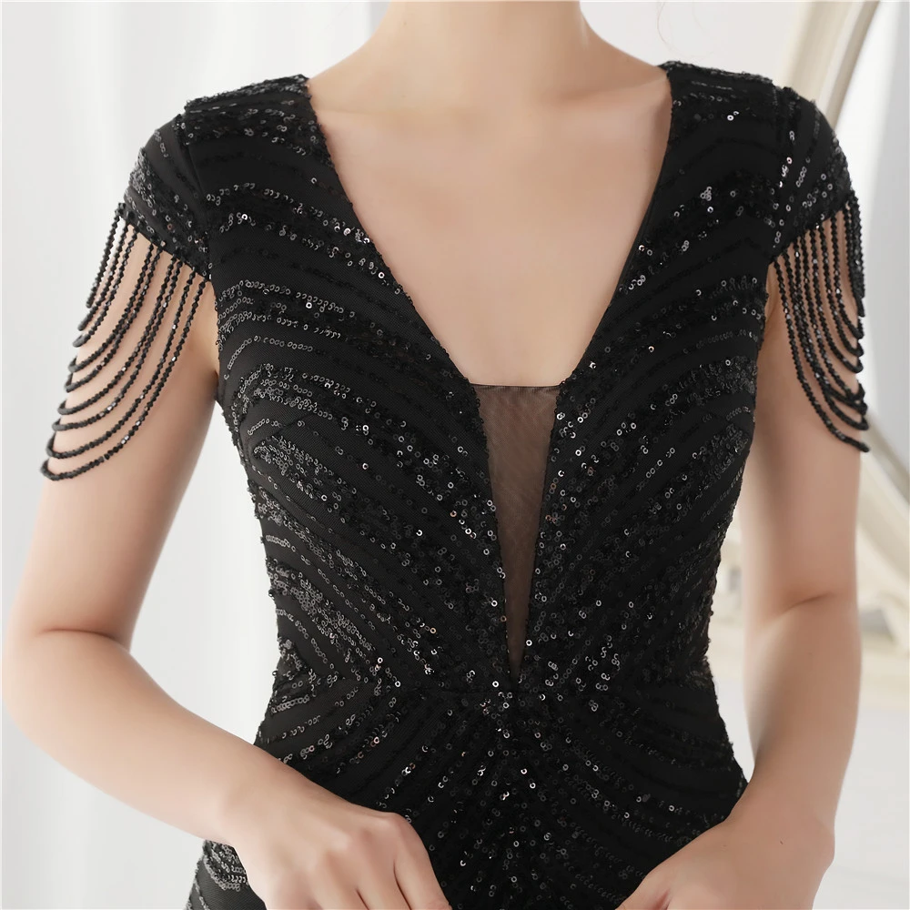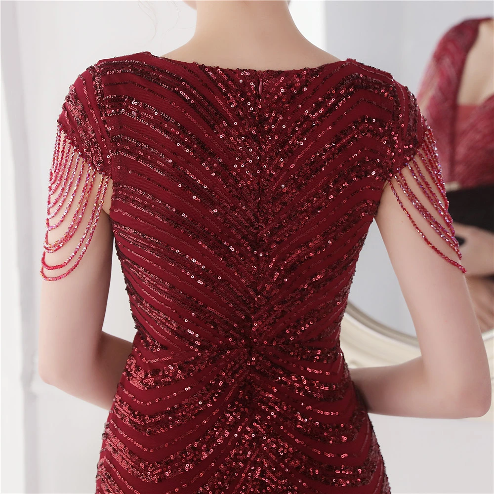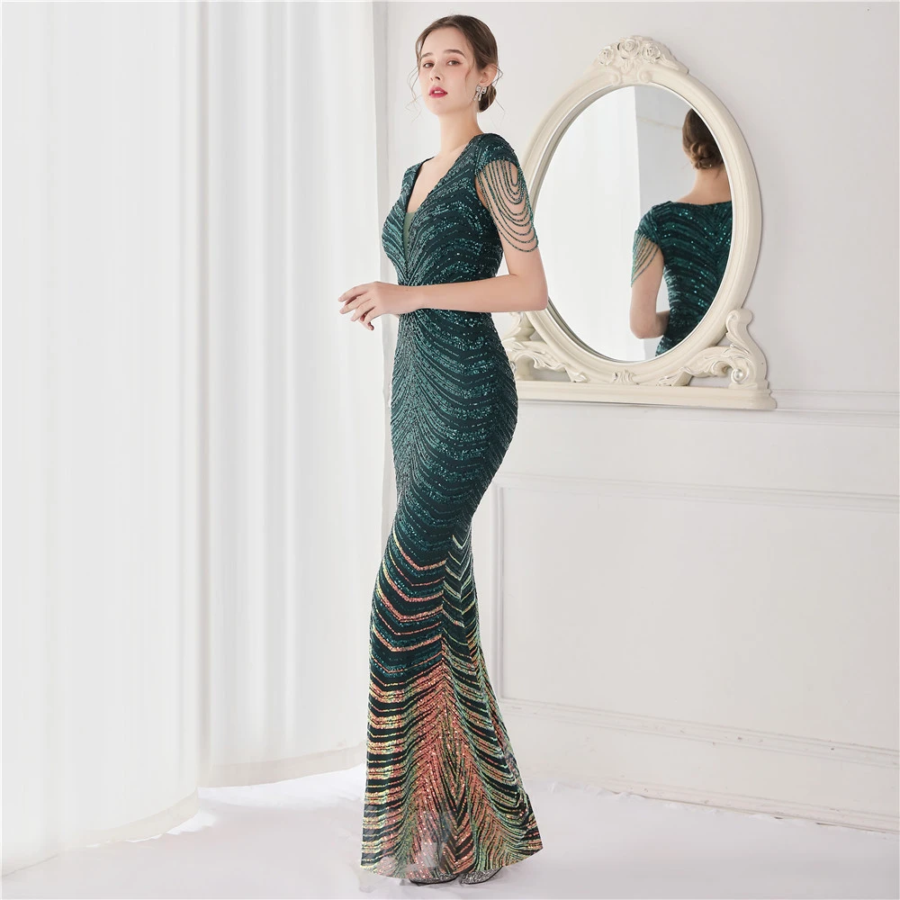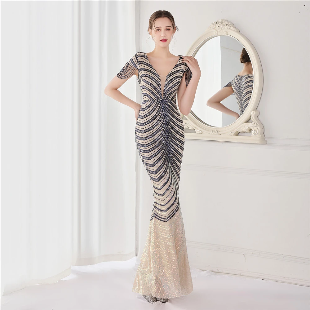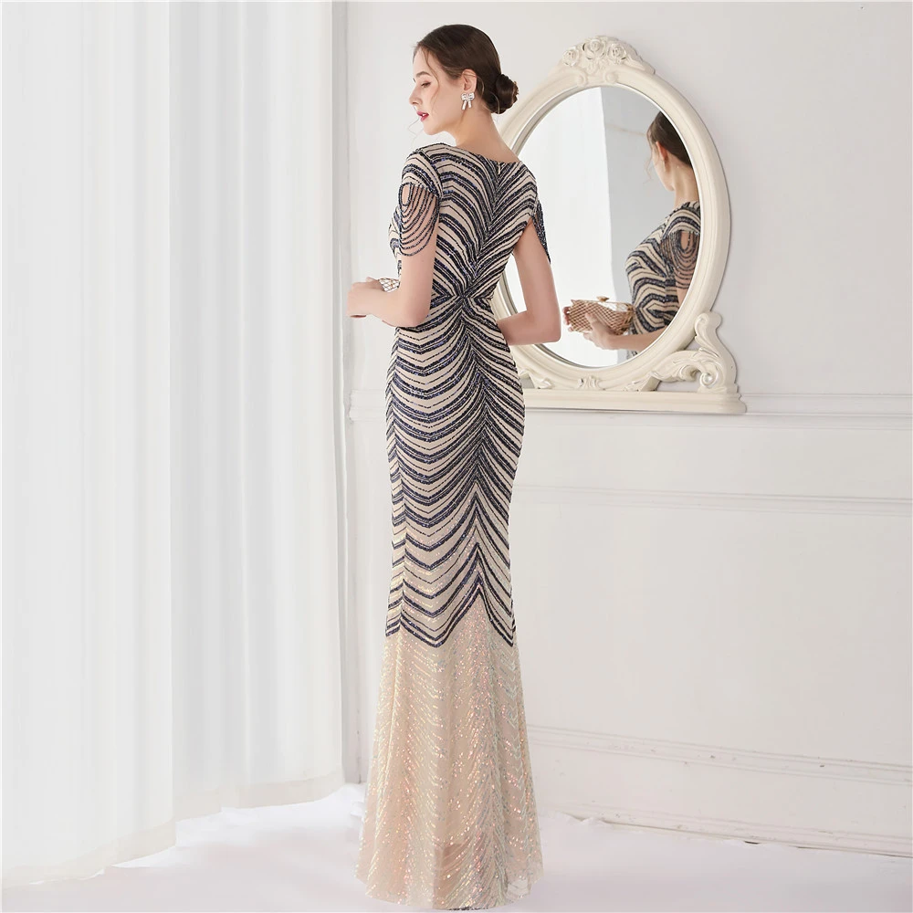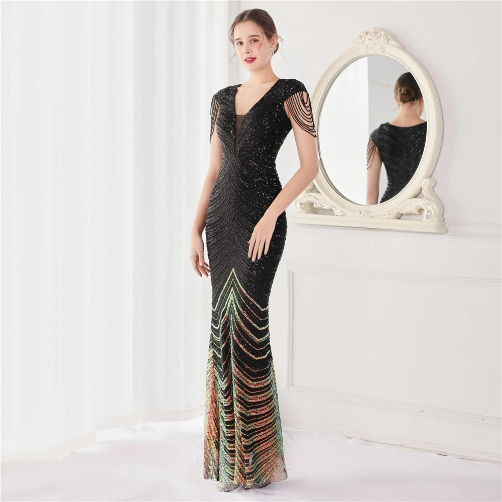 Positioning Flower Sequin Craftsmanship Beaded Party Evening Dress Sexy Long Toast Dress For Bride
