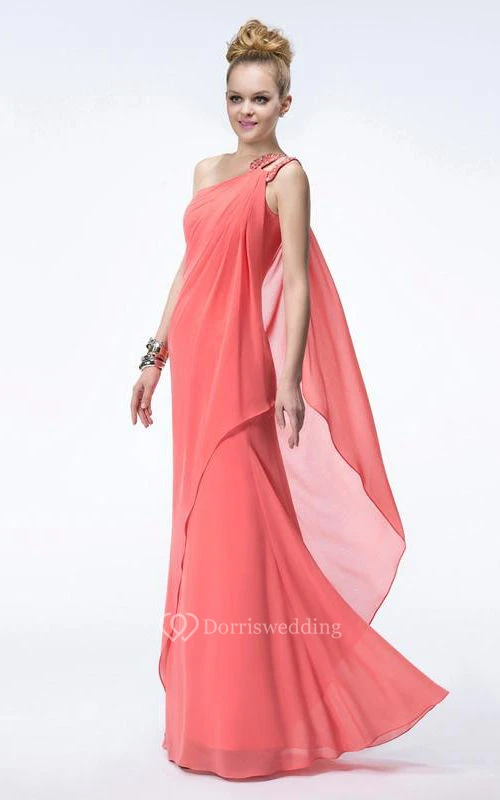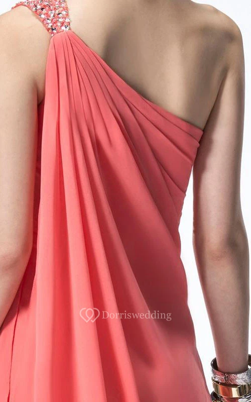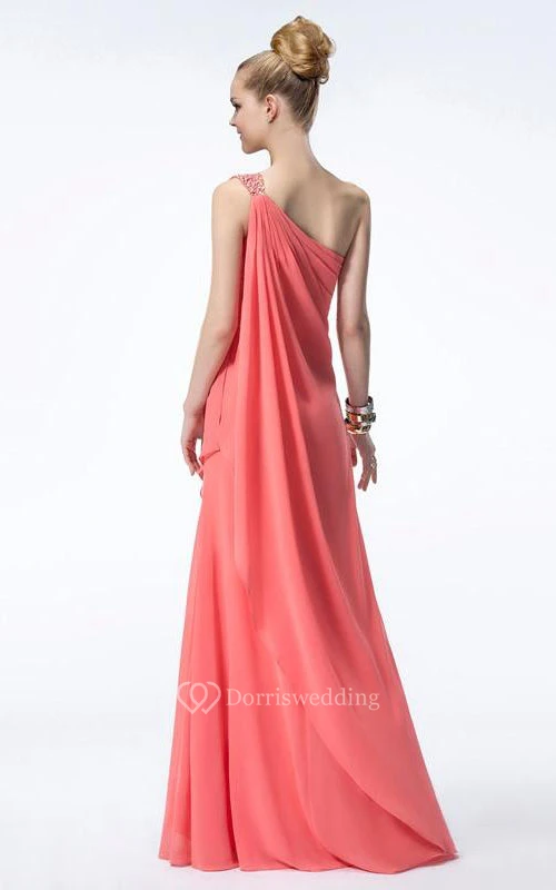 Pretty One Shoulder Beading Chiffon Floor Length Prom Dress