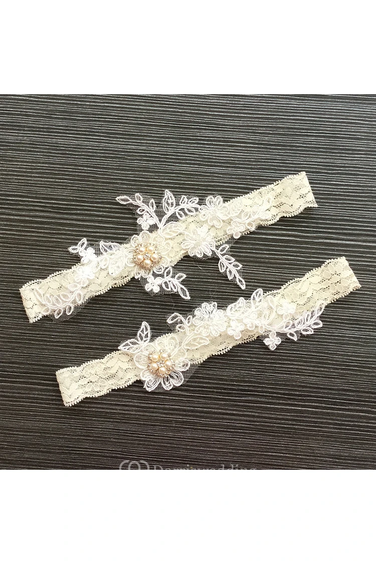 Princess Beige Pearl Lace Applique Stretch Socks Cover Within 16-23inch