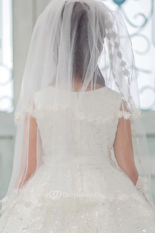 Princess Crown Flower Applique Tulle Flower Girl Veil Accessories