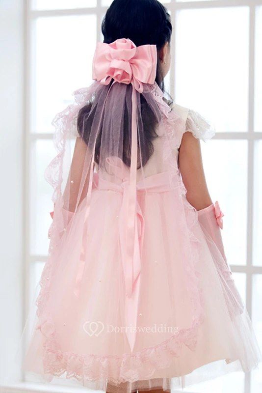 Princess Ruffled Lace Tier Tulle Flower Girl Veil with Bow