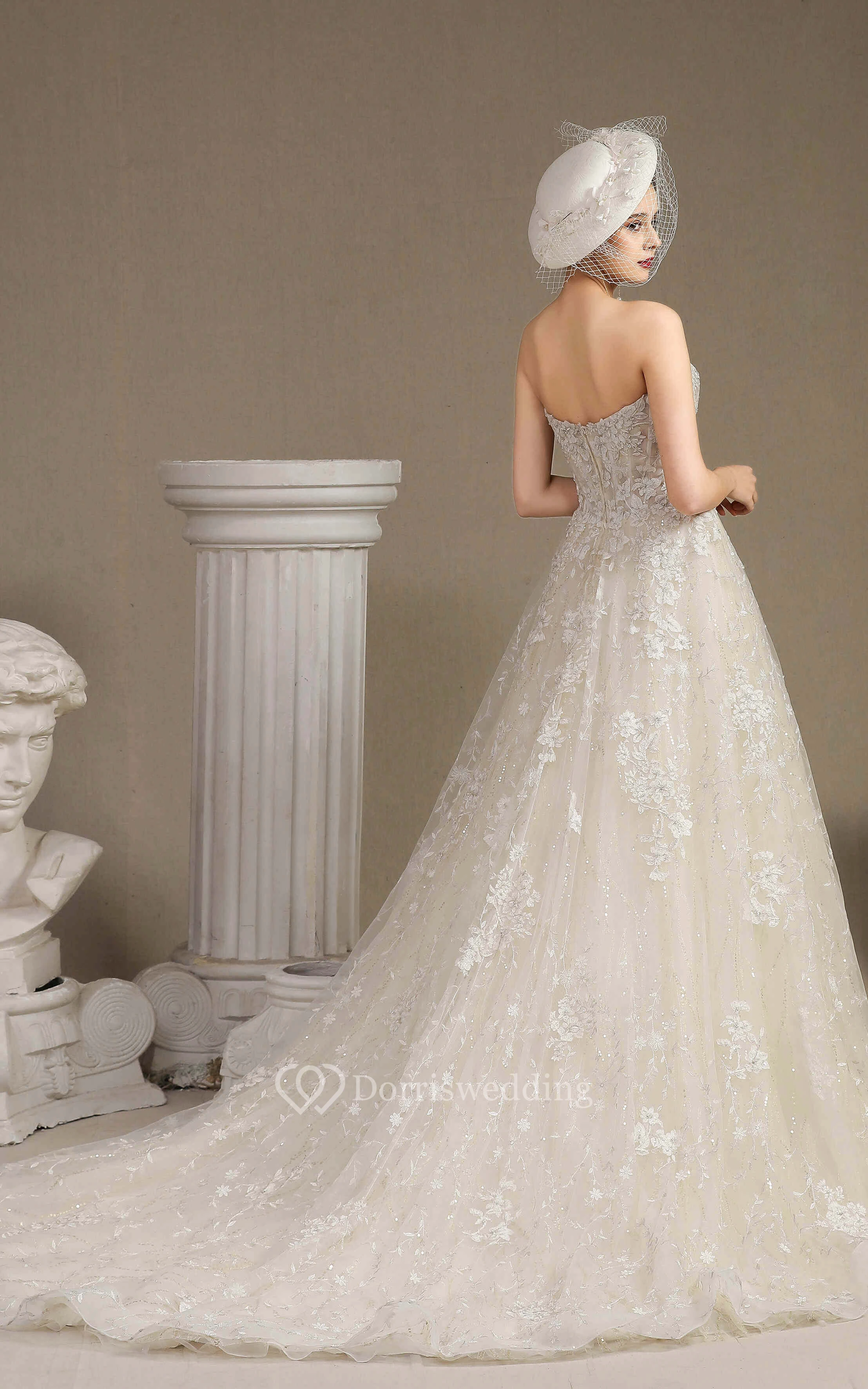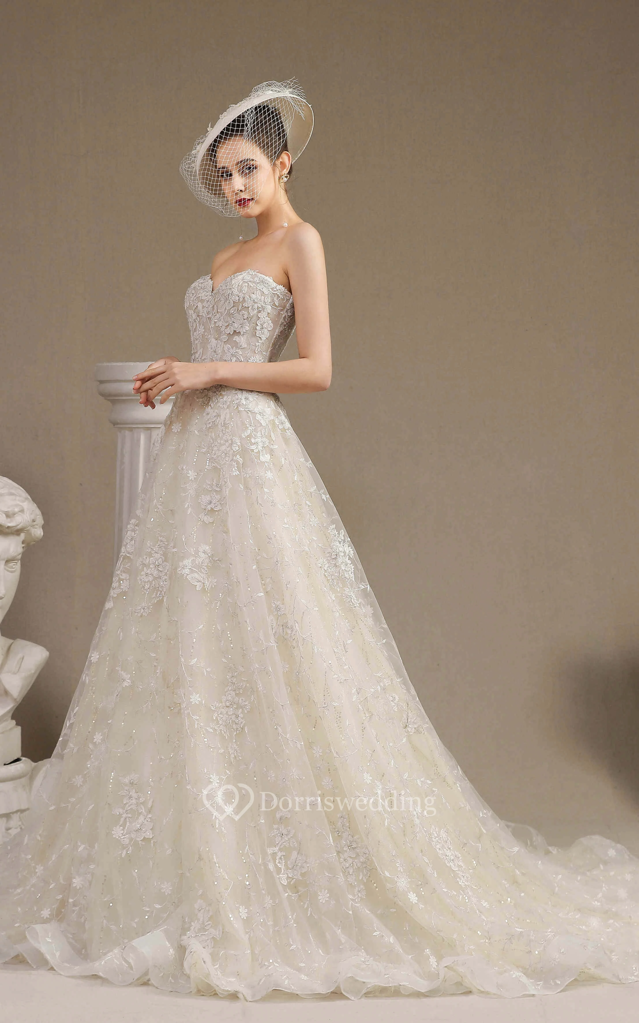 Princess Sweetheart Sleeveless Ballgown Lace A Line Wedding Dress With Boning And Floral Appliques