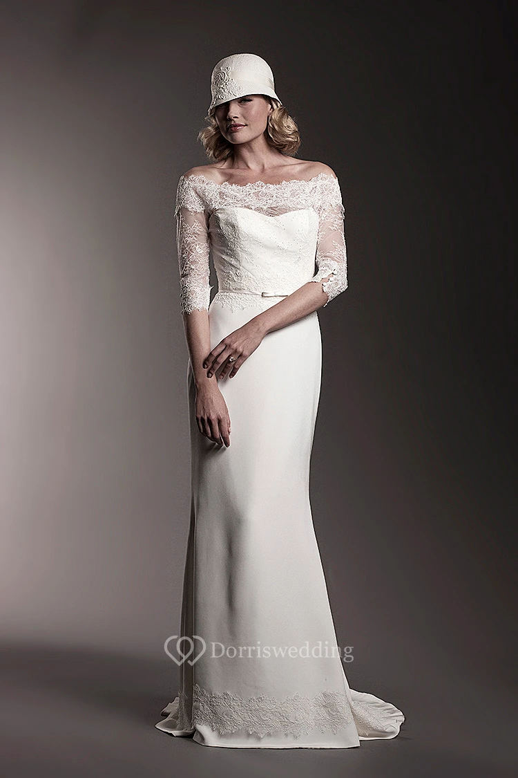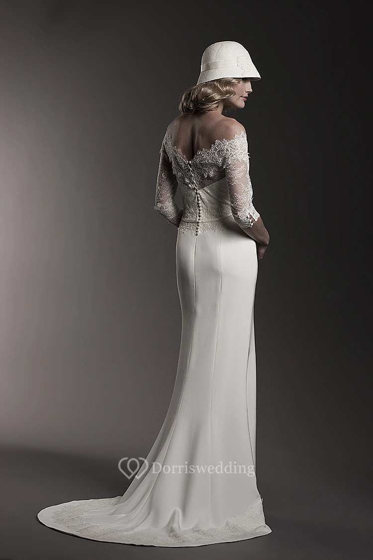 This style has a ribbon loop on the train, which can be wore on your arm. The train would be lifted up and give you an elegant look.