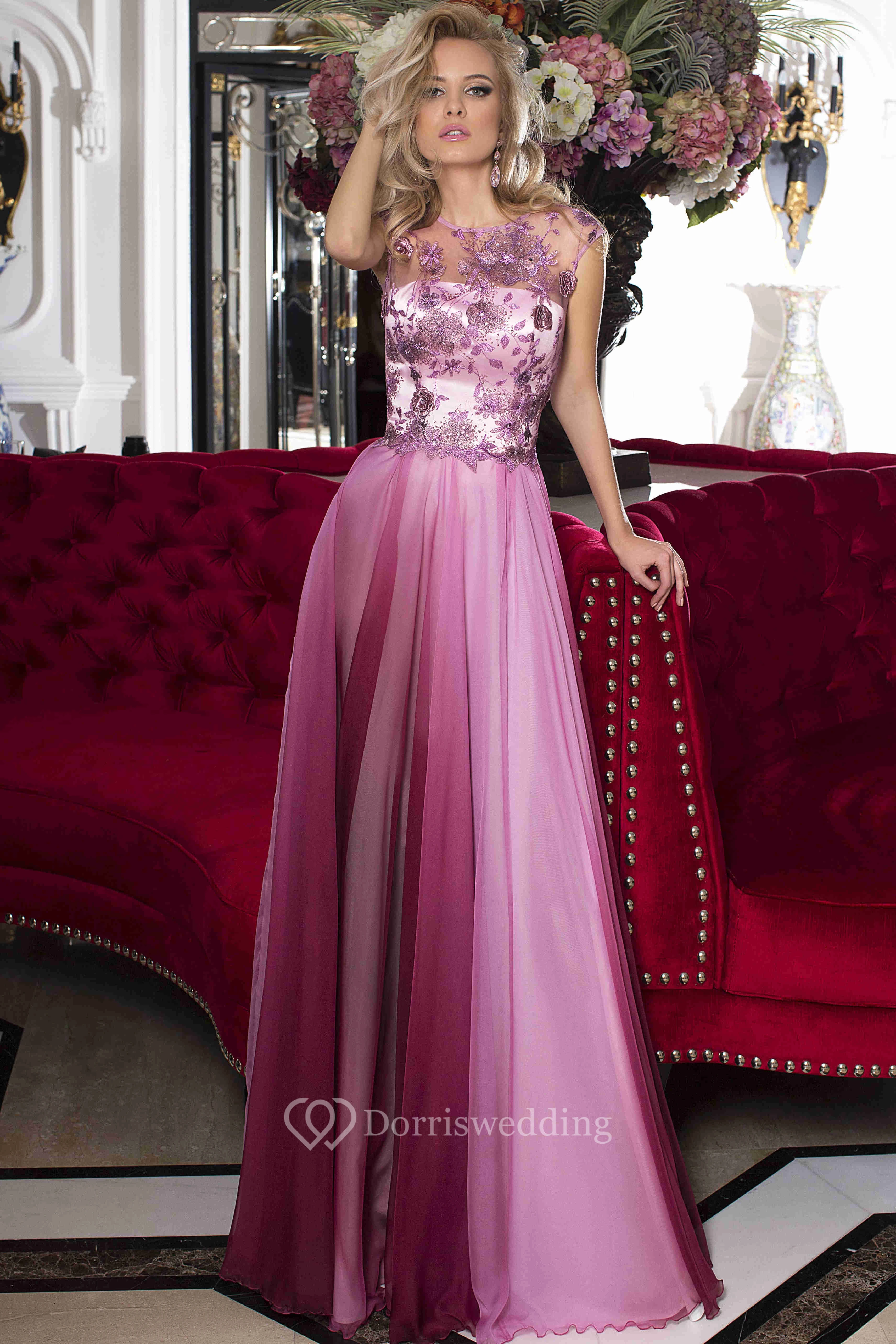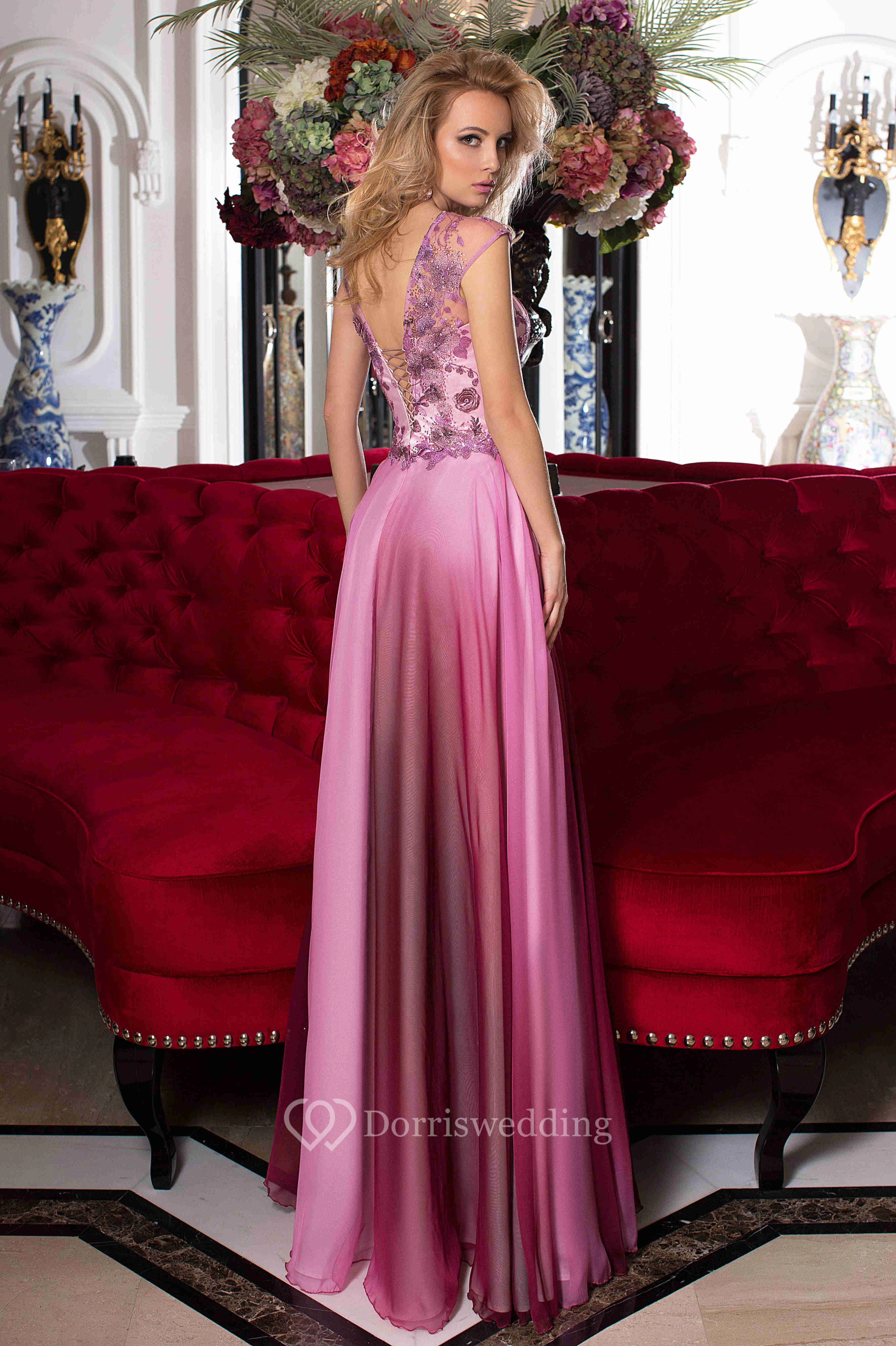 A-Line Floor-Length Scoop Sleeveless Embroidery Pleats Lace-Up Corset Back Dress