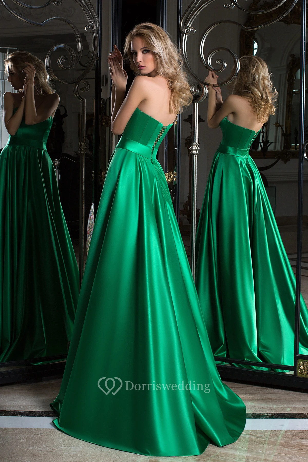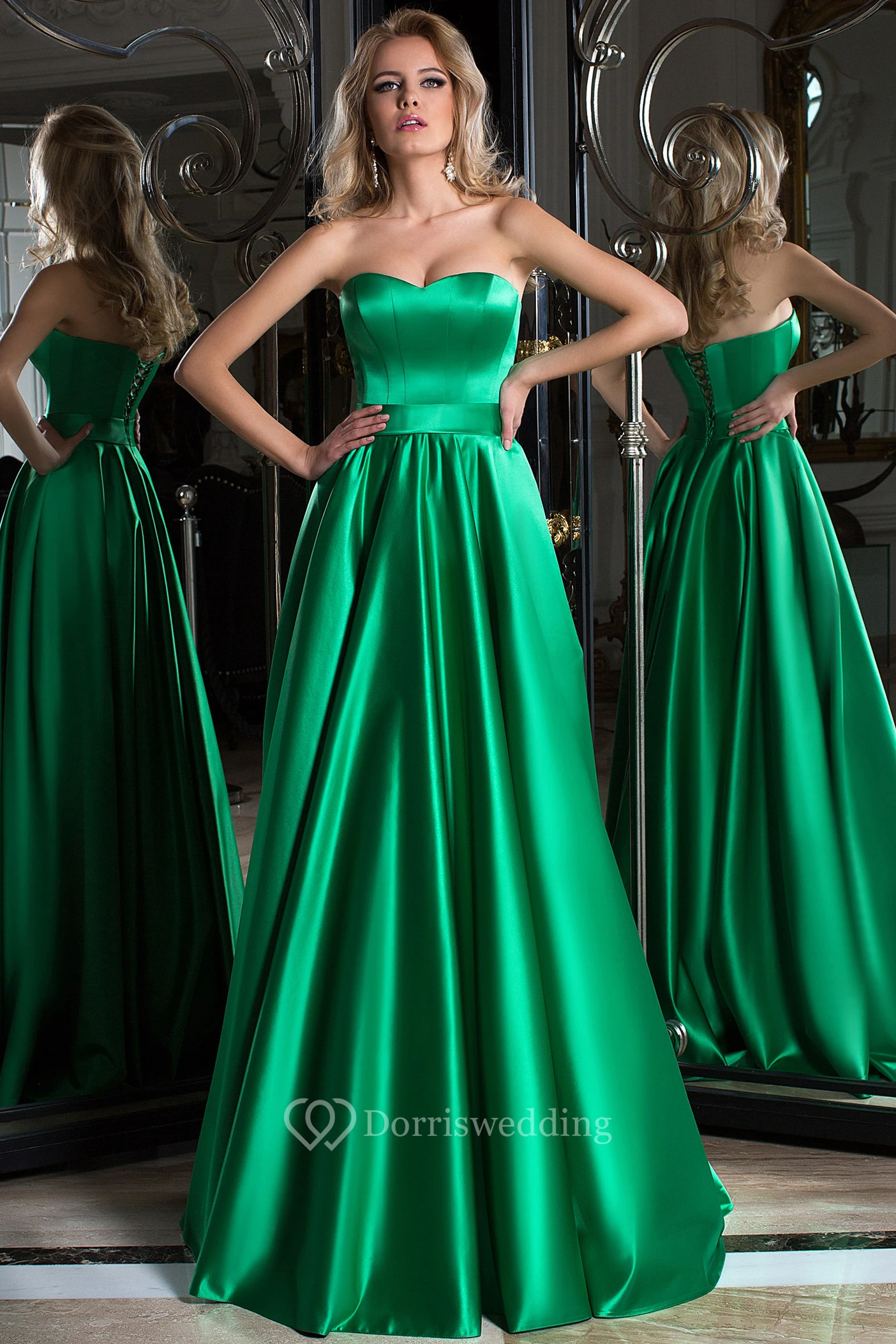 A-Line Floor-Length Sweetheart Sleeveless Satin Lace-Up Corset Back Dress