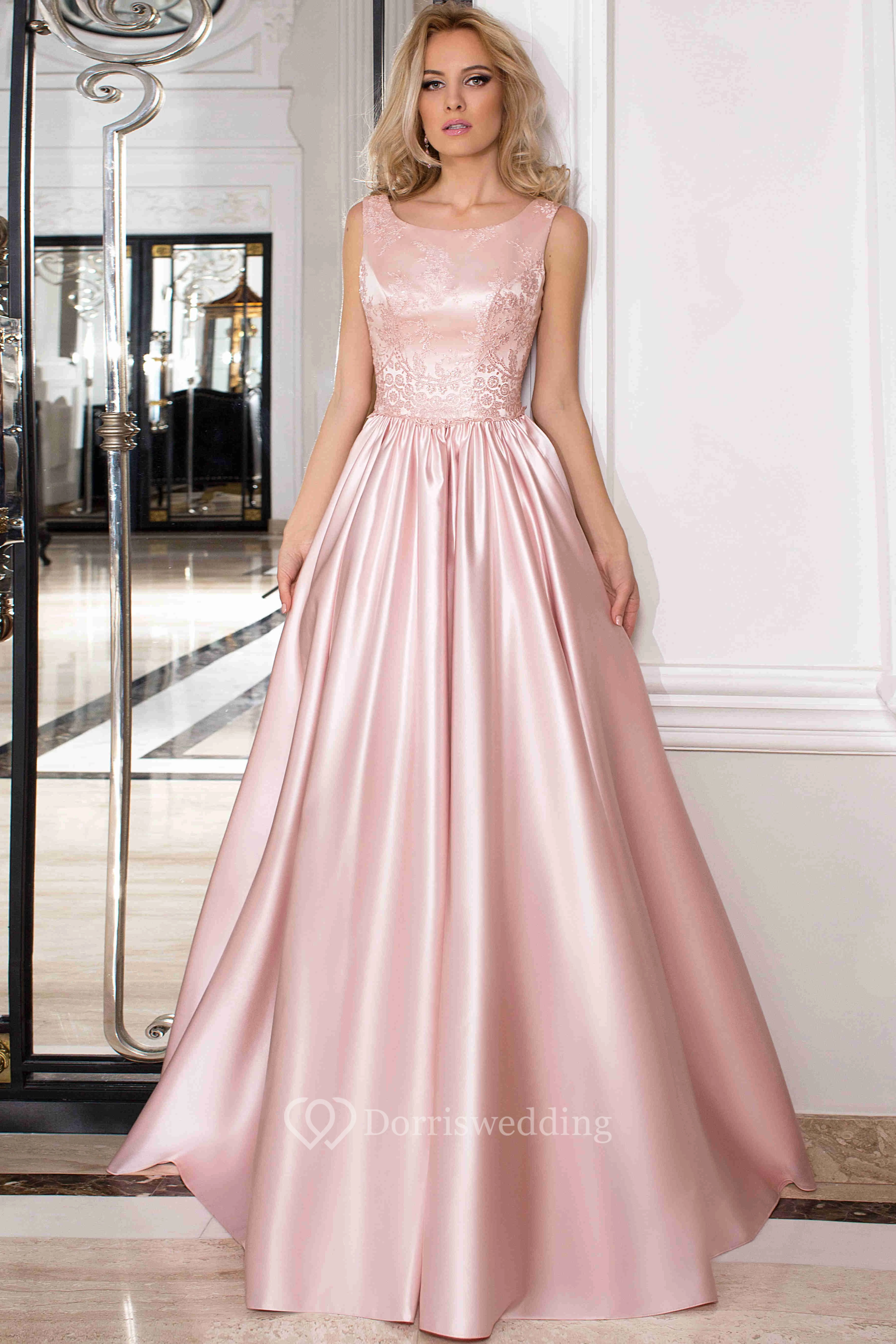 A-Line Floor-Length Bateau Sleeveless Satin Embroidery Low-V Back Dress