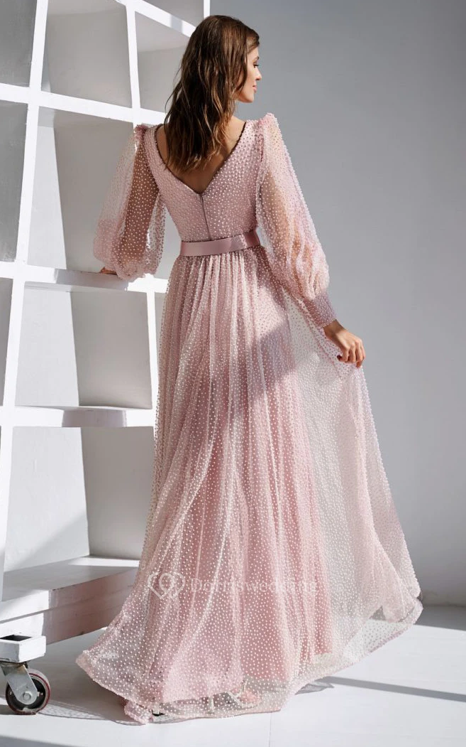 • Hemline/Train: Floor-length