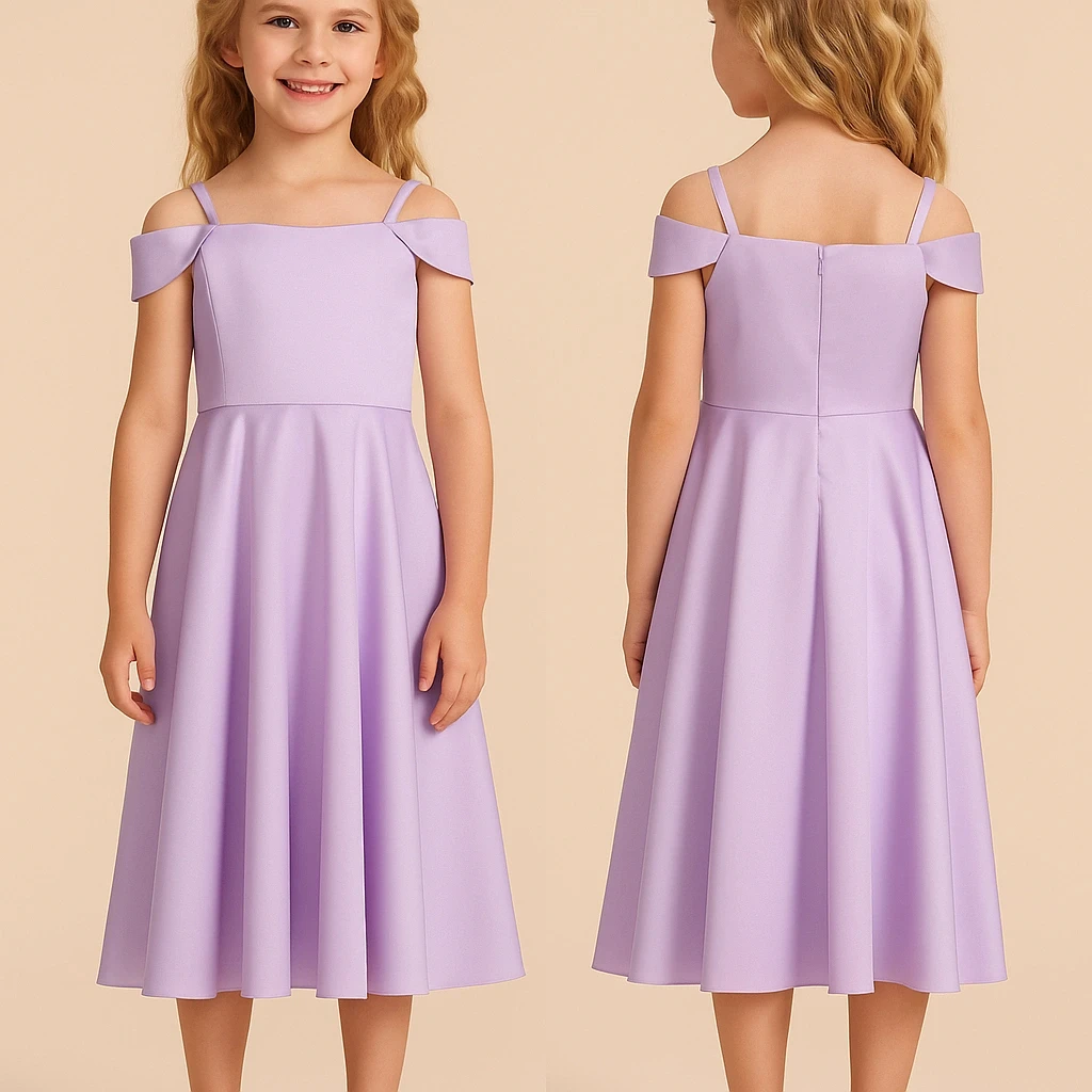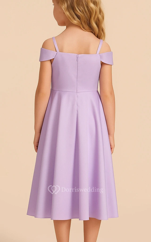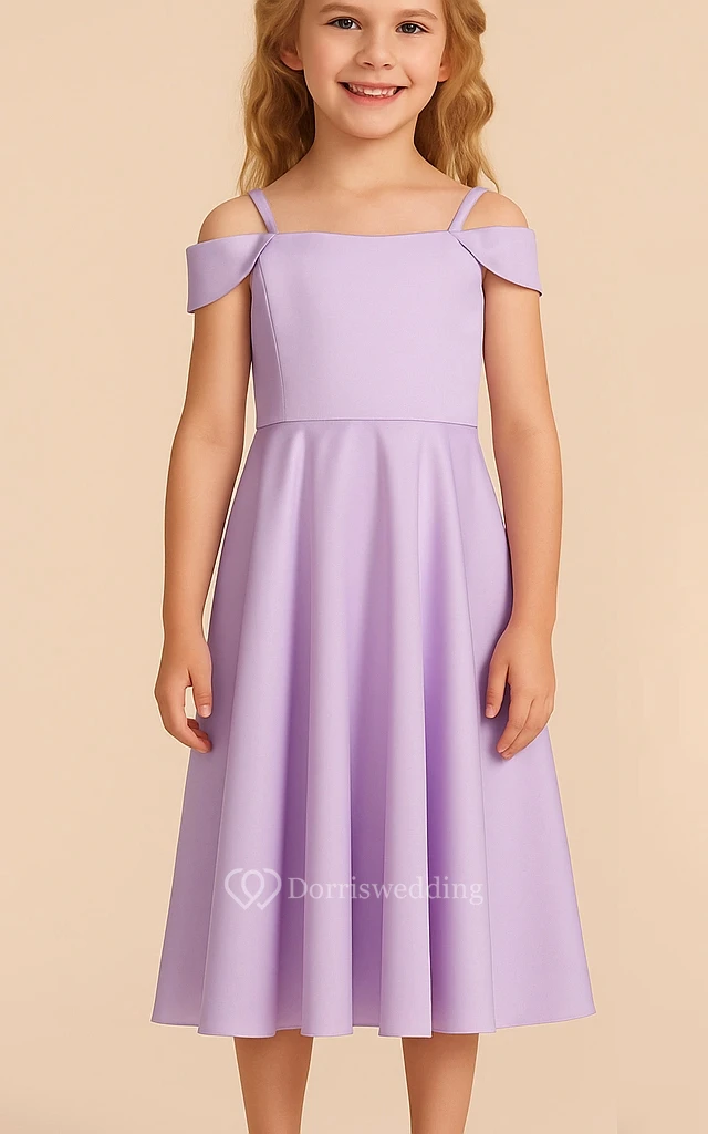 Purple Spaghetti A-line Tea-length Flowergirl Dress