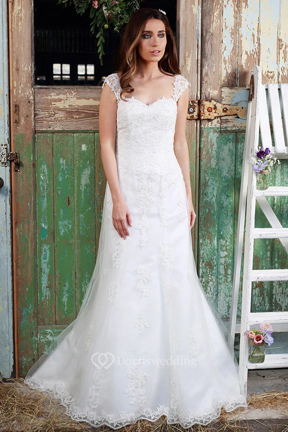Queen-Anne Maxi Appliqued Lace Wedding Dress