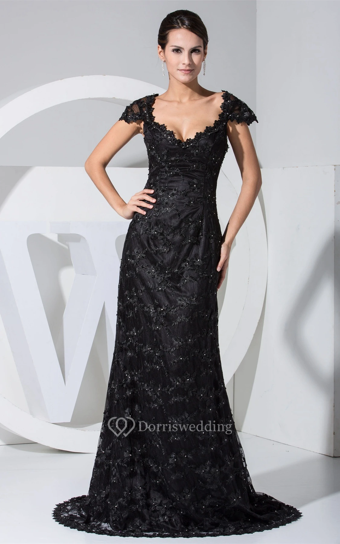 Queen-Anne Sheath Plunged Sweep Train and Dress With Appliques