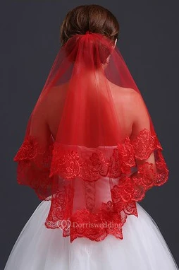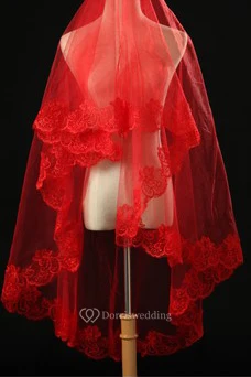 Red Lace Applique Veil