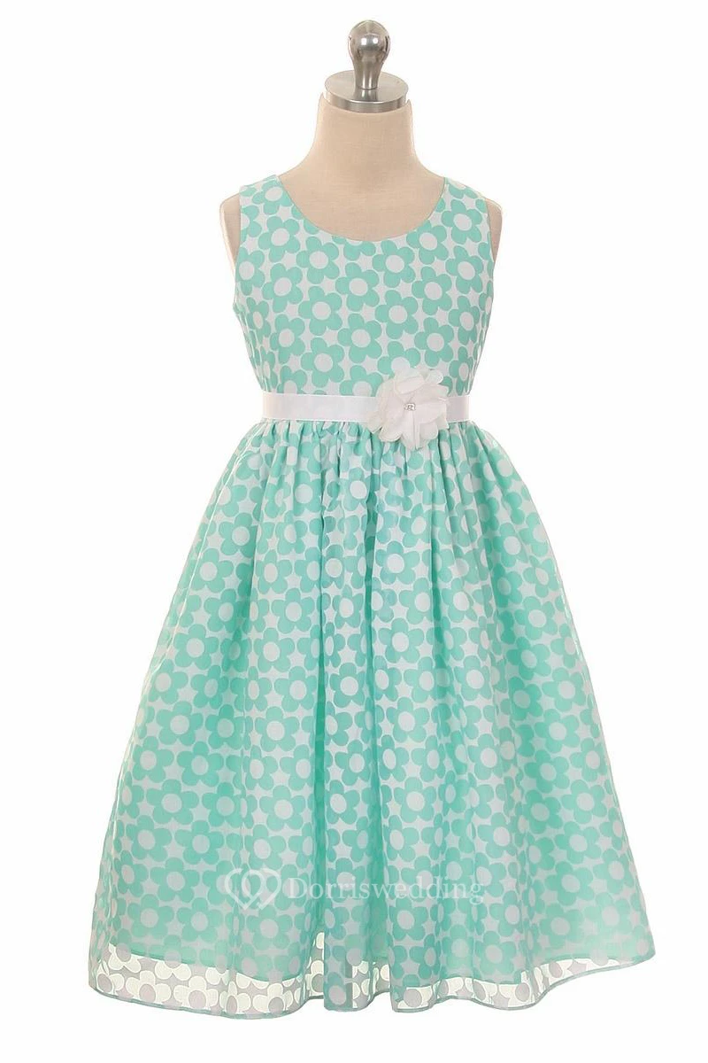 Straps Tea-Length Tiered Organza Flower Girl Dress