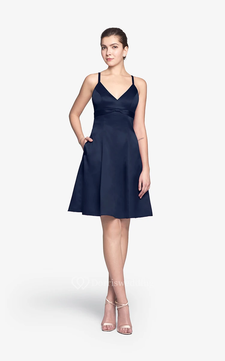 Refined Spaghetti Strap Mini A-line Dress With V-neck