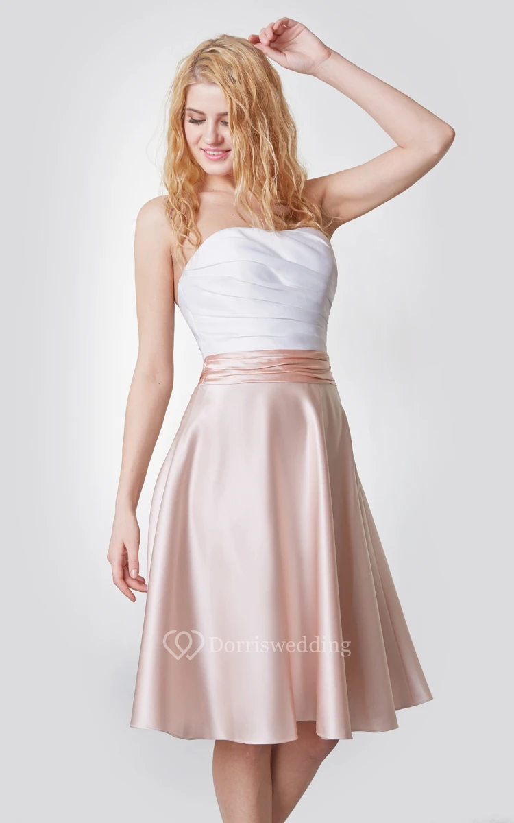 Refined Strapless A-line Shirt Satin Dress With Ruching