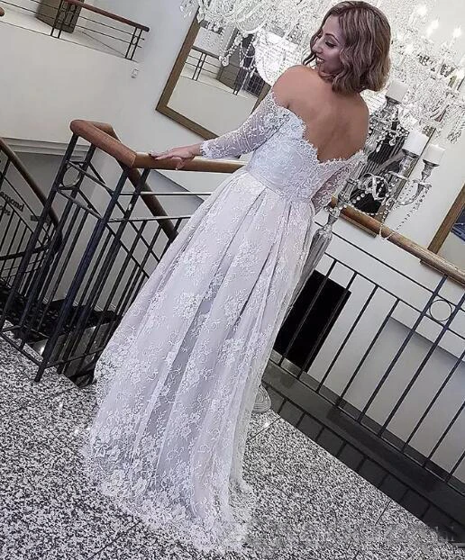 Retro Lace High Low Off The Shoulder Long Sleeves Summer Beach Bohemian Bridal Gown