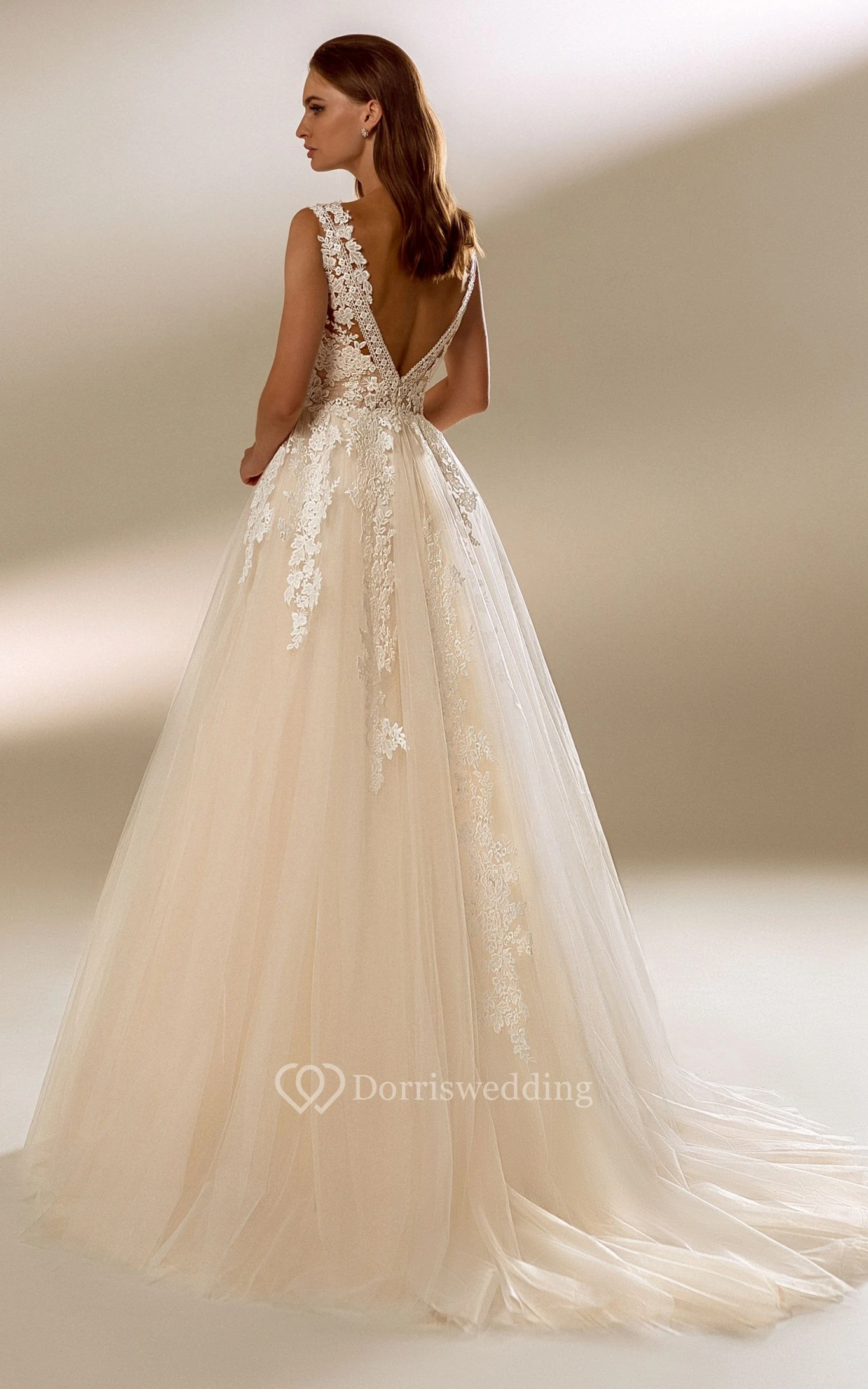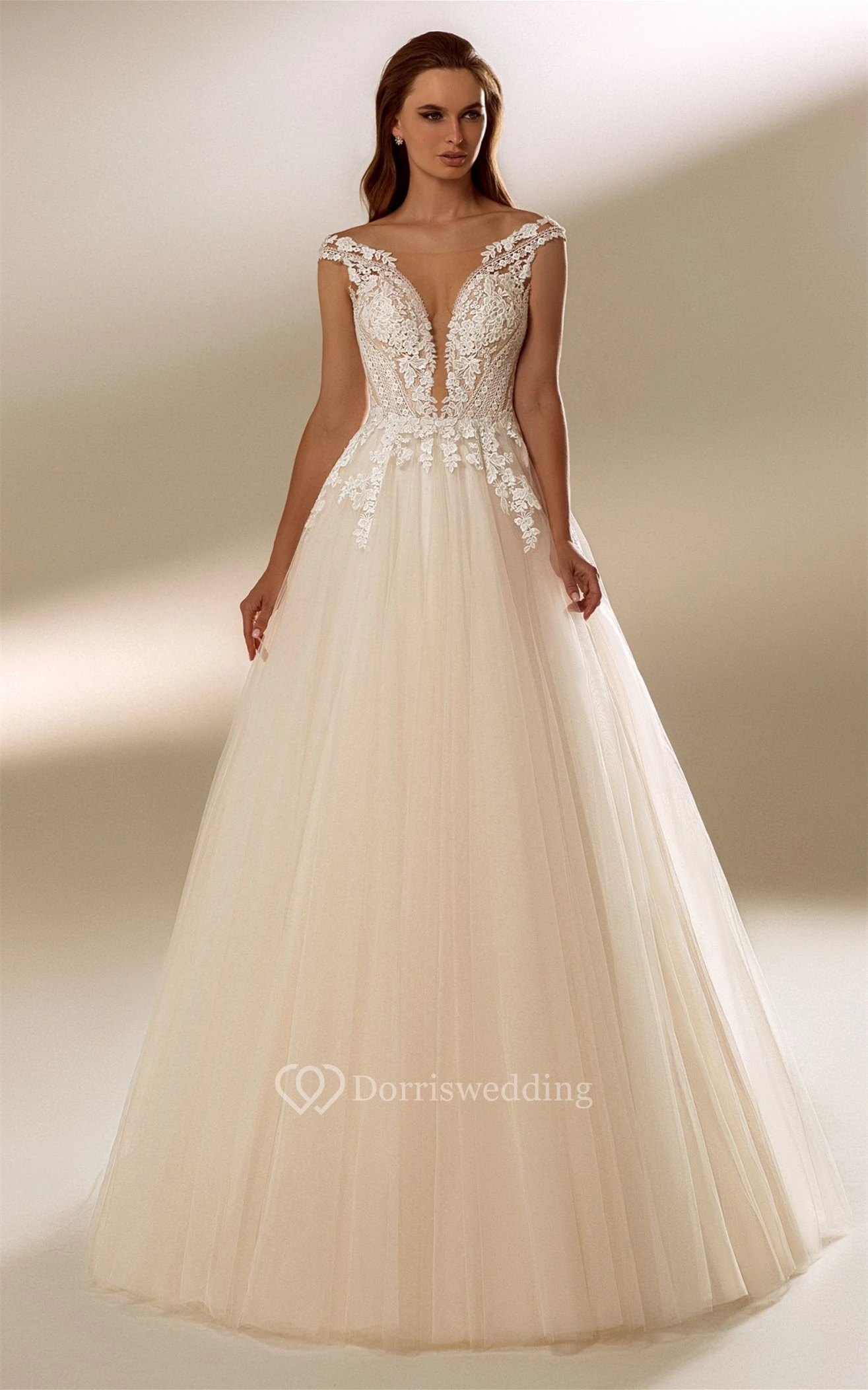 Romantic Ball Gown Lace and Tulle Bridal Gown with Appliques