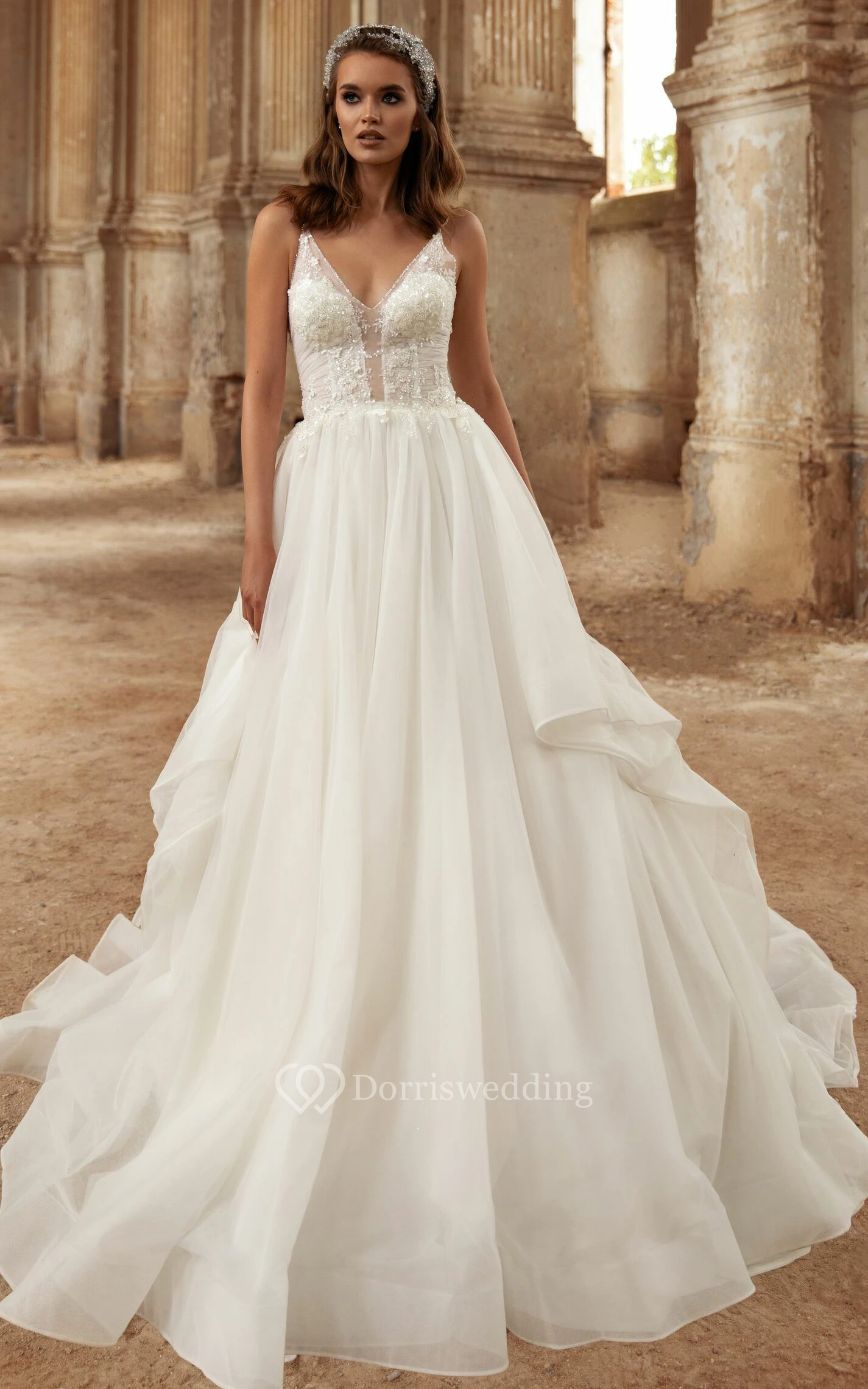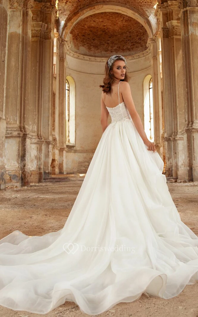 • Hemline/Train: Floor-length, Court Train