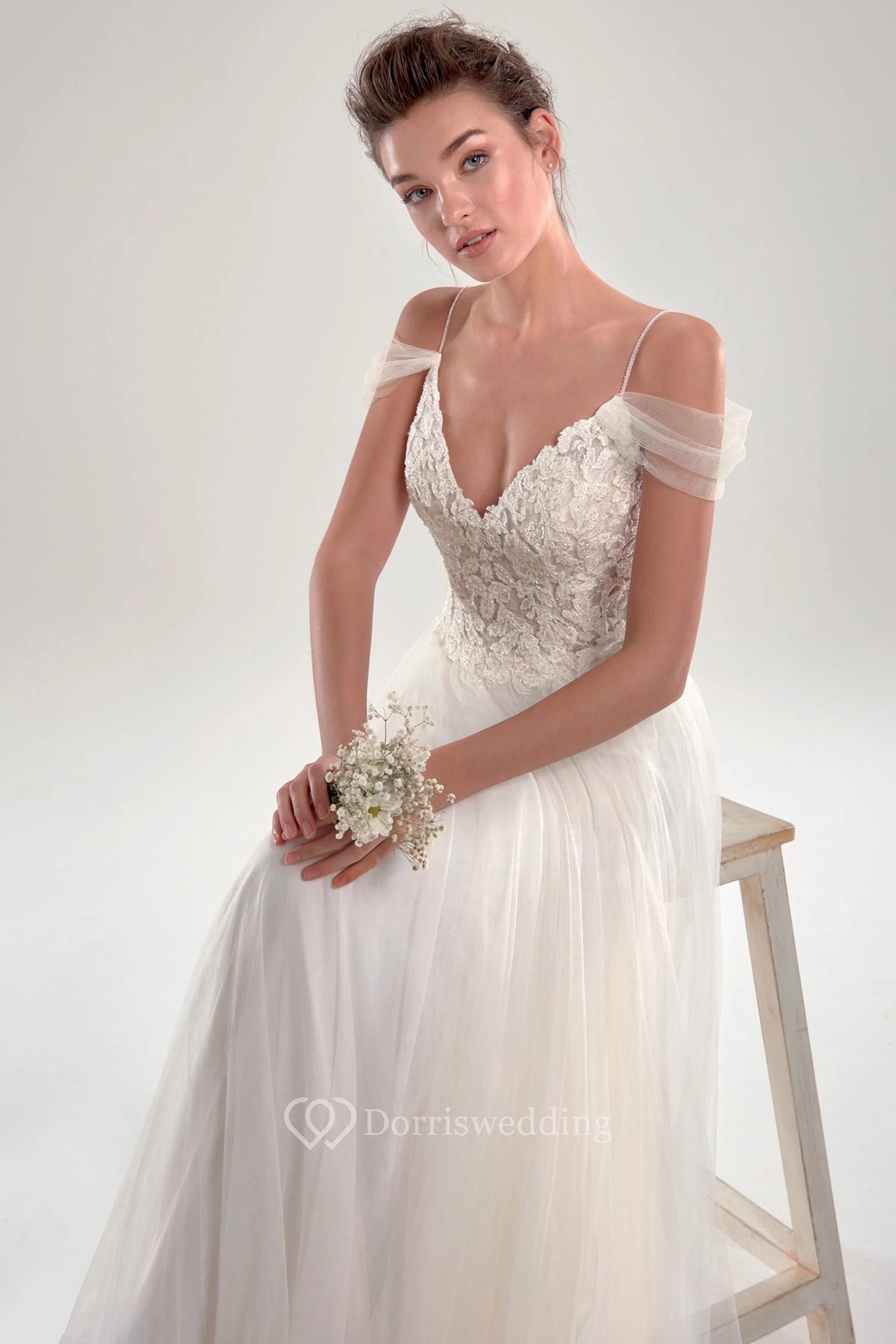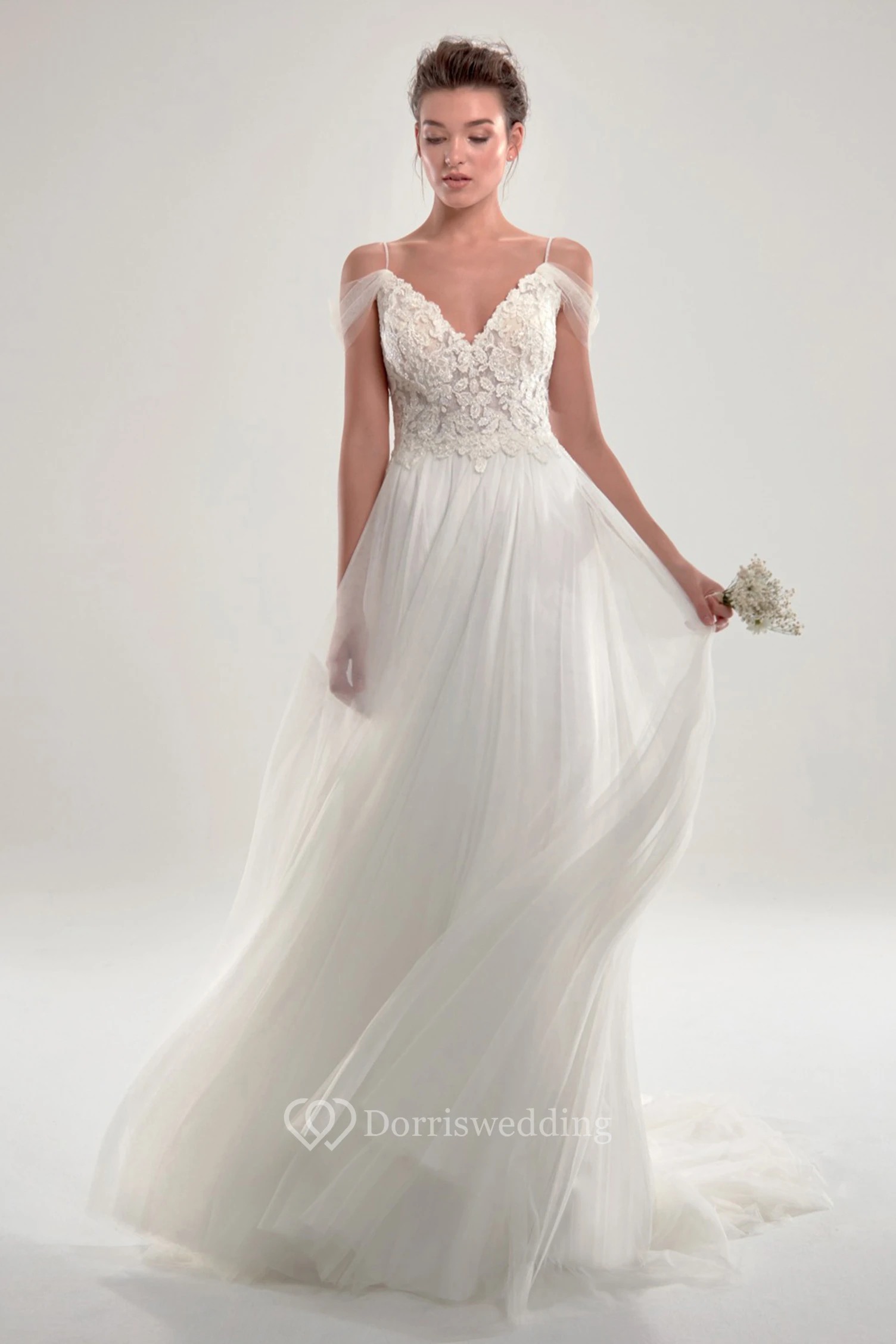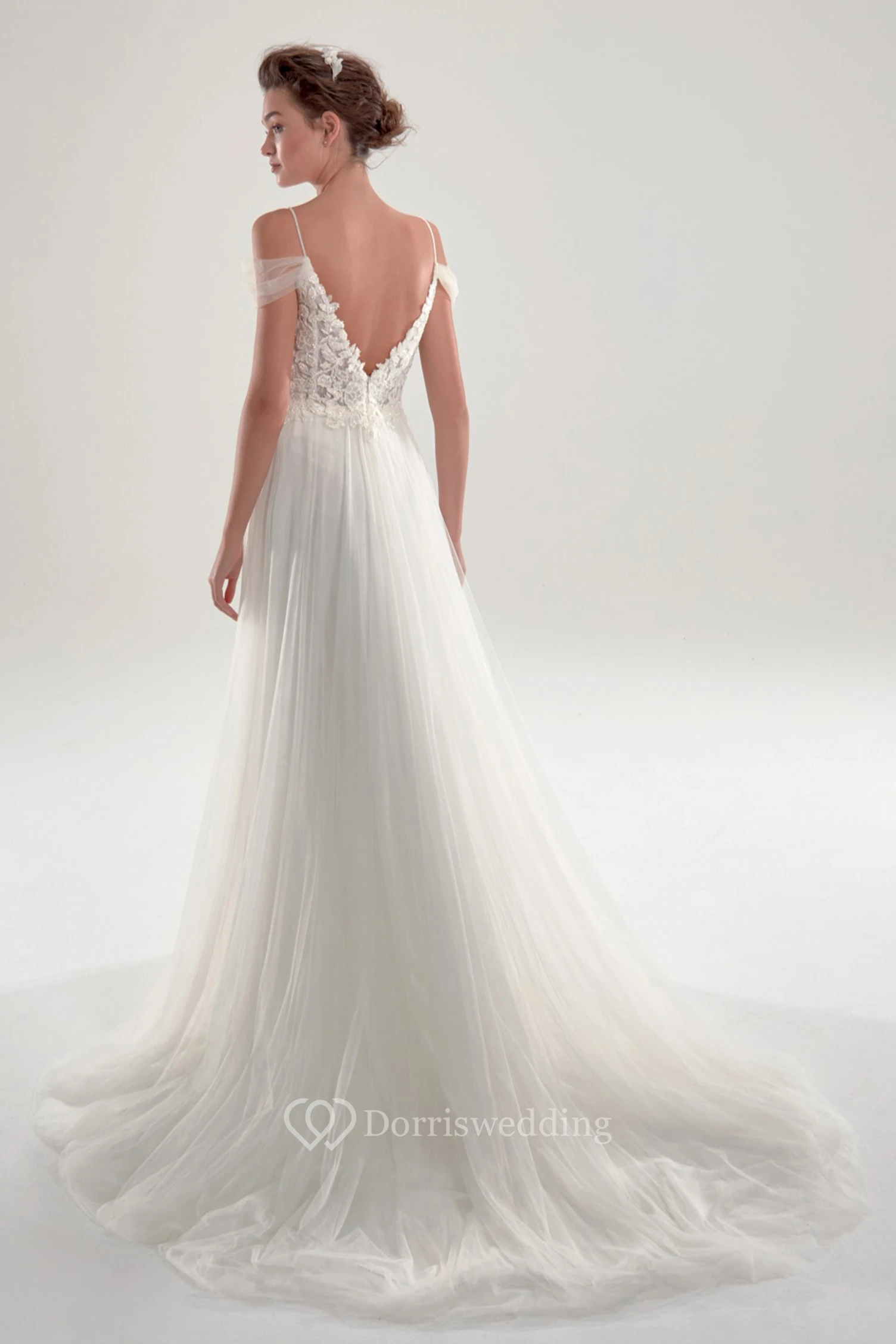 Romantic Lace And Tulle Deep V Back Wedding Dress