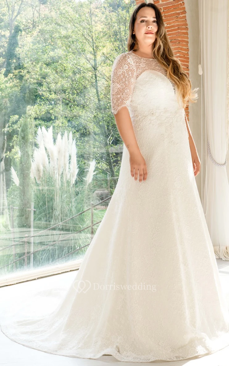 Romantic Lace Bateau Long Sleeve Appliques Wedding Dress With Button