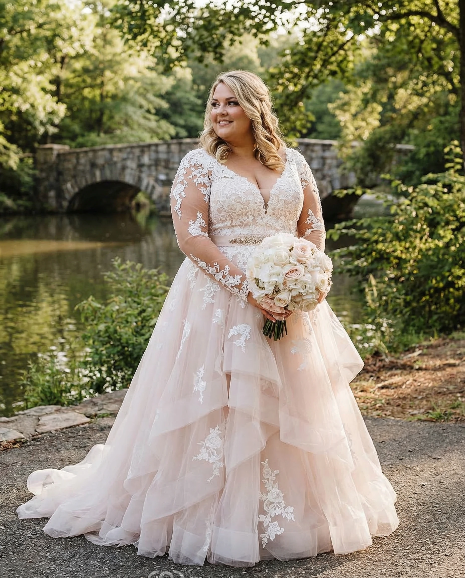 Romantic Long Sleeve Lace A-Line Wedding Gown