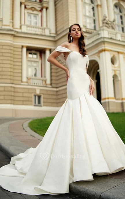 Romantic Mermaid Satin Bridal Gown with Ruching