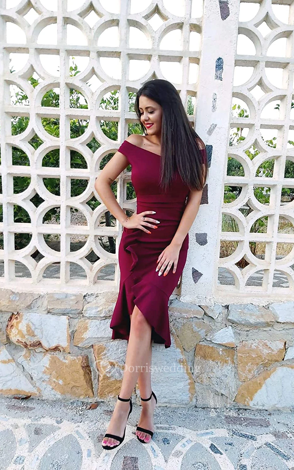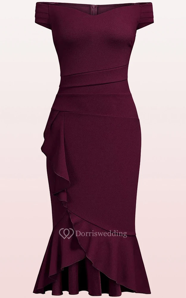 Romantic Satin Off-the-shoulder Sleeveless Bodycon Formal Dress With Ruffles