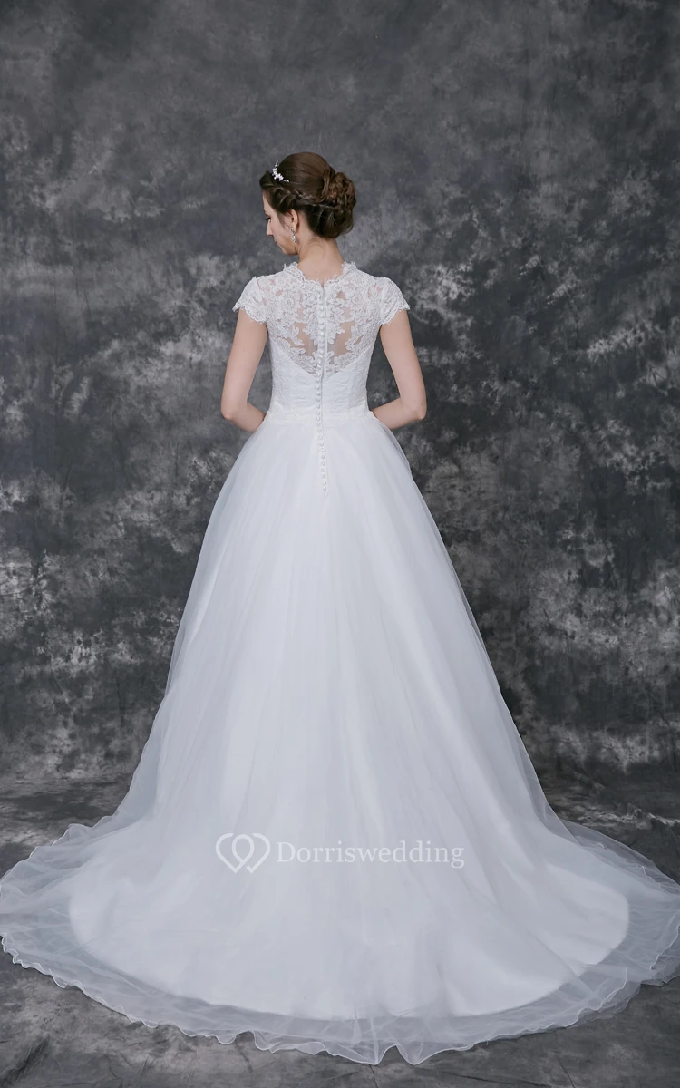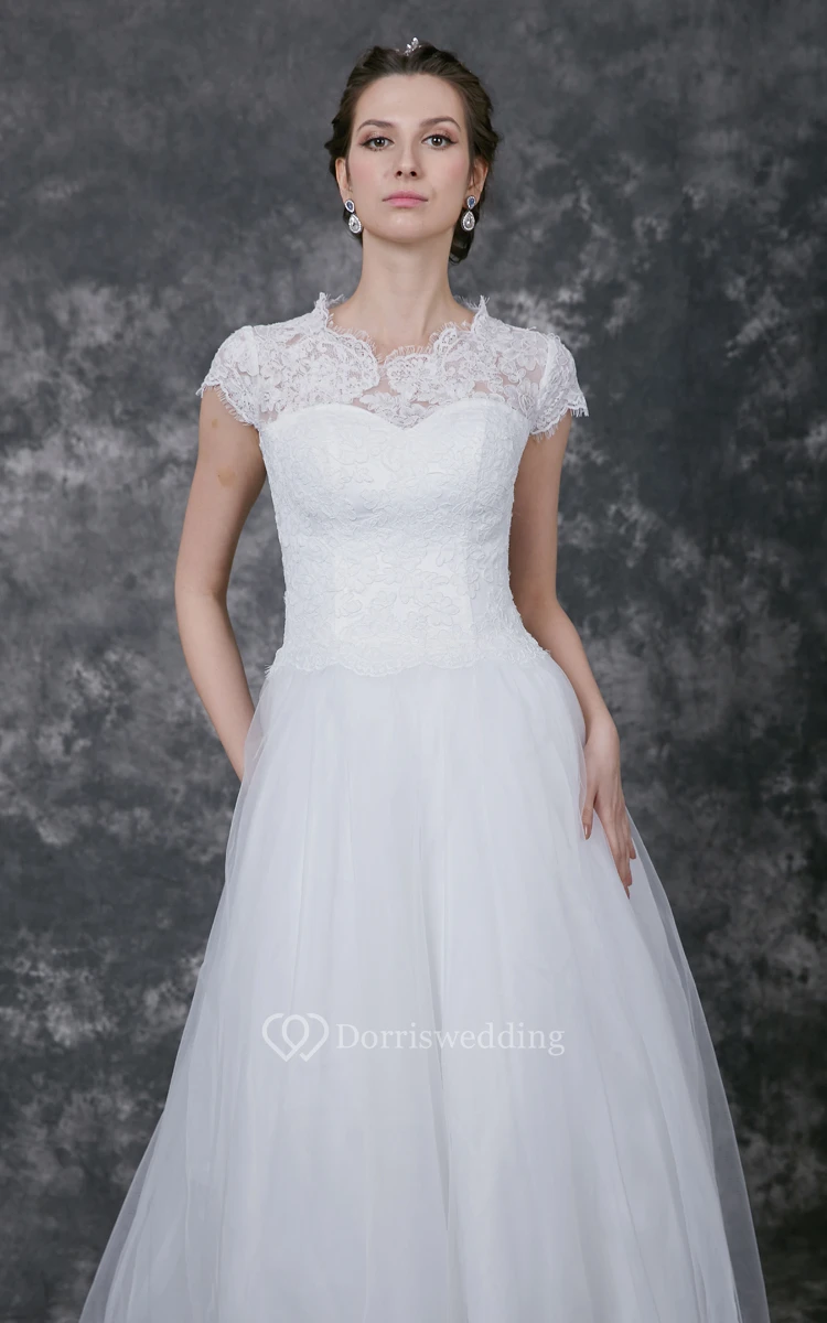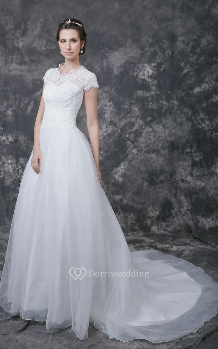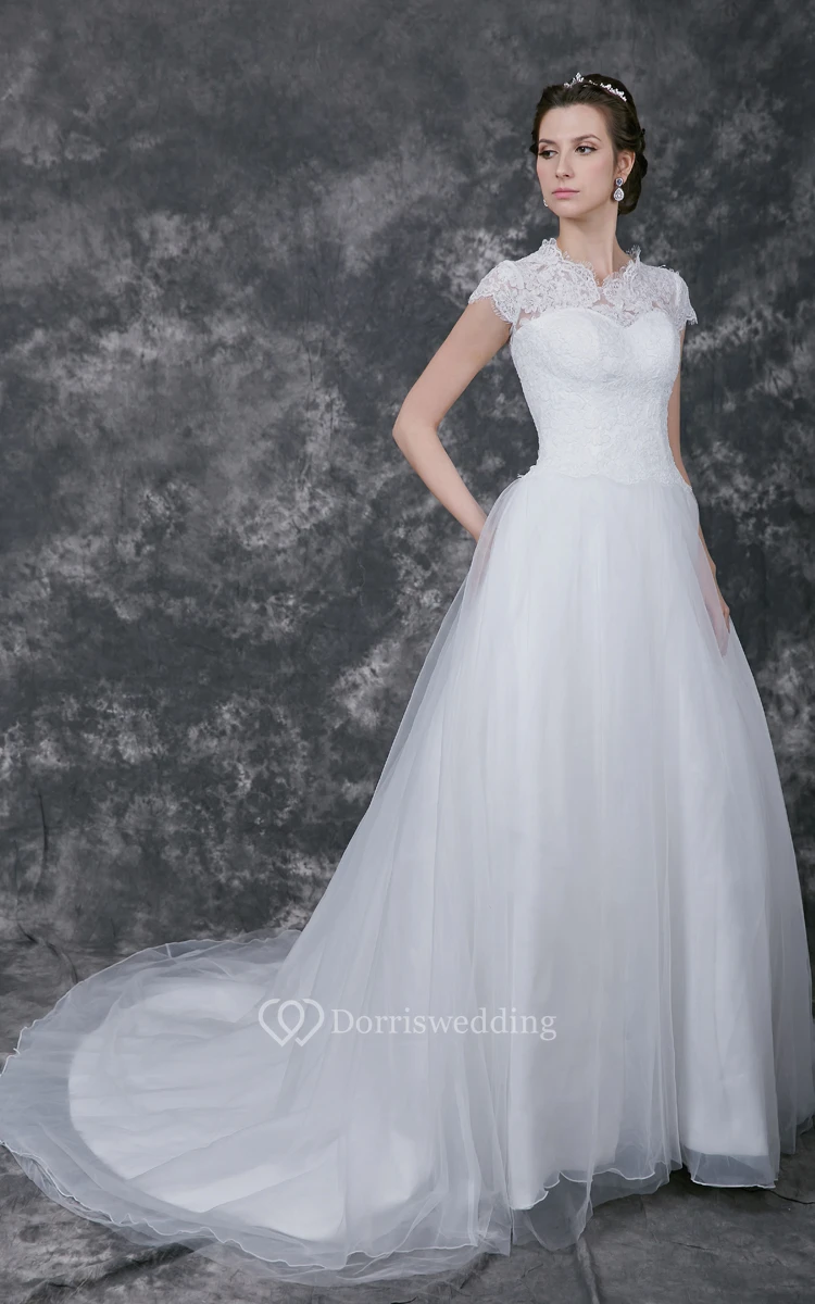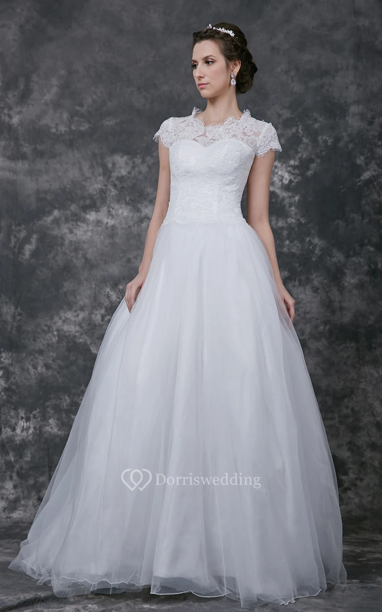 Romantic Scoop Neckline Lace Applique Wedding Ball Gown